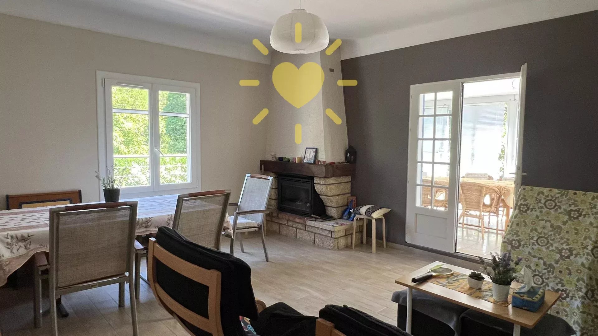 Sur un terrain de 940 m2 plat, villa restaurée comprenant : Entrée, séjour avec cheminée, donnant sur véranda, cuisine équipée, 2 chambres, salle d'eau, WC indépendant. Garage pour moto, remise et cave. Tout à l'égout. Toiture refaite en 2009, isolation toiture refaite en 2023. Très jolie vue sur la campagne autour. Environ 2 km du village.