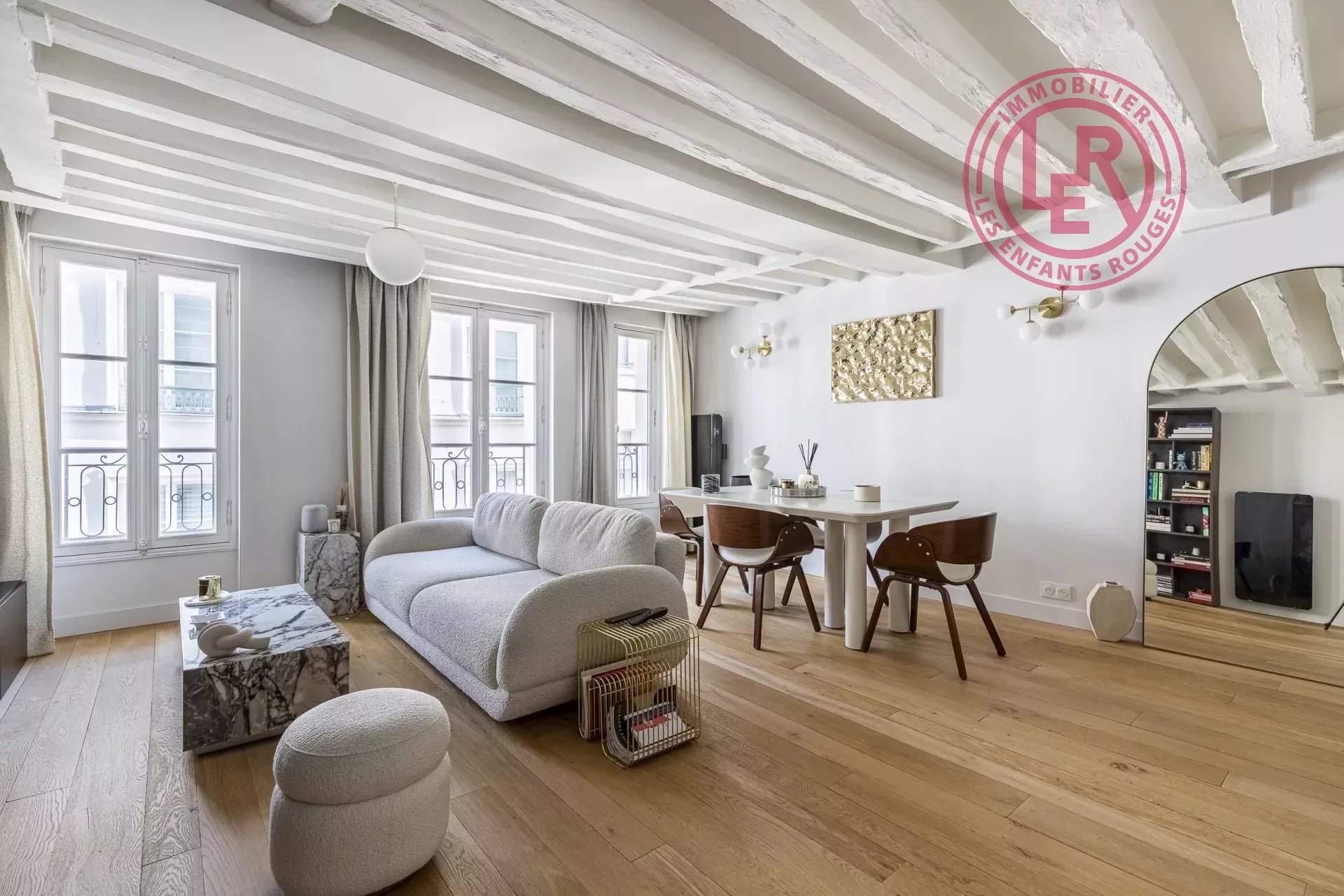 Au 4ème étage d'un bel immeuble ancien situé rue Charlot, à deux pas de la rue de Bretagne, du Marché des Enfants Rouges et de nombreux commerces, un très bel appartement ayant bénéficié d'une exceptionnelle rénovation haut de gamme récemment. Il se compose d'une entrée desservant une pièce de vie avec 3 fenêtres sur rue, en exposition Est, une cuisine ouverte équipée, une chambre sur cour avec espace de rangements et une salle de douche avec wc. Les informations sur les risques auxquels ce bien est exposé sont disponibles sur le site Géorisques : www.georisques.gouv.fr