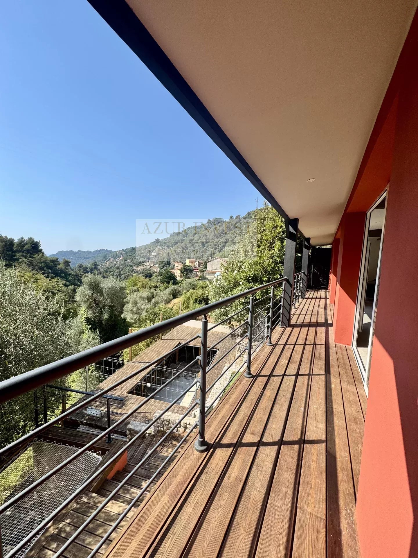 Votre agence Azur Invest vous propose en exclusivité, une villa contemporaine de 185 m² bâtie sur un terrain de 1500 m² au calme absolu entouré de verdure . Composée au rez de chaussée d' une grande pièce à vivre de 60 m² offrant un espace cuisine américaine, salle à manger et salon, donnant sur une large terrasse et balcon, offrant une vue dégagée sur la verdure et un bel aperçu sur la mer , à l'étage 4 chambres dont 2 master et 2 salles de bains et d'un appartement indépendant de 45 m² avec salon et cuisine américaine de 30 m², chambre et salle de bain. L'extérieur offre de belles terrasse avec cuisine d'été avec la possibilité d'aménager une piscine, un local de rangement ,garage et 4 parkings extérieurs privatifs. Villa achevée en 2015 et parfaitement entretenue offrant de belles prestations et tout le confort . L'avis de l'agence : Magnifique propriété dans un coin de paradis à quelques minutes de Menton et des accès autoroute pour rejoindre Monaco ou l'Italie.