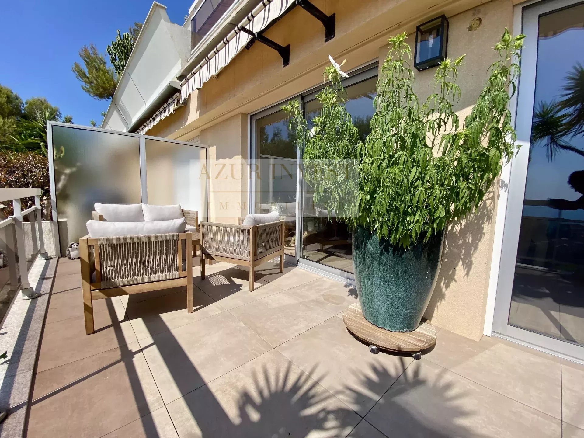 #SOUS COMPROMIS# Dans l’un des quartiers résidentiels les plus prisés du secteur votre agence Azur Invest vous propose en exclusivité un appartement entièrement rénové au sein d'une résidence de standing avec piscine. Il se compose : Vaste séjour lumineux avec cuisine américaine Vue mer depuis toutes les pièces à vivre Grande terrasse de 20 m² exposée plein sud vue mer Chambre avec placards Salle de douche moderne Isolation thermique, Climatisation gainable, double vitrage, volets roulants et stores électriques pour votre confort 🔒 Parking privatif inclus 🚗 Garage fermé en sous-sol disponible en option 📍 Un bien rare, idéal résidence principale, secondaire ou investissement locatif de qualité.