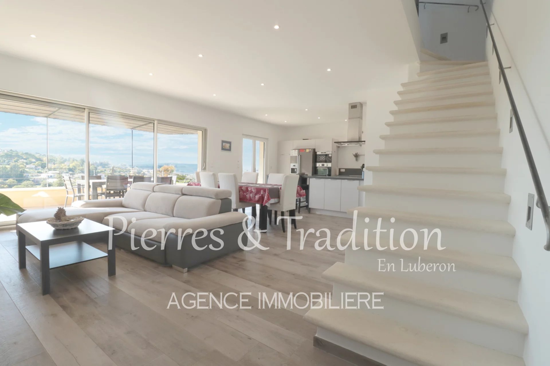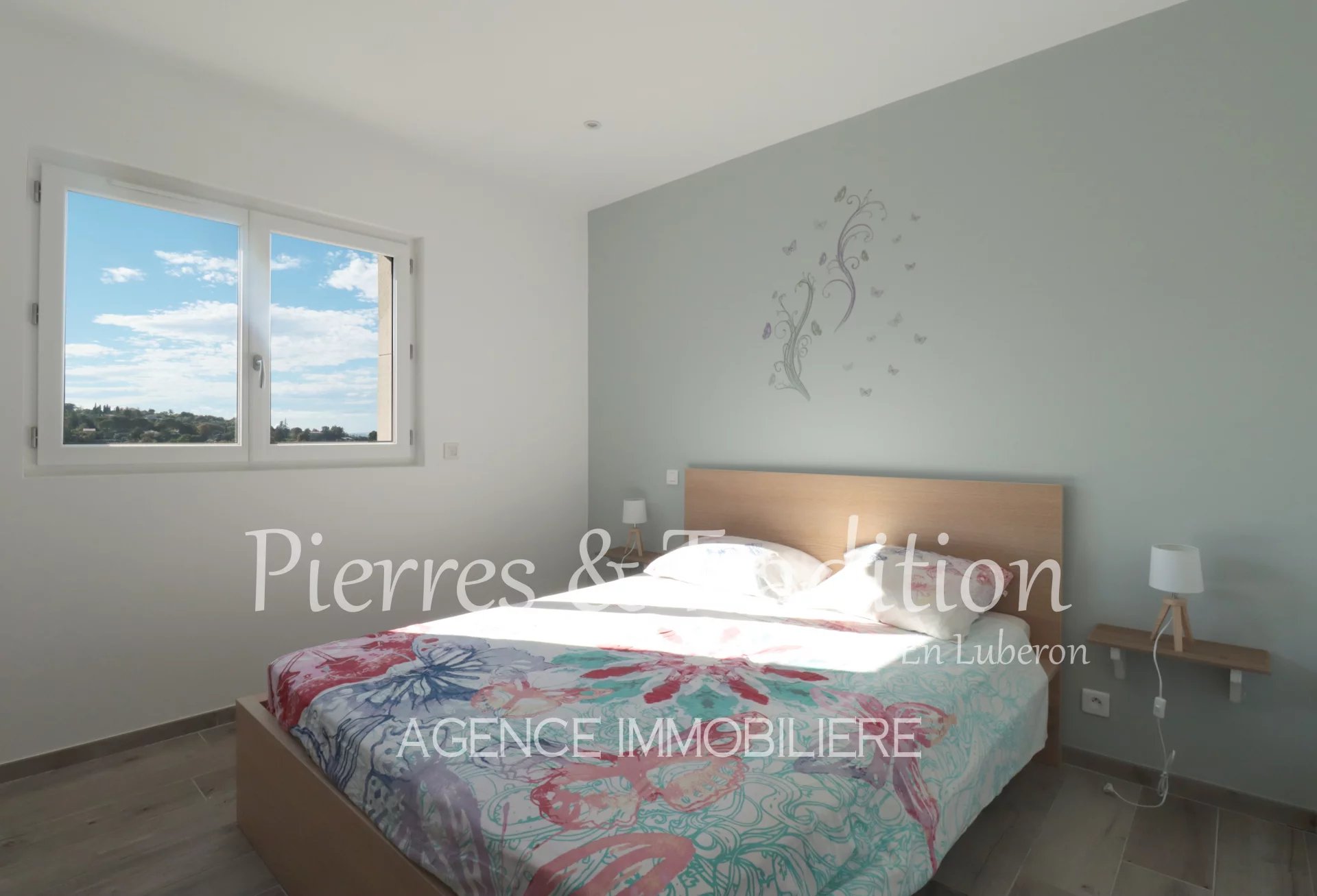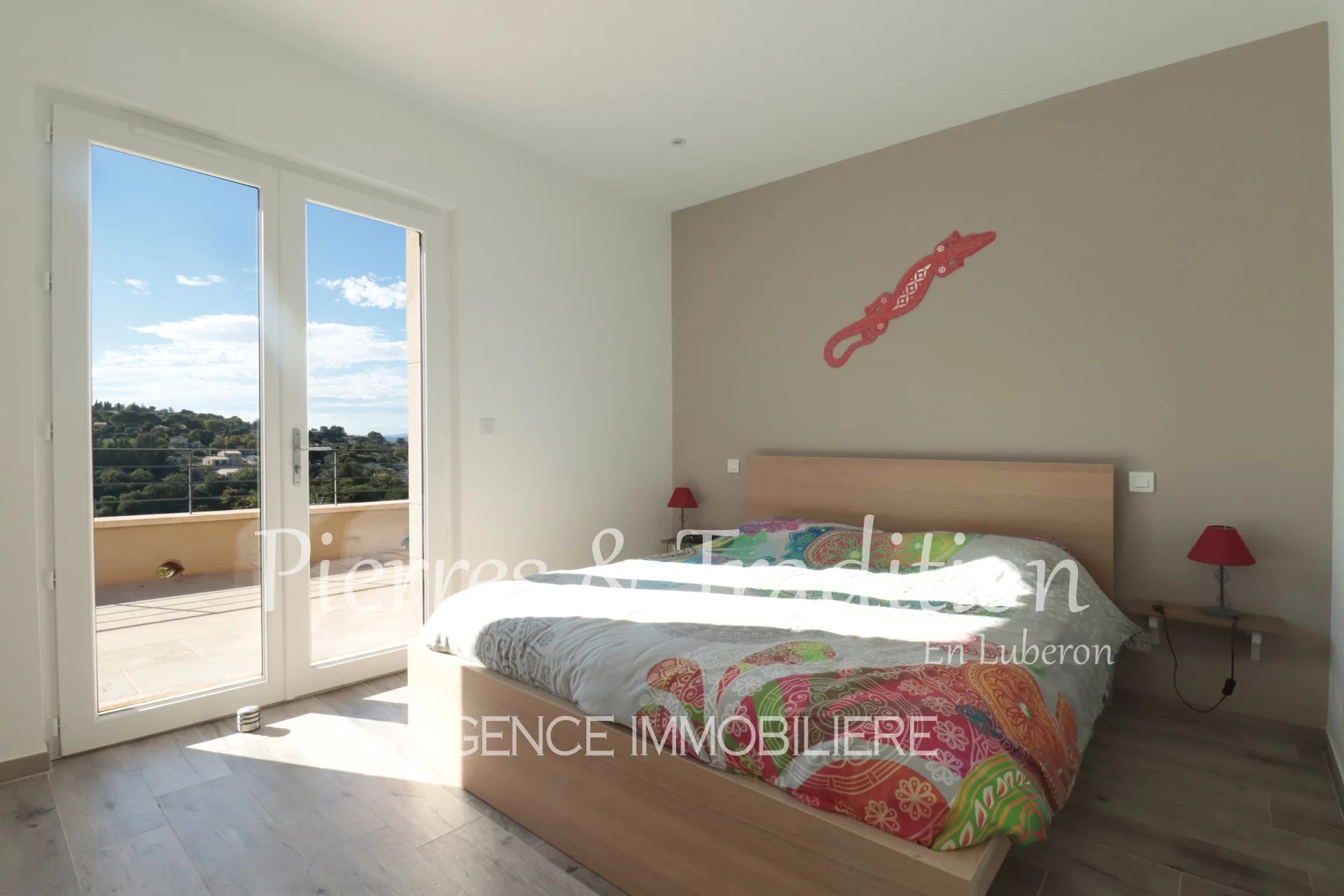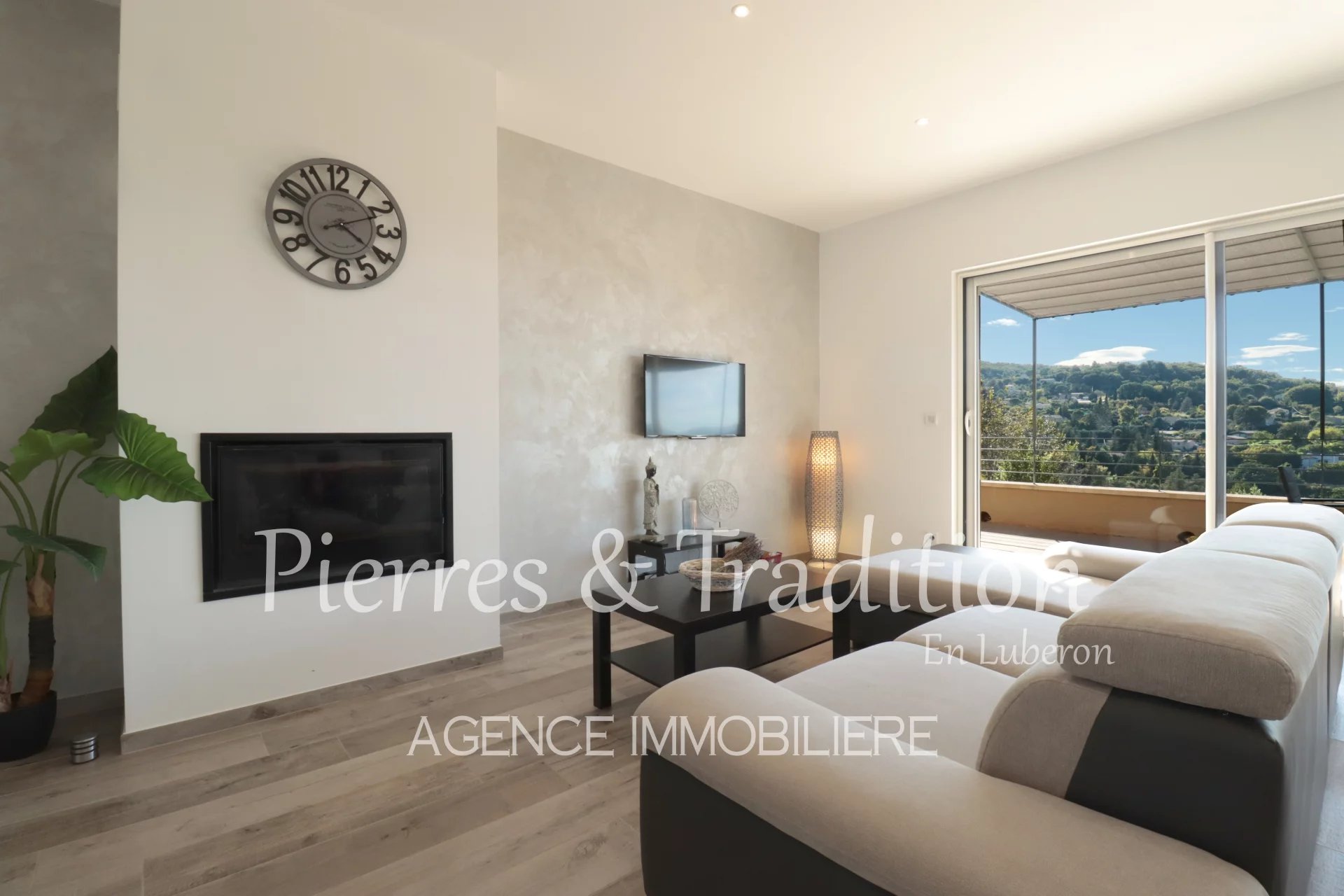 Cette jolie maison se situe à flanc de colline, bénéficiant ainsi d’une très jolie vue. De construction traditionnelle, elle présente le charme du Luberon de part sa typologie de bastide provençale ainsi que ses belles génoises en tuiles anciennes. En rez de chaussée, vous découvrirez un beau séjour avec cheminée et cuisine ouverte donnant sur la grande terrasse avec la vue et sa tonnelle, une chambre principale avec salle d’eau privative et dressing, et à l’étage, trois jolies chambres avec une grande salle de bain. A cela se rajoute un grand cellier et un garage avec porte automatique. En extérieur, l’espace parking pavé nous invite à découvrir les différents espaces avec notamment une belle piscine chauffée avec plage, une terrasse avec vue panoramique, un boulodrome et un jardin de loisir. De très bonne facture, les matériaux sont de qualité et le confort garanti : chauffage réversible au sol par pompe à chaleur, huisseries aluminium, portail automatique, volet roulant immergé pour la piscine, etc. A deux pas de toutes commodités, cette jolie maison présente beaucoup d’atouts !