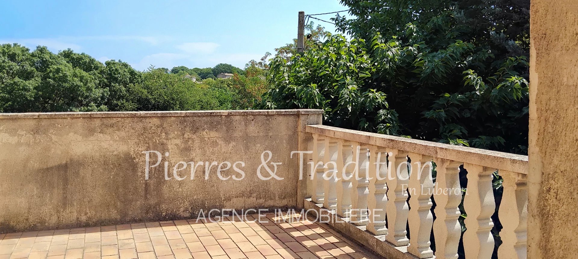 La maison est entourée d’un agréable jardin arboré, notamment de plusieurs oliviers. Une pergola permet également de stationner un véhicule à l’abri. L’accès à la propriété se fait par un portail motorisé.