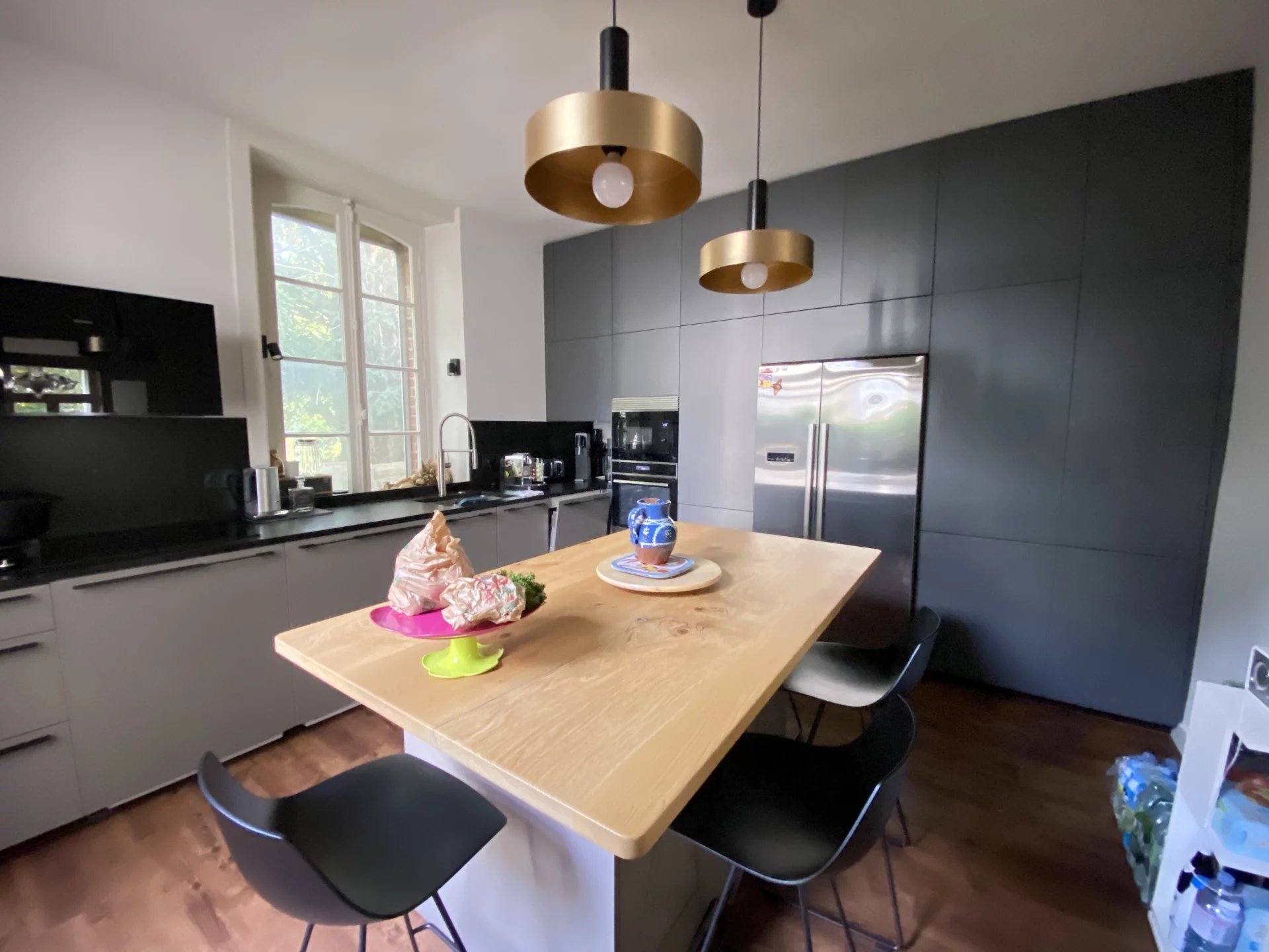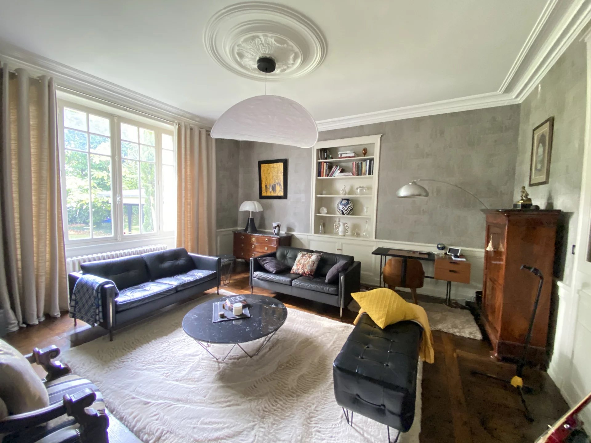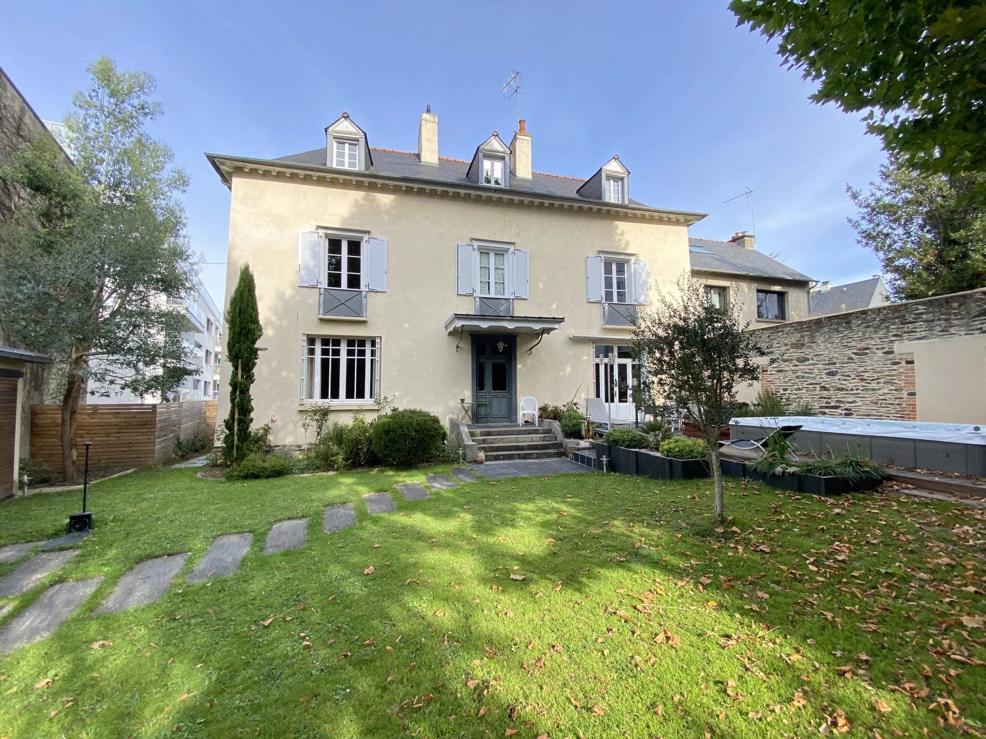 A seulement 5 minutes de la station de métro Ligne B Gros Chêne, maison ancienne datant de 1810 totalement restaurée avec goût et matériaux de qualité offrant sur trois niveaux et 213 m²: au rez-de-chaussée, une entrée desservant un grand salon (parquet, moulures), une salle à manger (cheminée, parquet) avec accès à une grande terrasse, une cuisine indépendante, moderne et équipée avec accès à une seconde terrasse, un wc; au premier étage, un palier desservant une suite parentale avec salle d'eau, deux chambres dont une avec salle d'eau, un wc; au deuxième étage, deux grandes chambres avec une salle de bains-wc. Cette demeure de caractère à la décoration raffinée dispose d'un sous-sol (lingerie-chaufferie, cave). Jardin clos et arboré avec deux terrasses et un spa de nage. Une dépendance facilement aménageable en studio ou bureau. Carport pour deux voitures. Environnement calme et agréable. Proche de toutes les commodités.