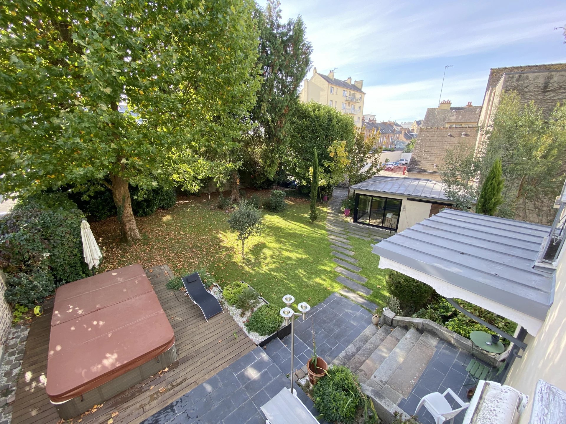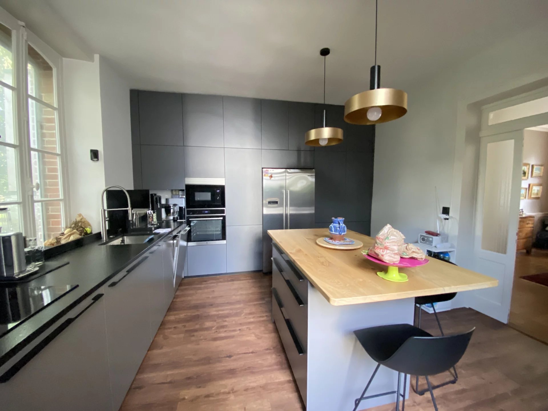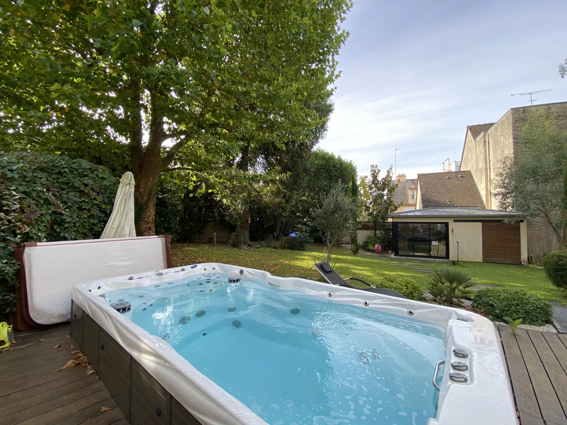A seulement 5 minutes de la station de métro Ligne B Gros Chêne, maison ancienne datant de 1810 totalement restaurée avec goût et matériaux de qualité offrant sur trois niveaux et 213 m²: au rez-de-chaussée, une entrée desservant un grand salon (parquet, moulures), une salle à manger (cheminée, parquet) avec accès à une grande terrasse, une cuisine indépendante, moderne et équipée avec accès à une seconde terrasse, un wc; au premier étage, un palier desservant une suite parentale avec salle d'eau, deux chambres dont une avec salle d'eau, un wc; au deuxième étage, deux grandes chambres avec une salle de bains-wc. Cette demeure de caractère à la décoration raffinée dispose d'un sous-sol (lingerie-chaufferie, cave). Jardin clos et arboré avec deux terrasses et un spa de nage. Une dépendance facilement aménageable en studio ou bureau. Carport pour deux voitures. Environnement calme et agréable. Proche de toutes les commodités.