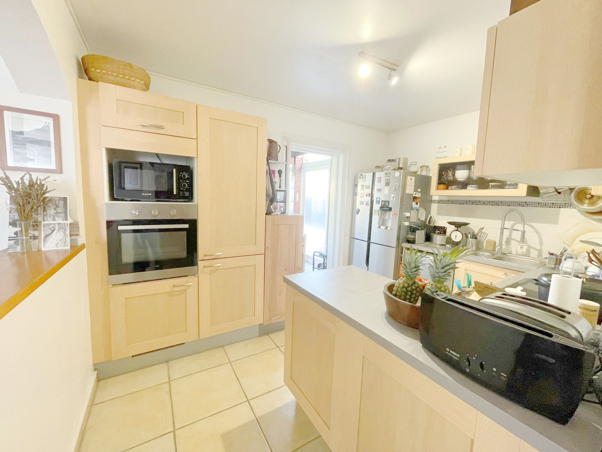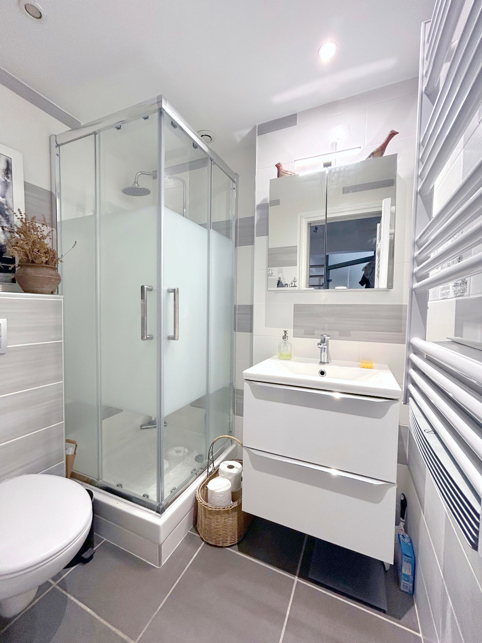 A l'exterieur vous profiterez d'un terrain paysagé très bien agencé de 200 m2 avec un abri de jardin et une place de parking privative .