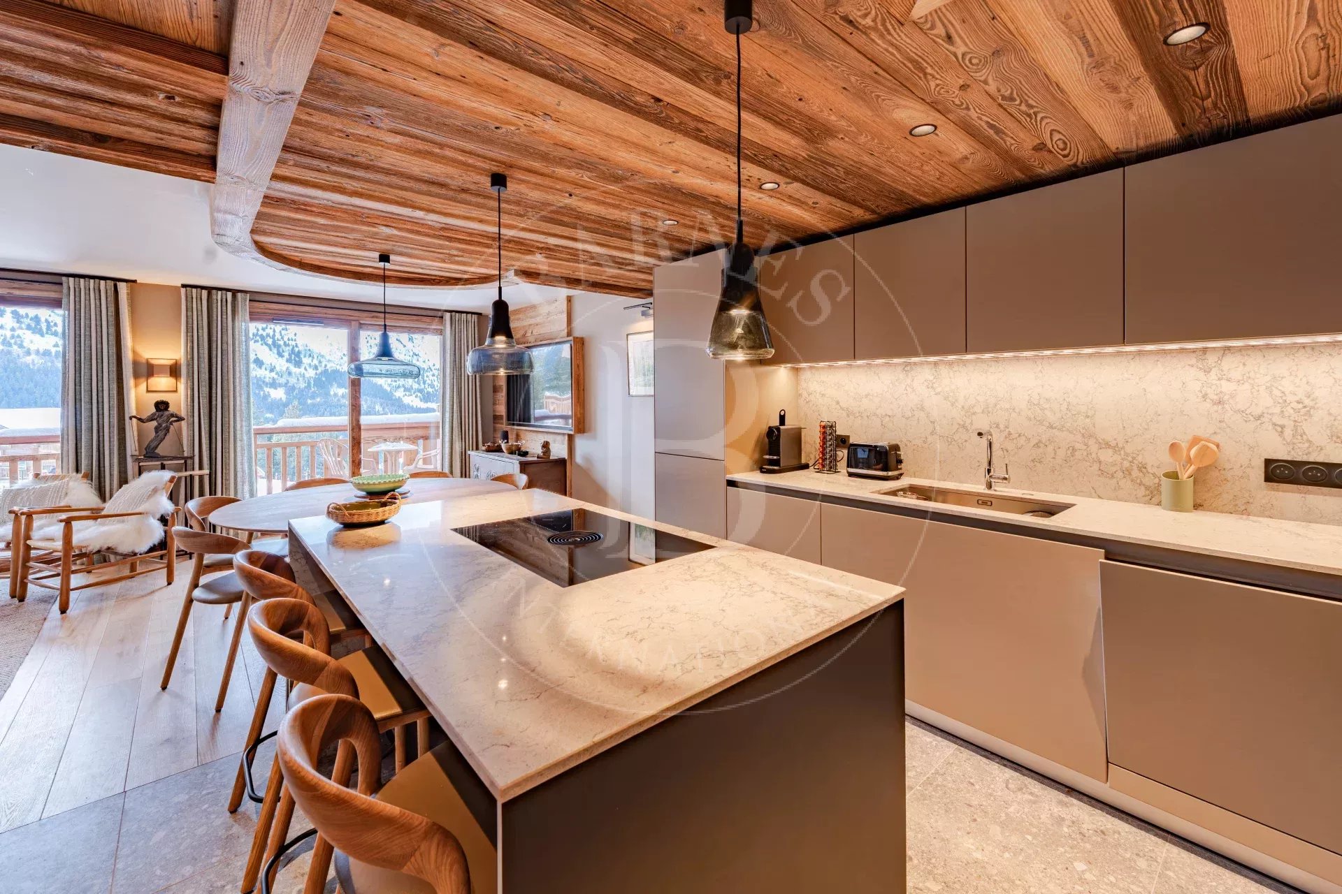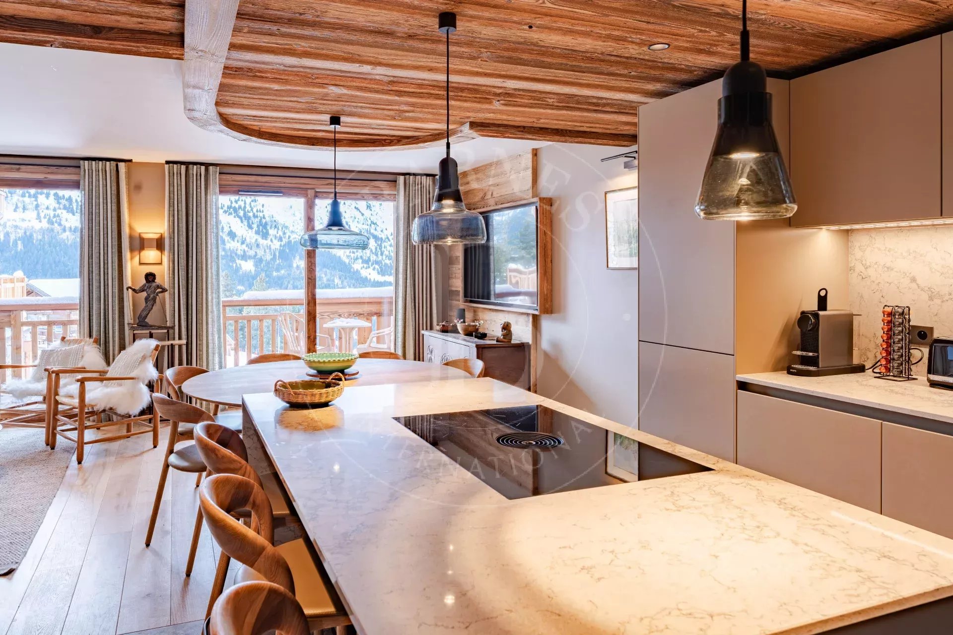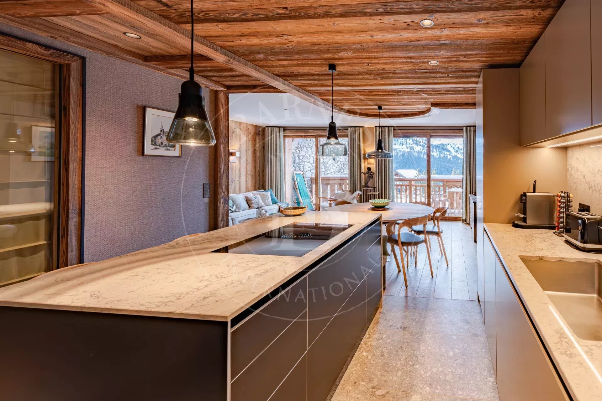 Elle est située en plein cœur du quartier du Rond-Point des Pistes, un emplacement exclusif et stratégique : les meilleurs ensoleillements de la vallée avec terrasses privées, un accès piéton aux commerces, restaurants et aux navettes gratuites desservant le centre station.