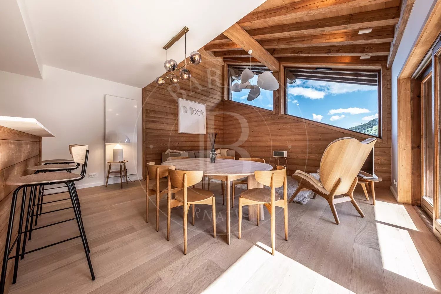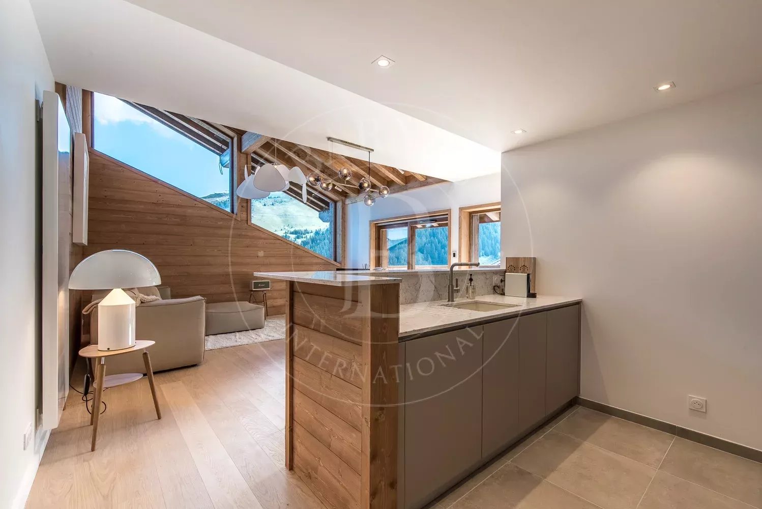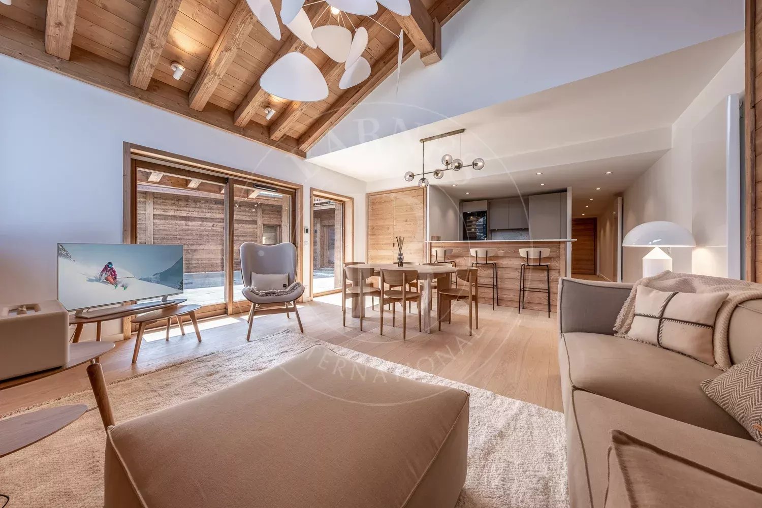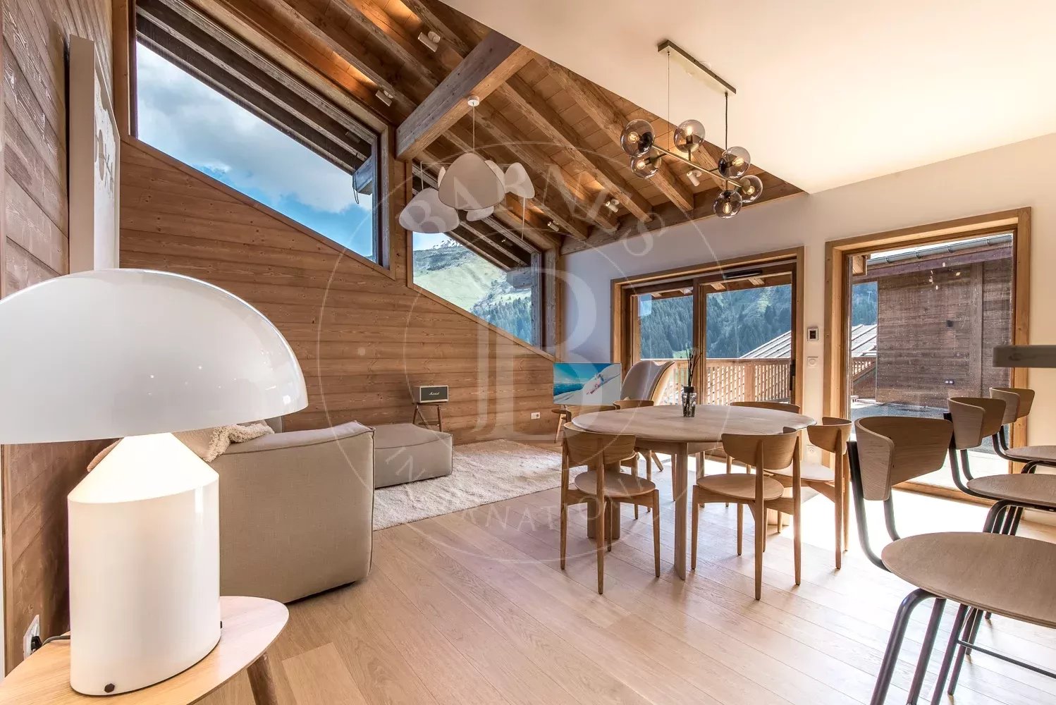 Il bénéficie d'un séjour spacieux et d'une large terrasse offrant une vue imprenable sur la vallée et la Saulire.