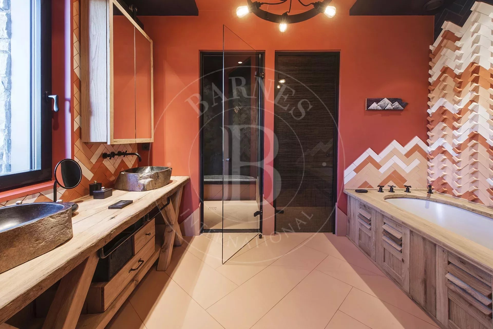 - Chambre 5 - ALPAGE : Lit King size (ou twin) + 2 lits d’appoint – avec dressing, coffre-fort, TV - Salle de bain (douche et baignoire), 2 vasques et WC séparé