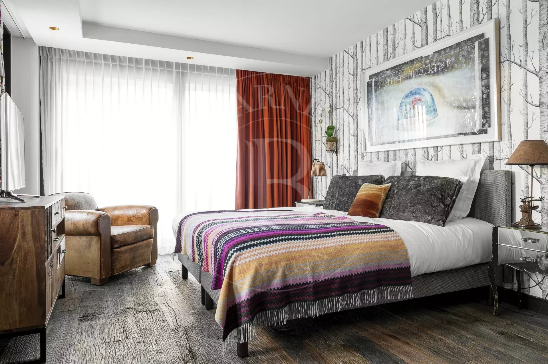 - Chambre 1 - SOUS BOIS : Lit Queen Size (ou twin) avec TV - Dressing avec coffre-fort - Salle de bain avec 1 vasque, WC et baignoire