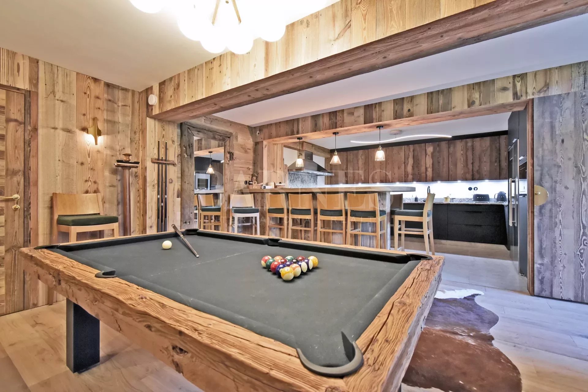 Après une journée d'aventures sur les pistes des 3 Vallées, détendez-vous dans le hammam ou plongez dans le bain nordique extérieur. Pour des moments de loisirs, vous pourrez également profiter d’une partie de billard ou vous réunir dans la salle de cinéma privée pour une soirée film en toute convivialité.