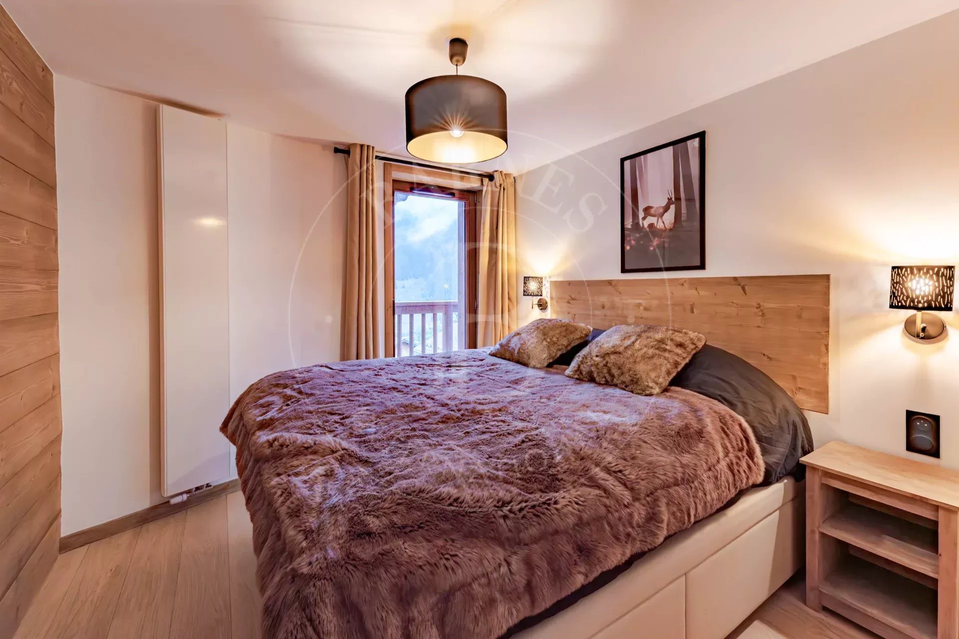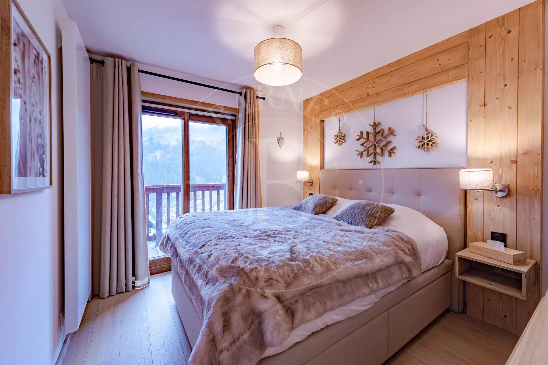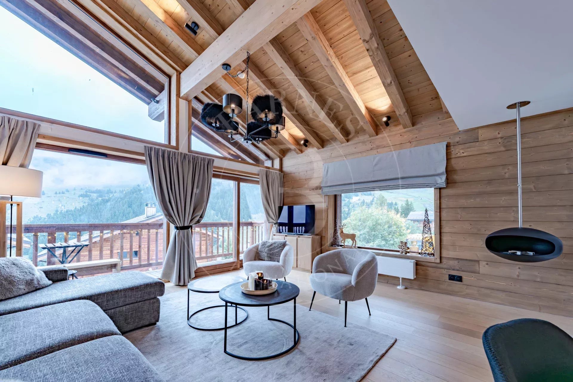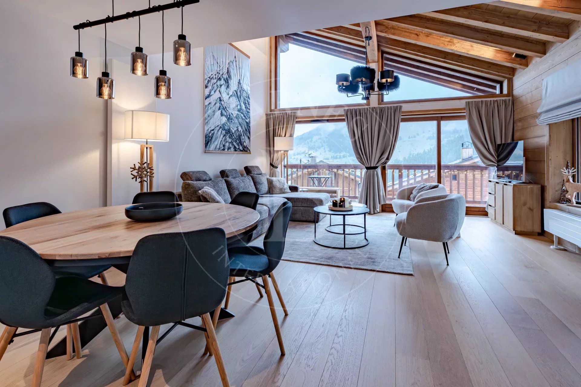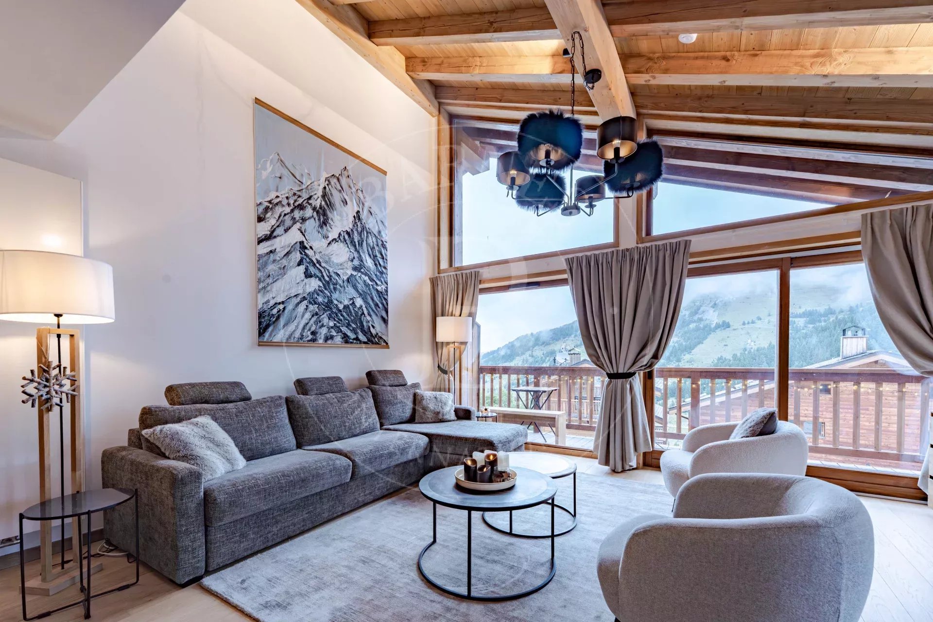 Il bénéficie d'un spacieux séjour et d'une vue imprenable sur la vallée et l'emblématique Saulire.
