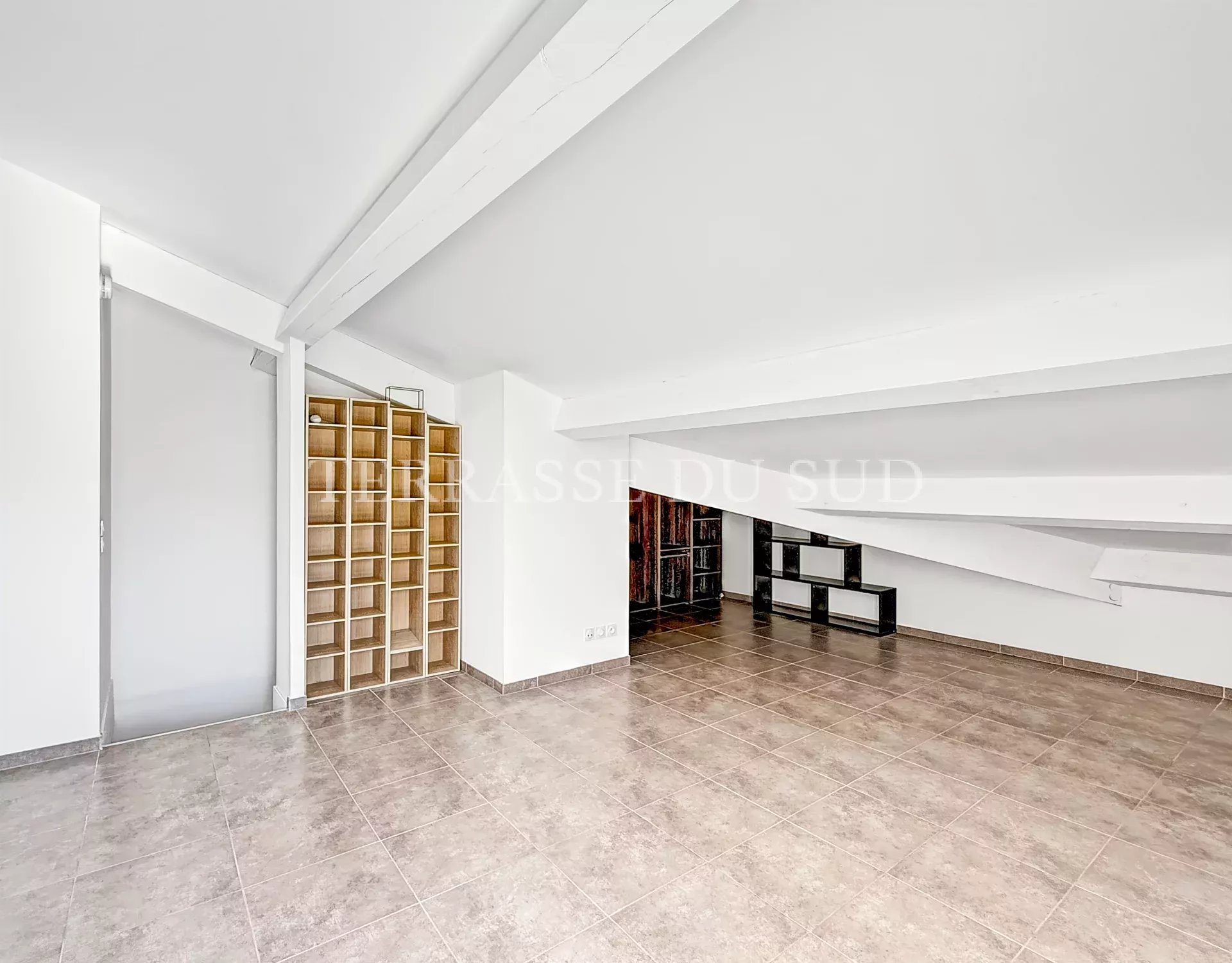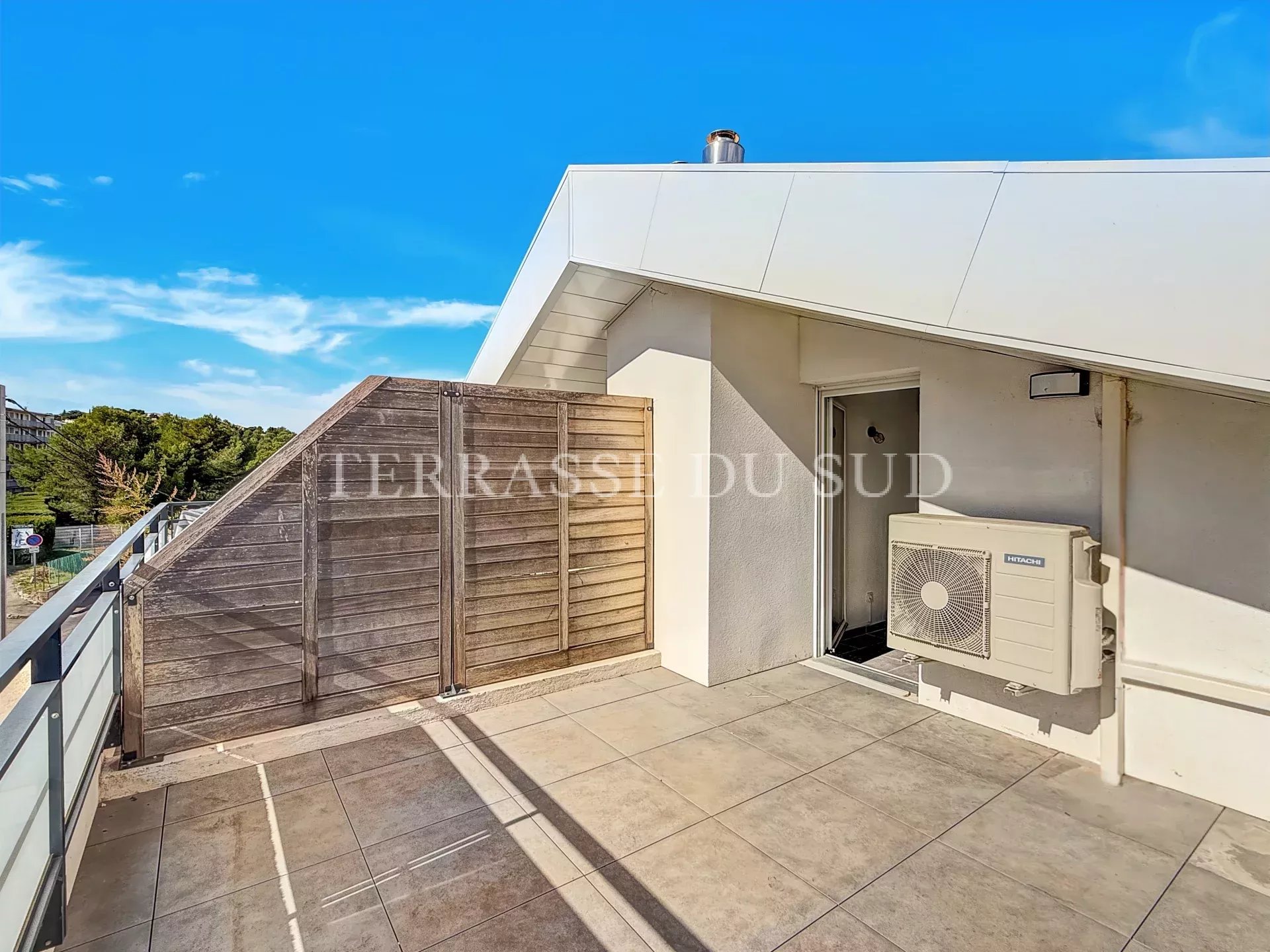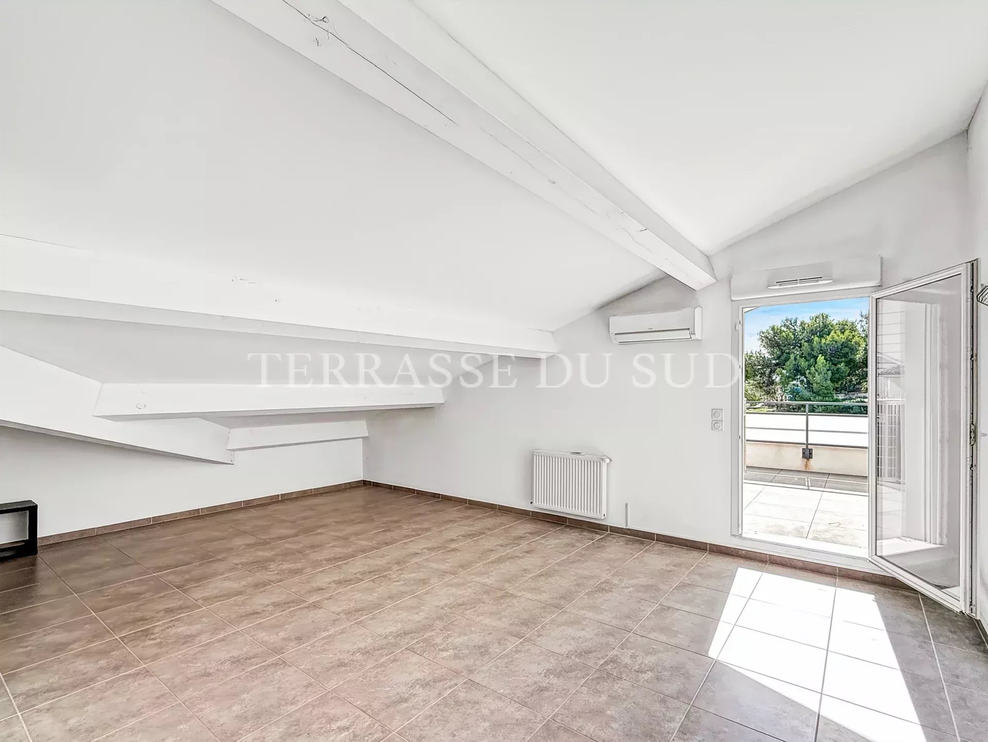 Les Cadeneaux - Les Pennes Mirabeau Ce bel appartement en duplex, exposé Est et Sud, se situe au 1er et dernier étage d'une jolie résidence récente (2020), sécurisée et très bien entretenue. Lumineux, il se compose, au 1er niveau, d'une entrée avec placard, d'une belle pièce de vie de 40m² environ avec cuisine aménagée, d'une chambre, d'une spacieuse salle de bains et de toilettes indépendantes. A l'étage, se trouve une vaste chambre mansardée de 18 m2 au sol (12,35 m2 LC) ouvrant sur une belle terrasse de près de 13 m2. Le séjour bénéficie également d'une terrasse de 8,60 m² offrant une jolie vue dégagée. Les fenêtres sont en PVC double vitrage et les volets roulants sont électriques. Le chauffage individuel est au gaz. L'appartement bénéficie également d'une climatisation réversible sur chaque niveau. Les charges de propriété sont de 148 euros par mois. La taxe foncière est d'environ 1 360 euros. Possibilité d'acquérir, en sus du prix affiché, un box double de 28 m2 environ au prix de 20 000 euros. Autres prestations: visiophone, ascenseur. Proximité: bus, commerces, au coeur des Cadeneaux. Contact: Mme FERRATO 06 24 18 25 20
