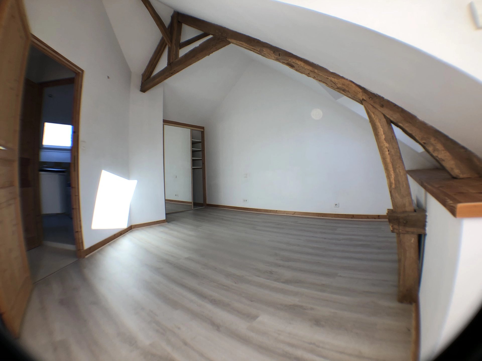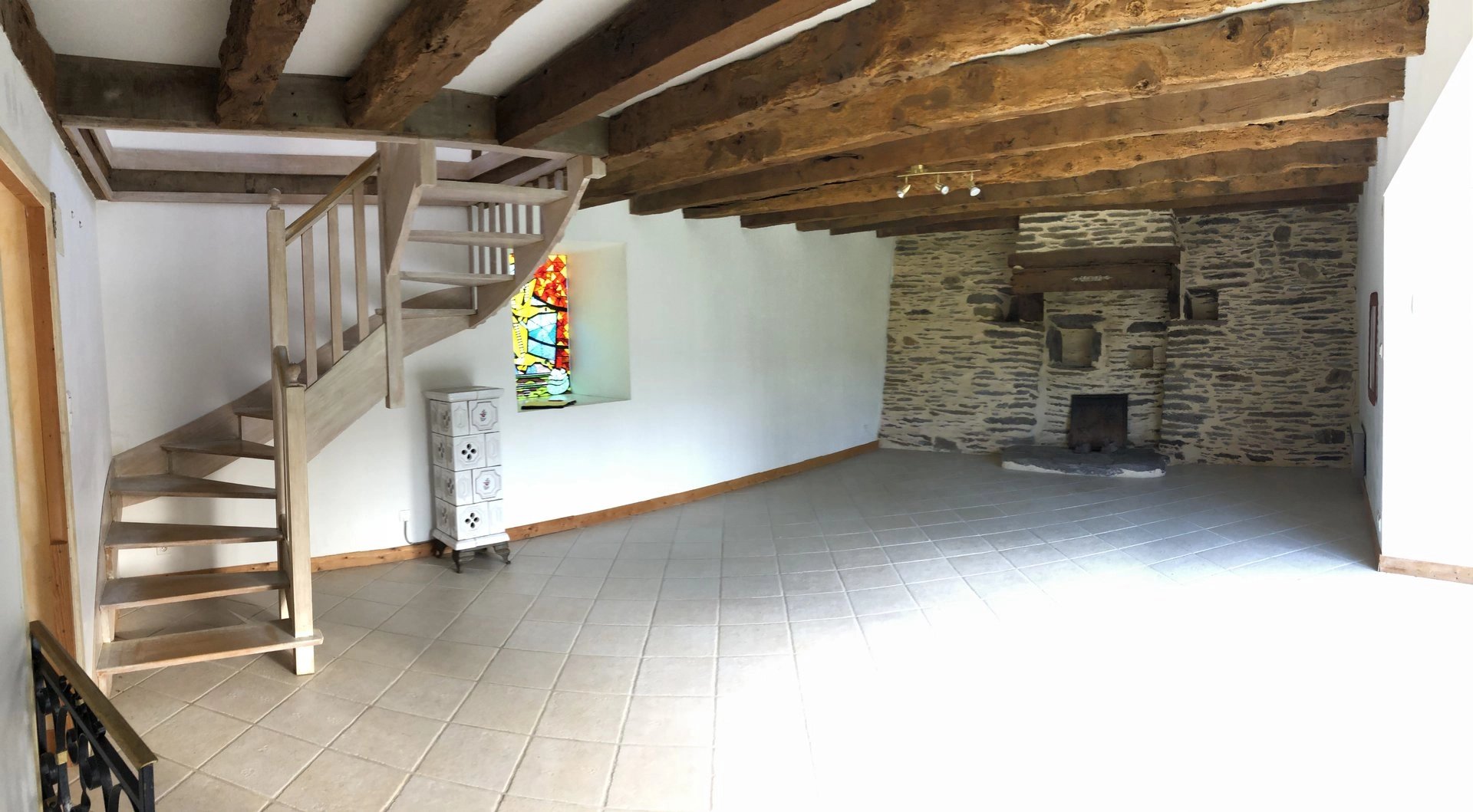Cette maison lumineuse est composée d'une entrée avec placard, une grande cuisine avec mezzanine, une salle d'eau, un séjour de 36m² avec pierres apparentes, à l'étage 2 chambres avec placards et une salle de bains.