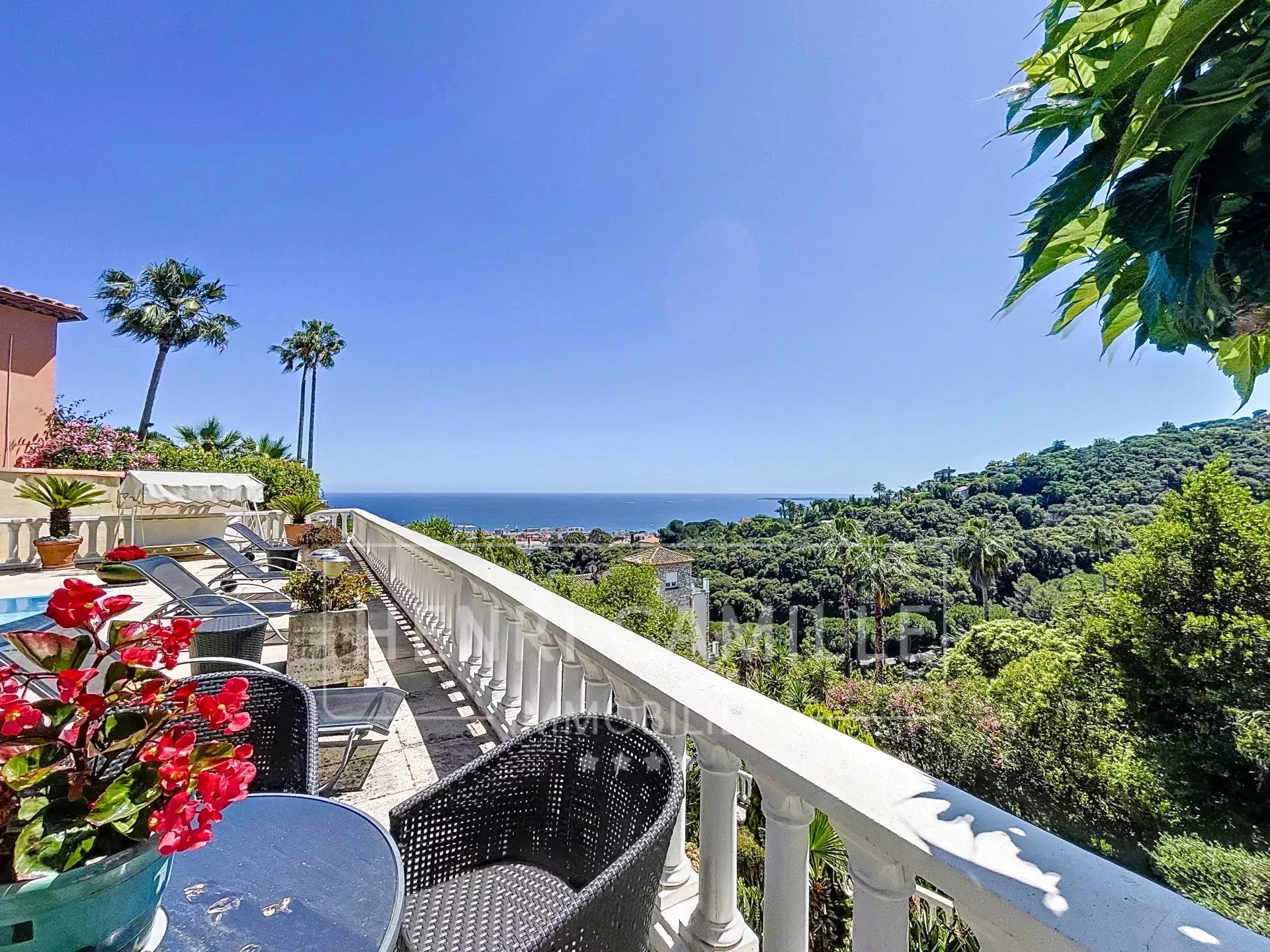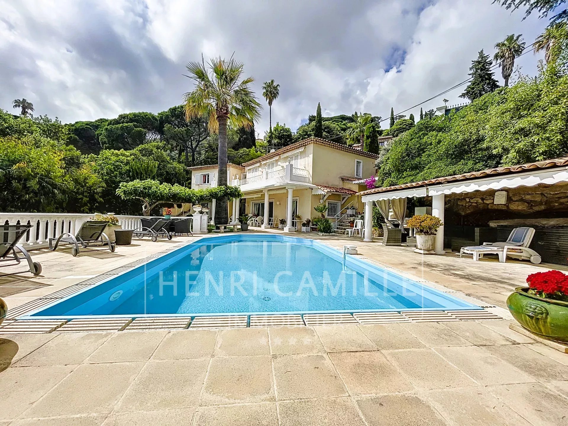 Très belle construction pour cette villa au calme total, avec de plain pied la réception, la suite parentale, cuisine équipée. A l'étage 4 Chambres, 1 bureau. Atelier. Salon d'été ouvrant sur grande piscine. Abri voiture 40m², stationnement pour 6 voitures. Proche du port de Golfe Juan