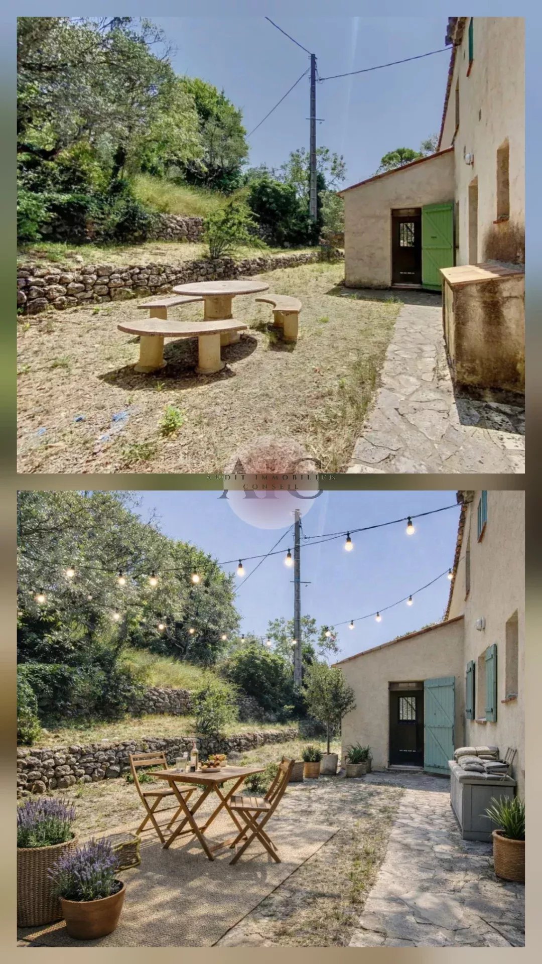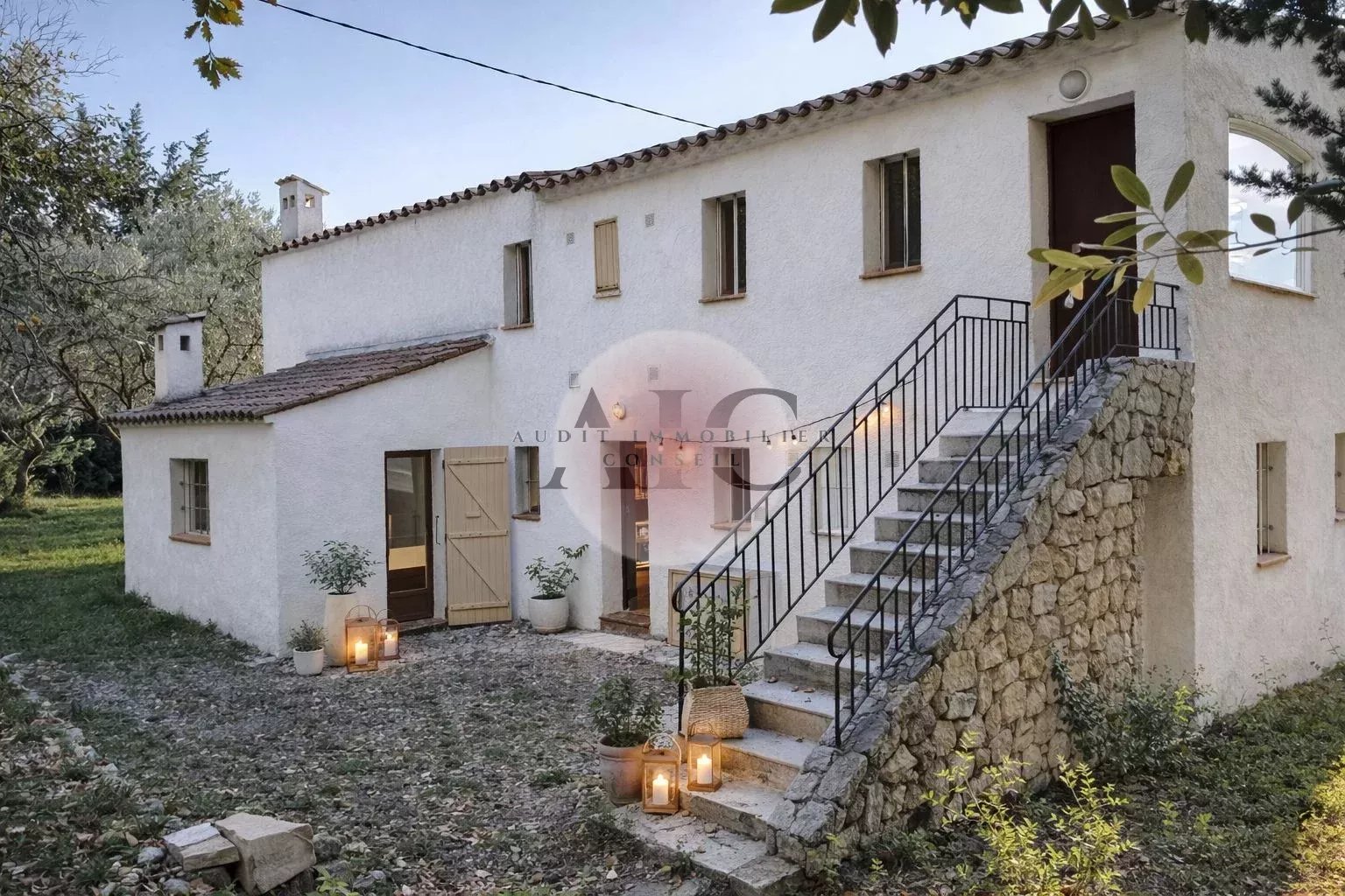 Belle Bastide de 140 m² environ, composée de 5 pièces, 4 Chambres, 2 Salles de Bains, 2 WC, sur un très beau terrain arboré d'oliviers de 2175 m2, vue dominante sur le Village de Tourrettes, exposition plein sud. Quartier prisé, très résidentiel. En Rdc, Séjour-Salon, grande mezzanine, cuisine, 2 chambres, salle de bain, WC séparé. A l'étage, 2 chambres, salle bain et WC séparés. Travaux de rénovation à prévoir entre 100 000 et 150 000€. Quelques photos avant / après (Ia) afin de vous aidez à visualiser et vous aidez à vous projeter pour une rénovation afin de vous montrer le magnifique potentiel de cette maison)
