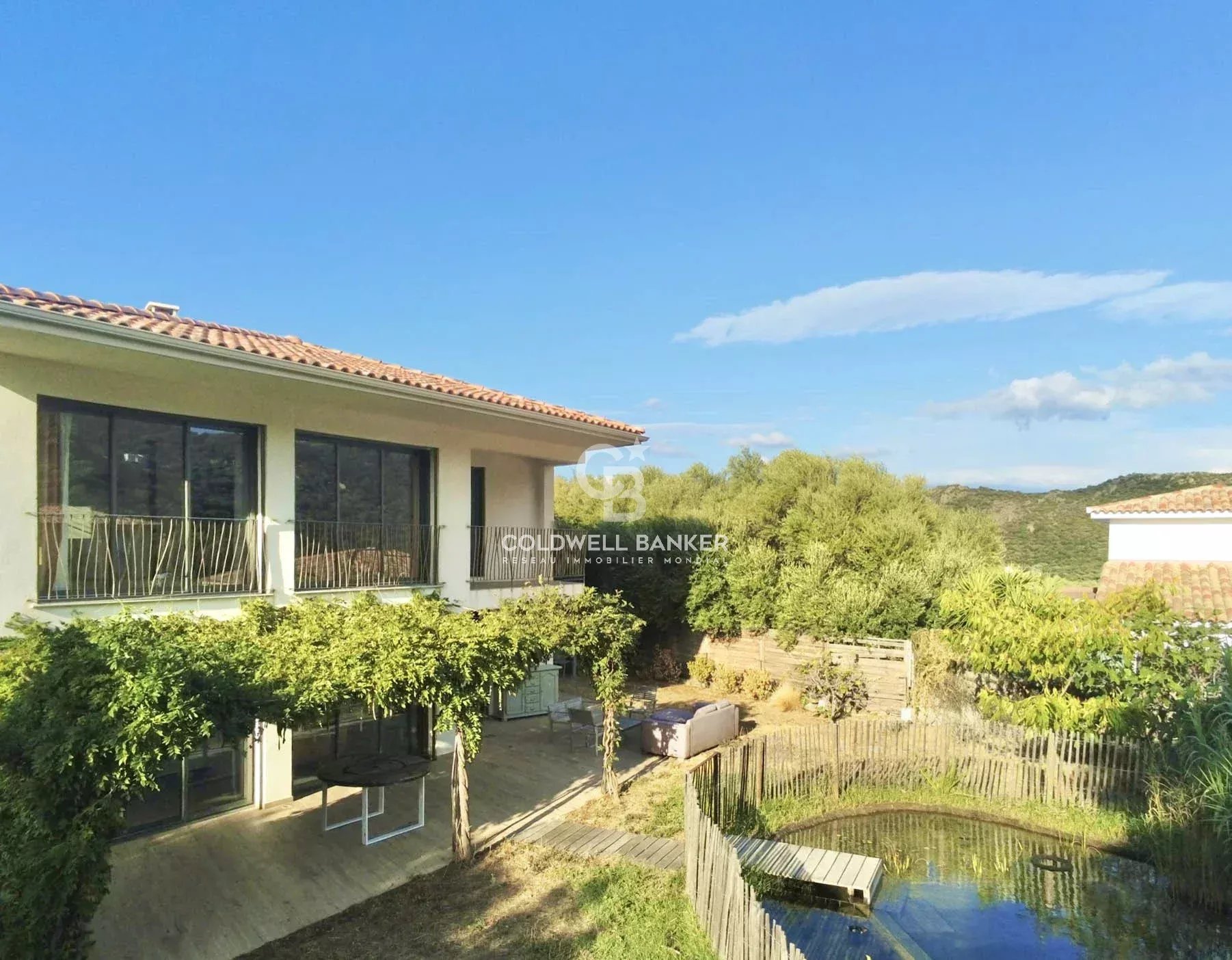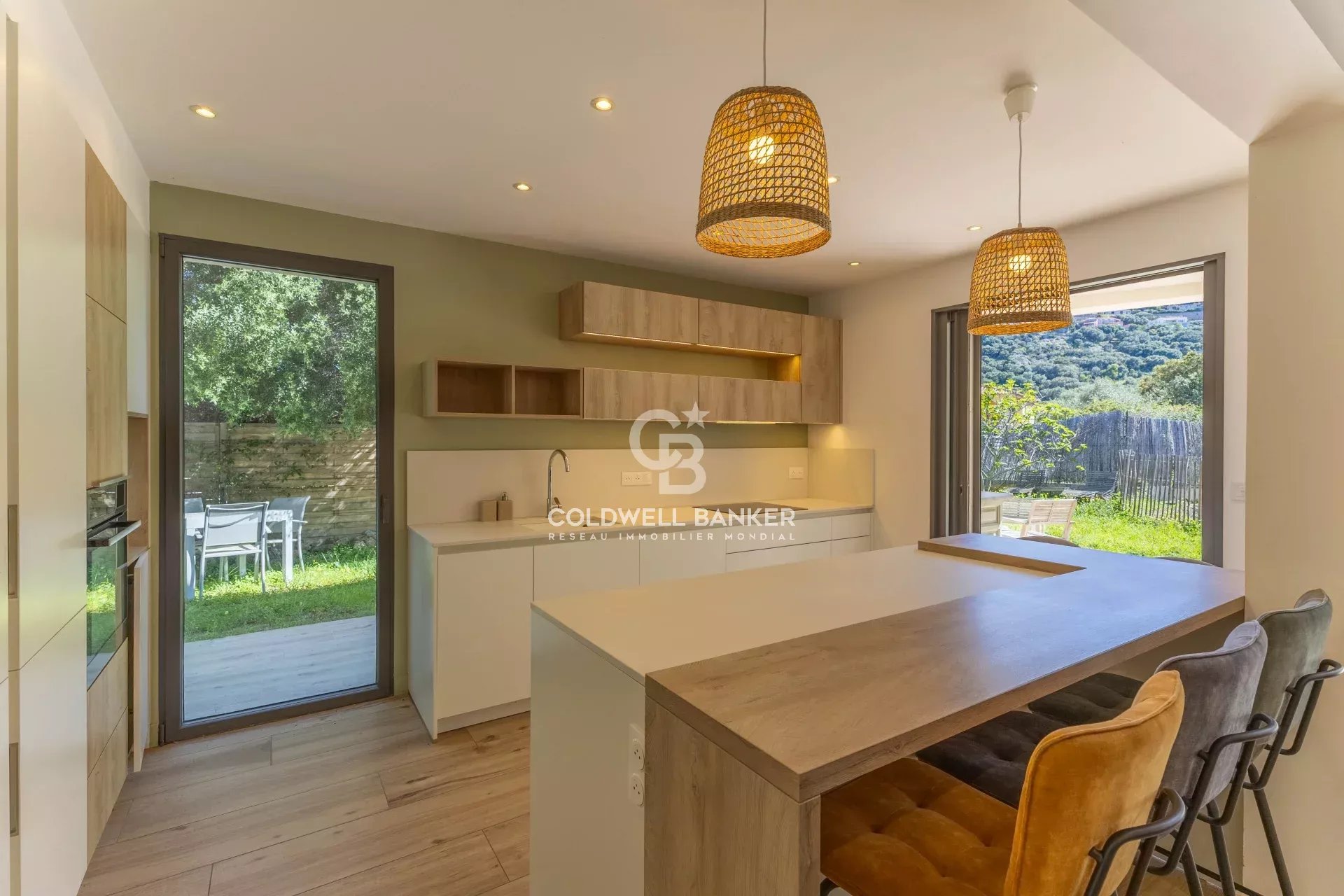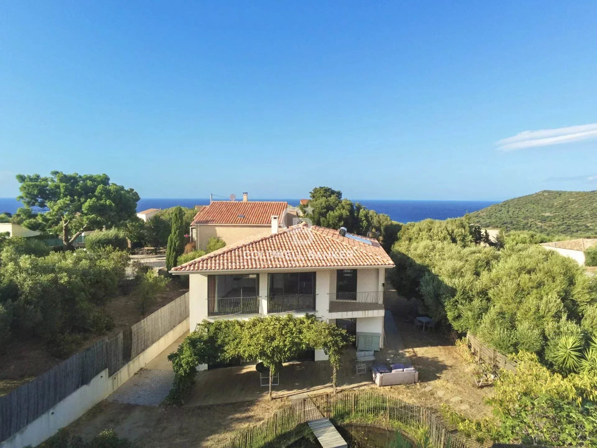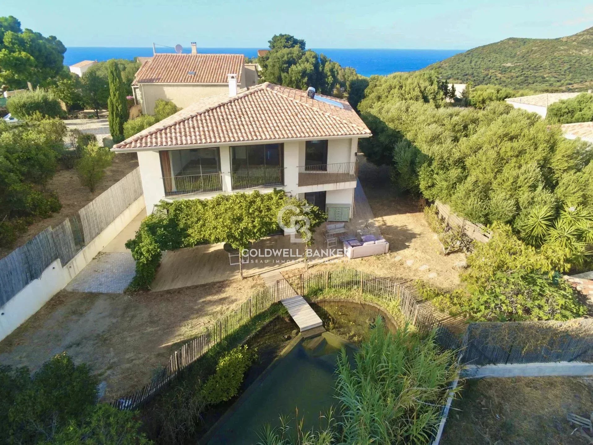 Située dans un environnement résidentiel paisible du bassin île-roussien, cette villa contemporaine bioclimatique se distingue par son confort, sa fonctionnalité et sa belle vue sur le village. Exposée plein sud et édifiée sur une parcelle plate d’environ 1 000 m², elle développe une surface habitable d’environ 150 m² et se compose comme suit : Rez-de-chaussée : • entrée, vaste séjour lumineux, cuisine ouverte avec salle à manger, • WC invités, • une suite parentale avec salle d’eau et dressing, • garage transformé en buanderie (ou 5ᵉ chambre selon vos besoins), • grande terrasse périphérique idéale pour les repas en extérieur. Étage : • hall de distribution, • salle de bain avec WC, • espace de jeux avec filet et coin bureau, • trois chambres confortables, • terrasse couverte avec vue dégagée. À l’extérieur, une piscine naturelle et un vaste jardin viennent parfaire l’ensemble. Possibilité de transformation en piscine classique selon vos préférences. Atouts : prestations haut de gamme, architecture design, logement récent à très faible consommation énergétique (classe A), excellente isolation, climatisation réversible, poêle à bois. Un bien rare sur le marché offrant un excellent rapport qualité / prix / emplacement, à seulement : • 5 minutes du centre et du port de L’Île-Rousse, • 5 minutes des plages, • 25 minutes de Calvi et de son aéroport. Coldwell Banker Allegrini Realty allegrini.realty@coldwellbanker.fr 06 01 29 10 00