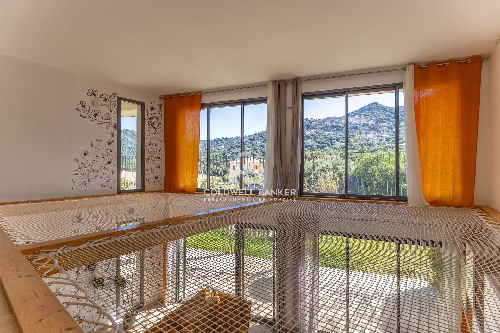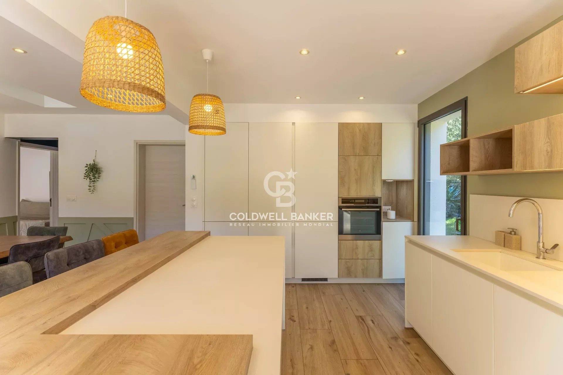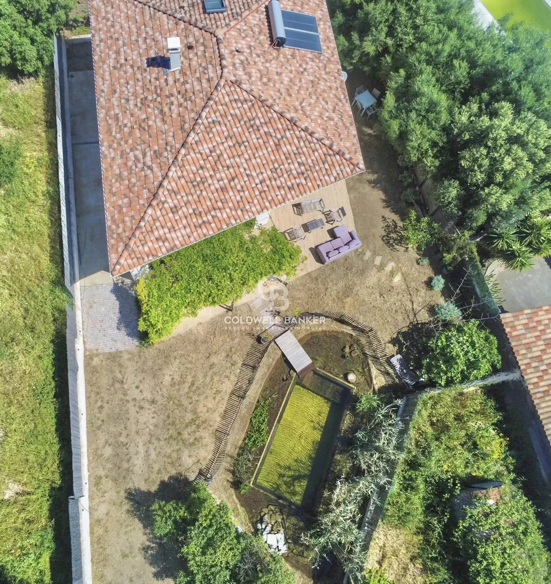Située dans un environnement résidentiel paisible du bassin île-roussien, cette villa contemporaine bioclimatique se distingue par son confort, sa fonctionnalité et sa belle vue sur le village. Exposée plein sud et édifiée sur une parcelle plate d’environ 1 000 m², elle développe une surface habitable d’environ 150 m² et se compose comme suit : Rez-de-chaussée : • entrée, vaste séjour lumineux, cuisine ouverte avec salle à manger, • WC invités, • une suite parentale avec salle d’eau et dressing, • garage transformé en buanderie (ou 5ᵉ chambre selon vos besoins), • grande terrasse périphérique idéale pour les repas en extérieur. Étage : • hall de distribution, • salle de bain avec WC, • espace de jeux avec filet et coin bureau, • trois chambres confortables, • terrasse couverte avec vue dégagée. À l’extérieur, une piscine naturelle et un vaste jardin viennent parfaire l’ensemble. Possibilité de transformation en piscine classique selon vos préférences. Atouts : prestations haut de gamme, architecture design, logement récent à très faible consommation énergétique (classe A), excellente isolation, climatisation réversible, poêle à bois. Un bien rare sur le marché offrant un excellent rapport qualité / prix / emplacement, à seulement : • 5 minutes du centre et du port de L’Île-Rousse, • 5 minutes des plages, • 25 minutes de Calvi et de son aéroport. Coldwell Banker Allegrini Realty allegrini.realty@coldwellbanker.fr 06 01 29 10 00