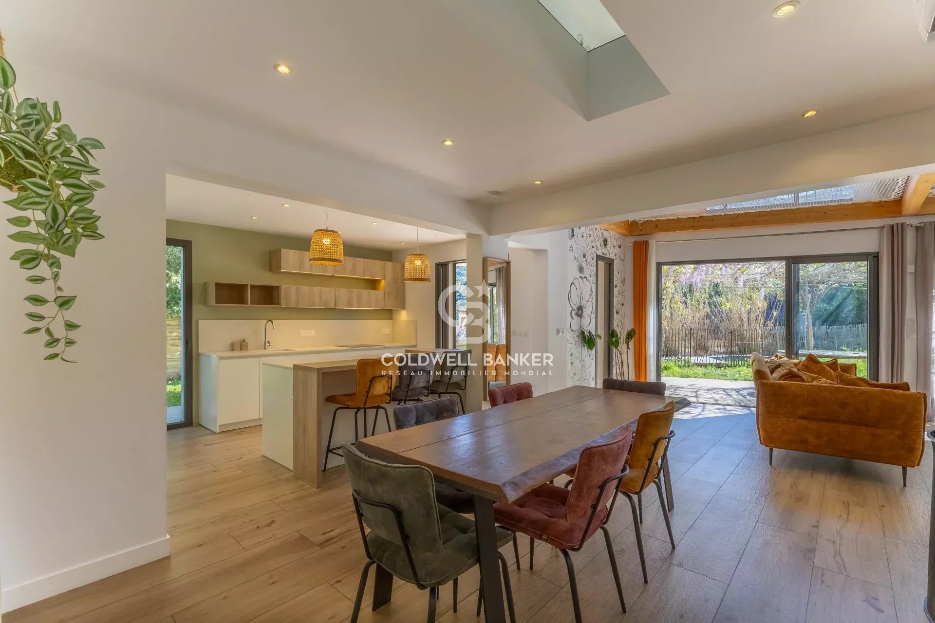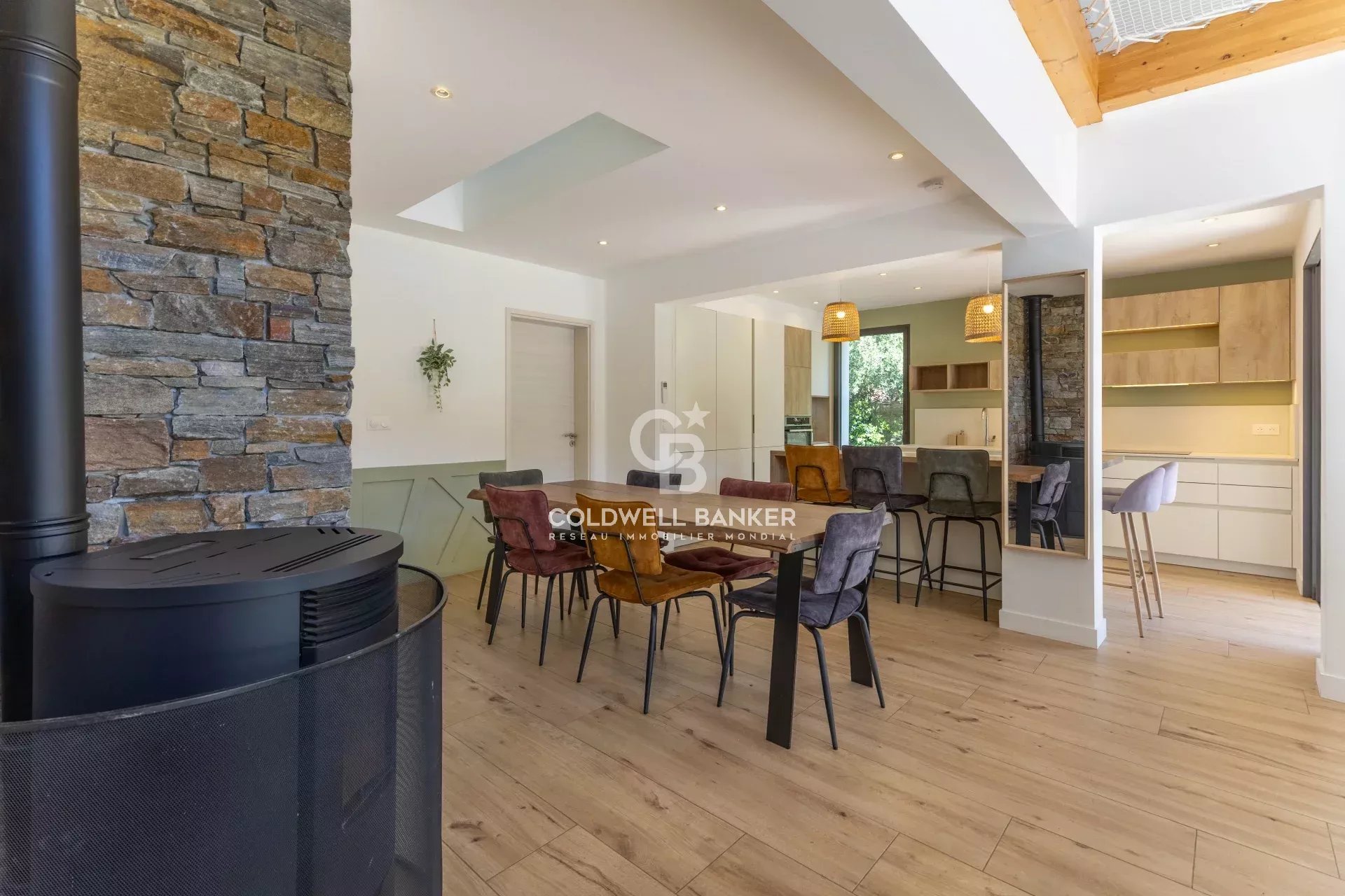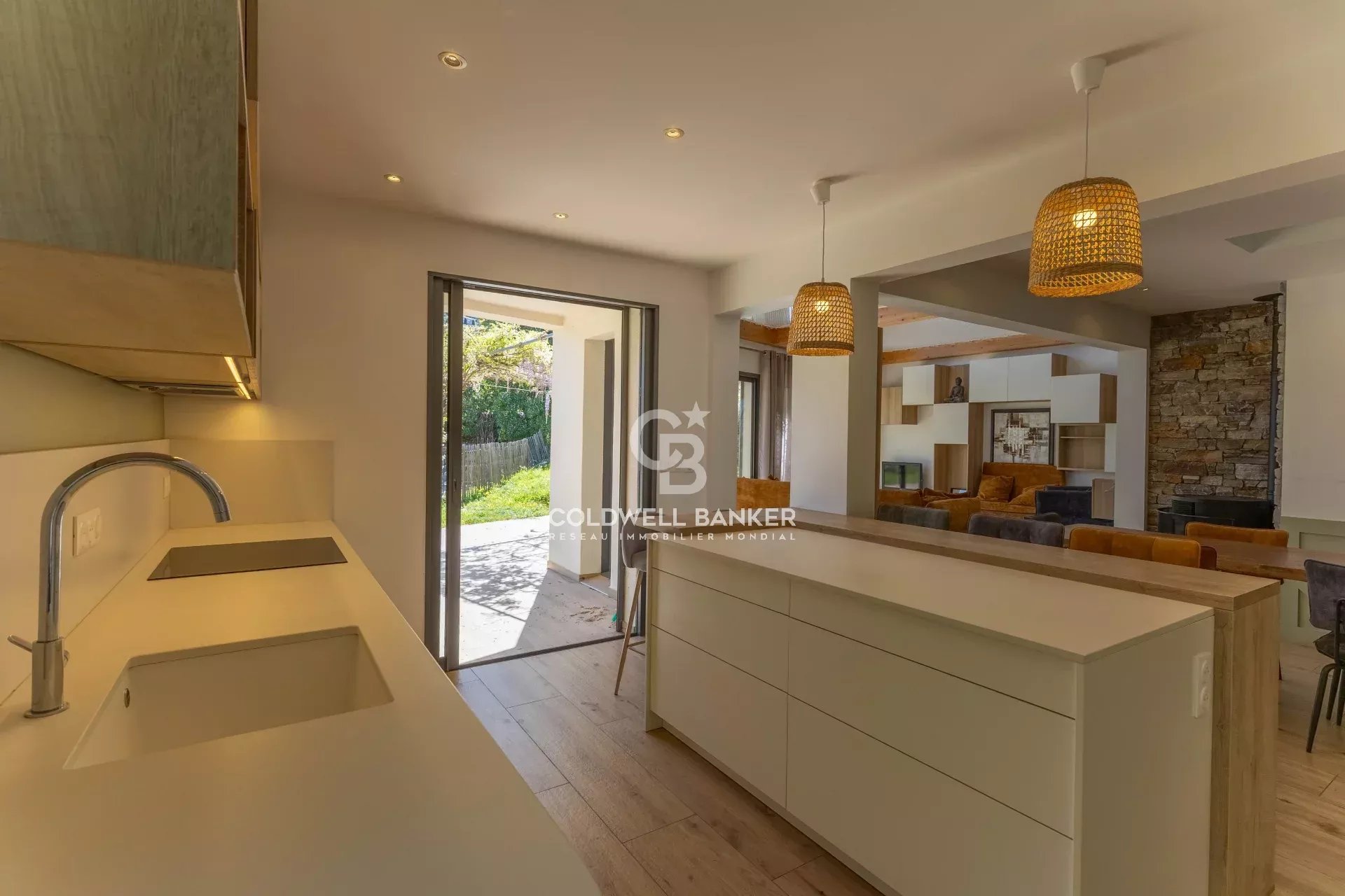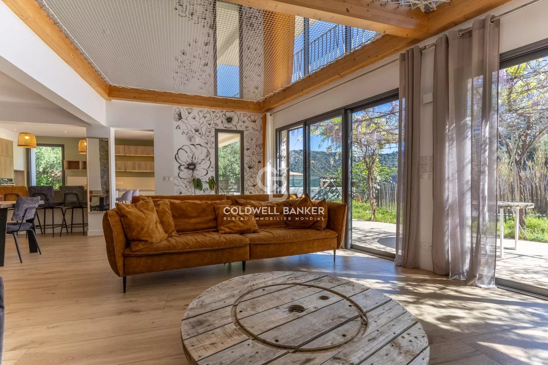 Située dans un environnement résidentiel paisible du bassin île-roussien, cette villa contemporaine bioclimatique se distingue par son confort, sa fonctionnalité et sa belle vue sur le village. Exposée plein sud et édifiée sur une parcelle plate d’environ 1 000 m², elle développe une surface habitable d’environ 150 m² et se compose comme suit : Rez-de-chaussée : • entrée, vaste séjour lumineux, cuisine ouverte avec salle à manger, • WC invités, • une suite parentale avec salle d’eau et dressing, • garage transformé en buanderie (ou 5ᵉ chambre selon vos besoins), • grande terrasse périphérique idéale pour les repas en extérieur. Étage : • hall de distribution, • salle de bain avec WC, • espace de jeux avec filet et coin bureau, • trois chambres confortables, • terrasse couverte avec vue dégagée. À l’extérieur, une piscine naturelle et un vaste jardin viennent parfaire l’ensemble. Possibilité de transformation en piscine classique selon vos préférences. Atouts : prestations haut de gamme, architecture design, logement récent à très faible consommation énergétique (classe A), excellente isolation, climatisation réversible, poêle à bois. Un bien rare sur le marché offrant un excellent rapport qualité / prix / emplacement, à seulement : • 5 minutes du centre et du port de L’Île-Rousse, • 5 minutes des plages, • 25 minutes de Calvi et de son aéroport. Coldwell Banker Allegrini Realty allegrini.realty@coldwellbanker.fr 06 01 29 10 00