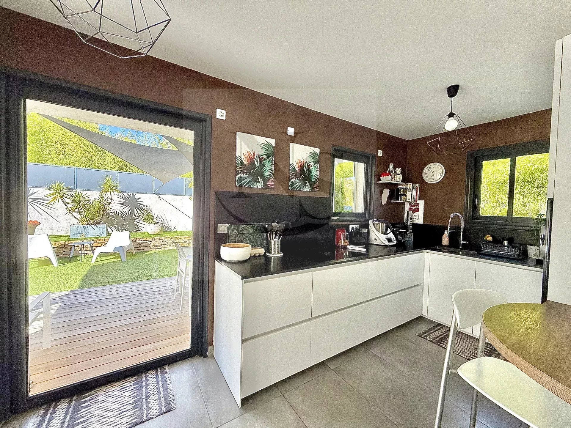 Entre mer et collines, où le luxe se vit au quotidien dans un silence. Maison contemporaine de 116m2 allie raffinement, confort absolu et sérénité. À seulement 2,5 km des eaux cristallines de Bandol, Ici, la nature commence au pas de la porte avec un réseau de sentiers en pleine nature relie directement la villa aux plages et le centre ville , offrant un luxe rare et celui d’une accessibilité immédiate. La maison s’ouvre sur de vastes volumes baignés de lumière grâce à ses larges baies vitrées qui effacent la frontière entre intérieur et extérieur. Un extérieur sans compromis, véritable prolongement de la maison, l’espace extérieur offre tous les plaisirs d’une maison méditerranéenne sans les contraintes d’entretien. La piscine invite à la détente dans une atmosphère intimiste, complétée par un garage et des espaces de stationnement privés. Chaque espace est conçu pour profiter du soleil et de la douceur de vivre du sud, sans concession. Tout est pensé pour offrir un quotidien fluide, lumineux et paisible, où chaque détail traduit une exigence de qualité et de raffinement. Majoritairement de plain-pied, la maison s’articule autour d’un vaste espace de vie sublimé par une cuisine italienne ARRITAL entièrement équipée, complétée par une élégante cave à vin LE CHAI pour les amateurs de grands crus. Ce niveau accueille également une suite parentale raffinée avec salle d’eau, ouvrant directement sur la piscine, ainsi qu’une buanderie discrète et pratique. À l’étage, trois chambres lumineuses prolongent l’espace nuit, accompagnées d’une salle de bain élégante et d’un toilette indépendant, offrant confort et intimité à chaque occupant.