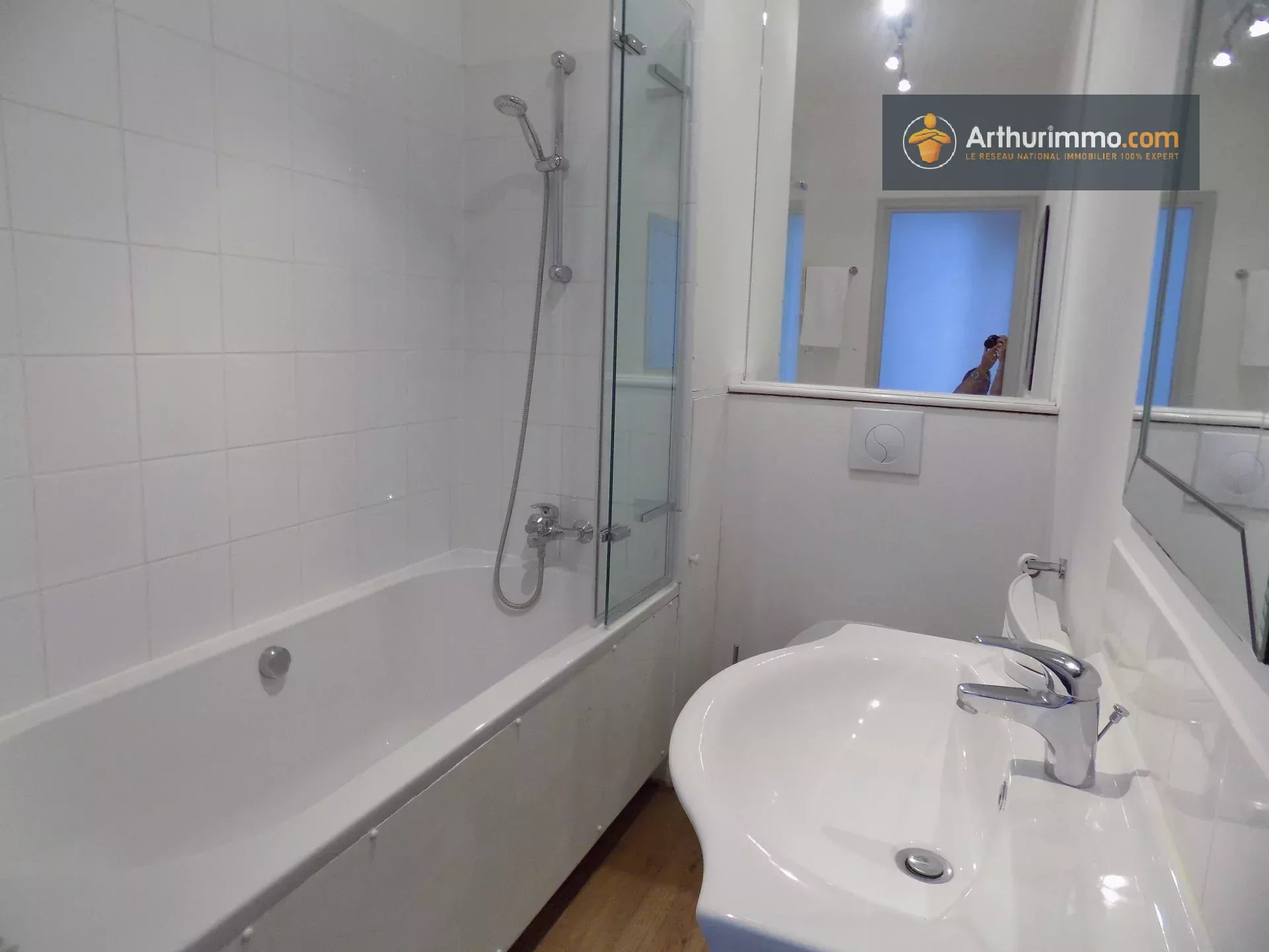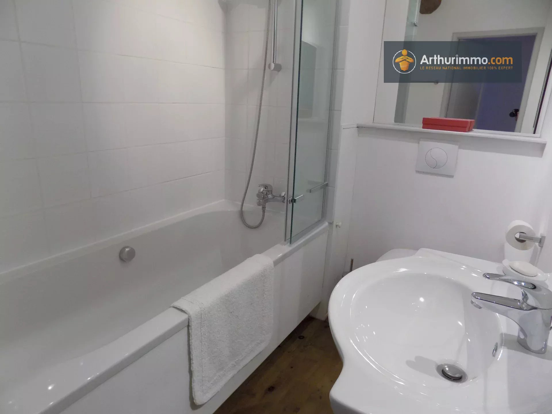 De plus, il y a une salle de bain qui a une baignoire avec douche, wc et lavabo.
