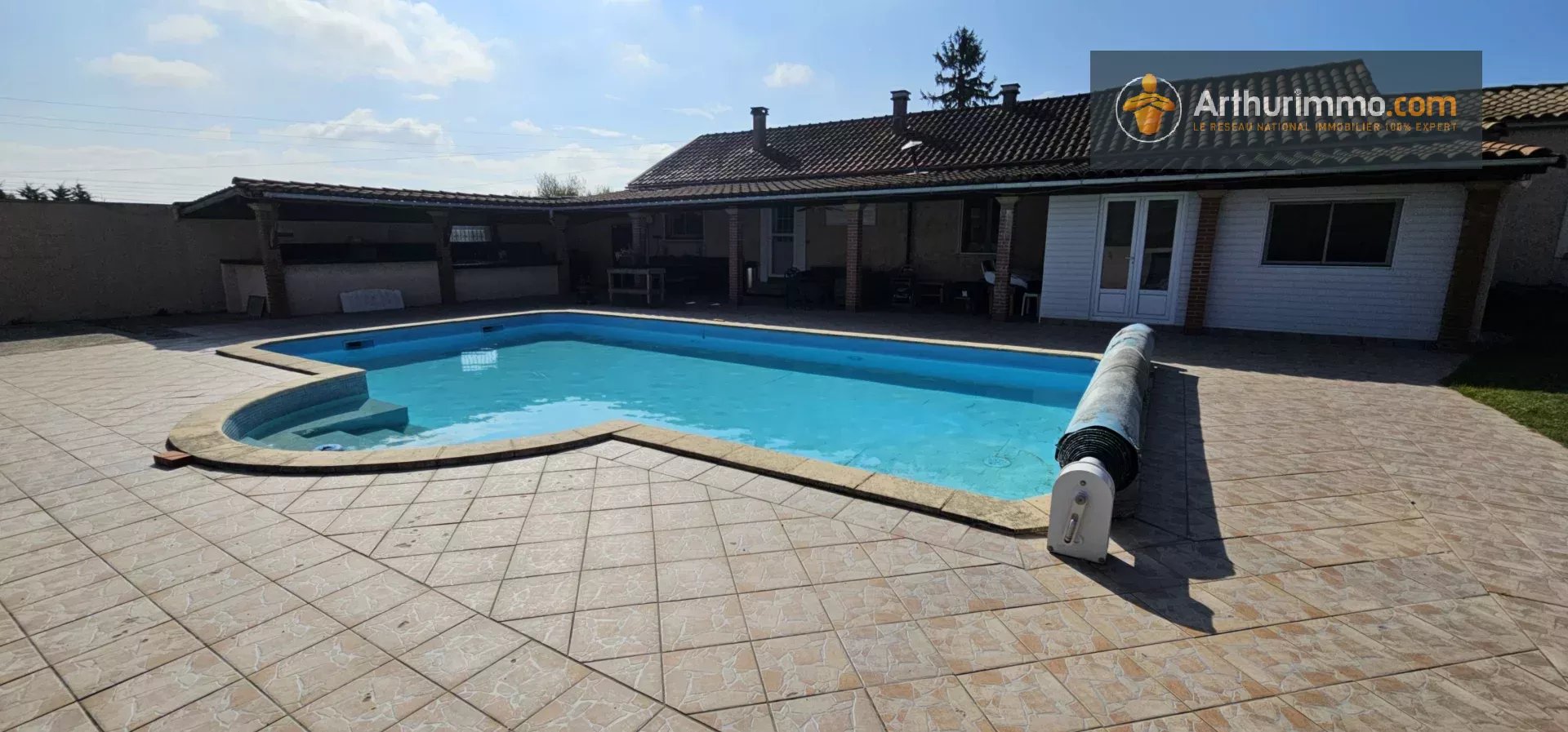 L'entrée par la véranda s'ouvre sur un beau séjour de 50 m², un espace lumineux et chaleureux doté d'un poêle à granulés pour des soirées d'hiver agréables et de portes-fenêtres donnant directement sur la terrasse arrière et la piscine.