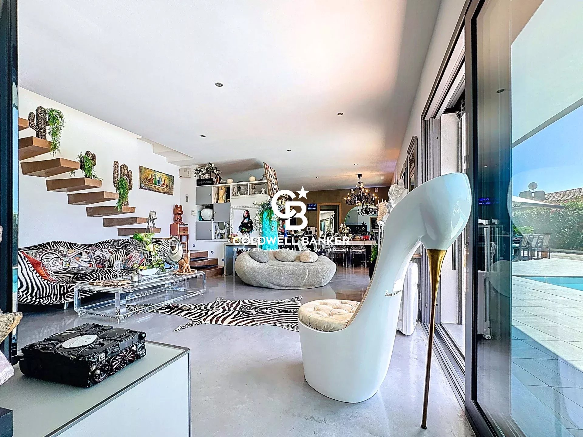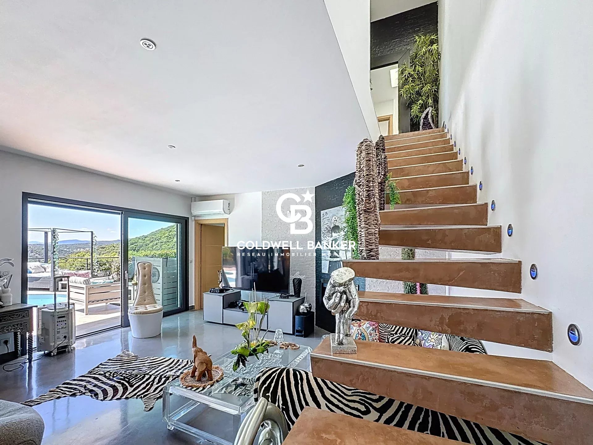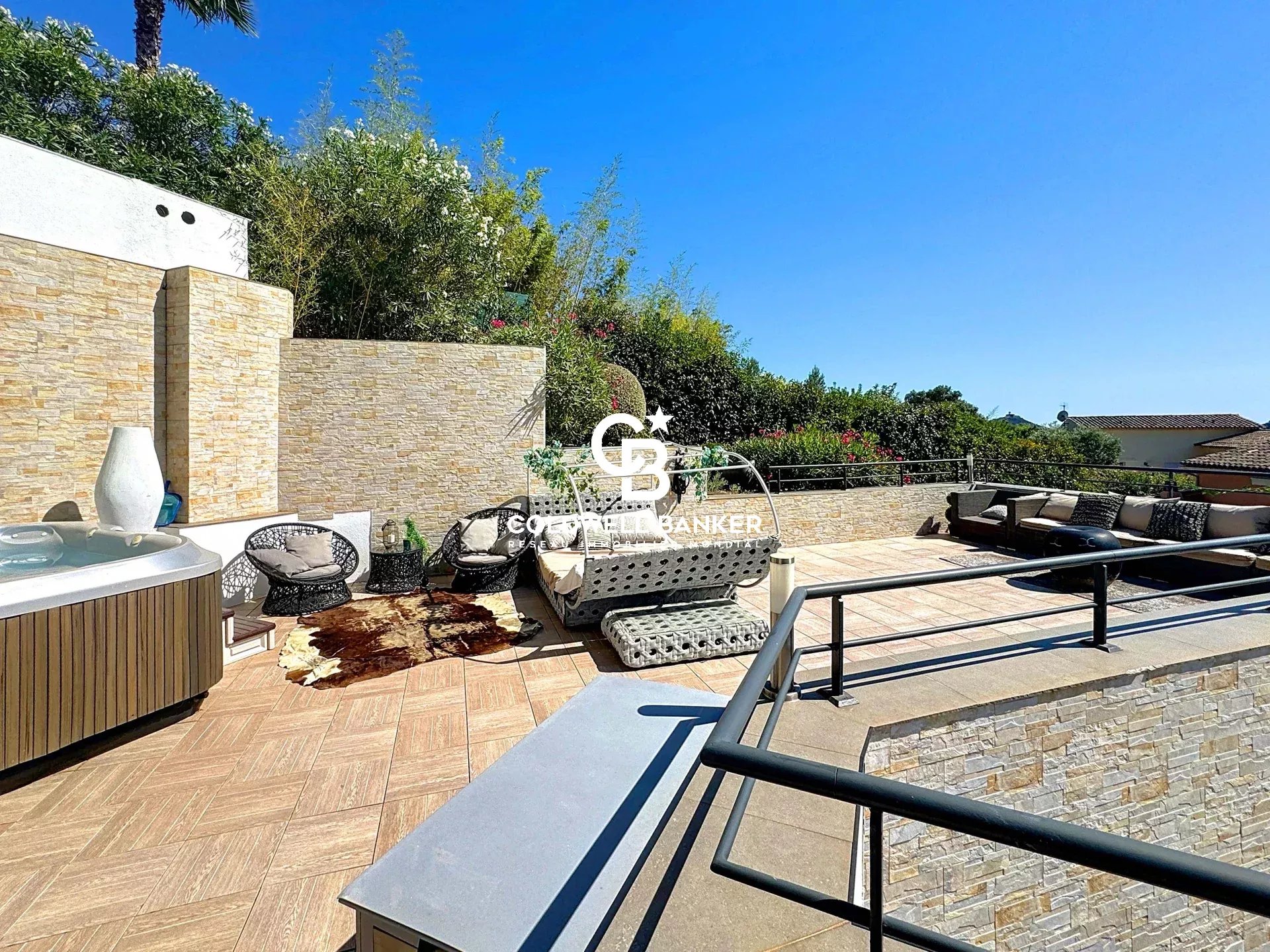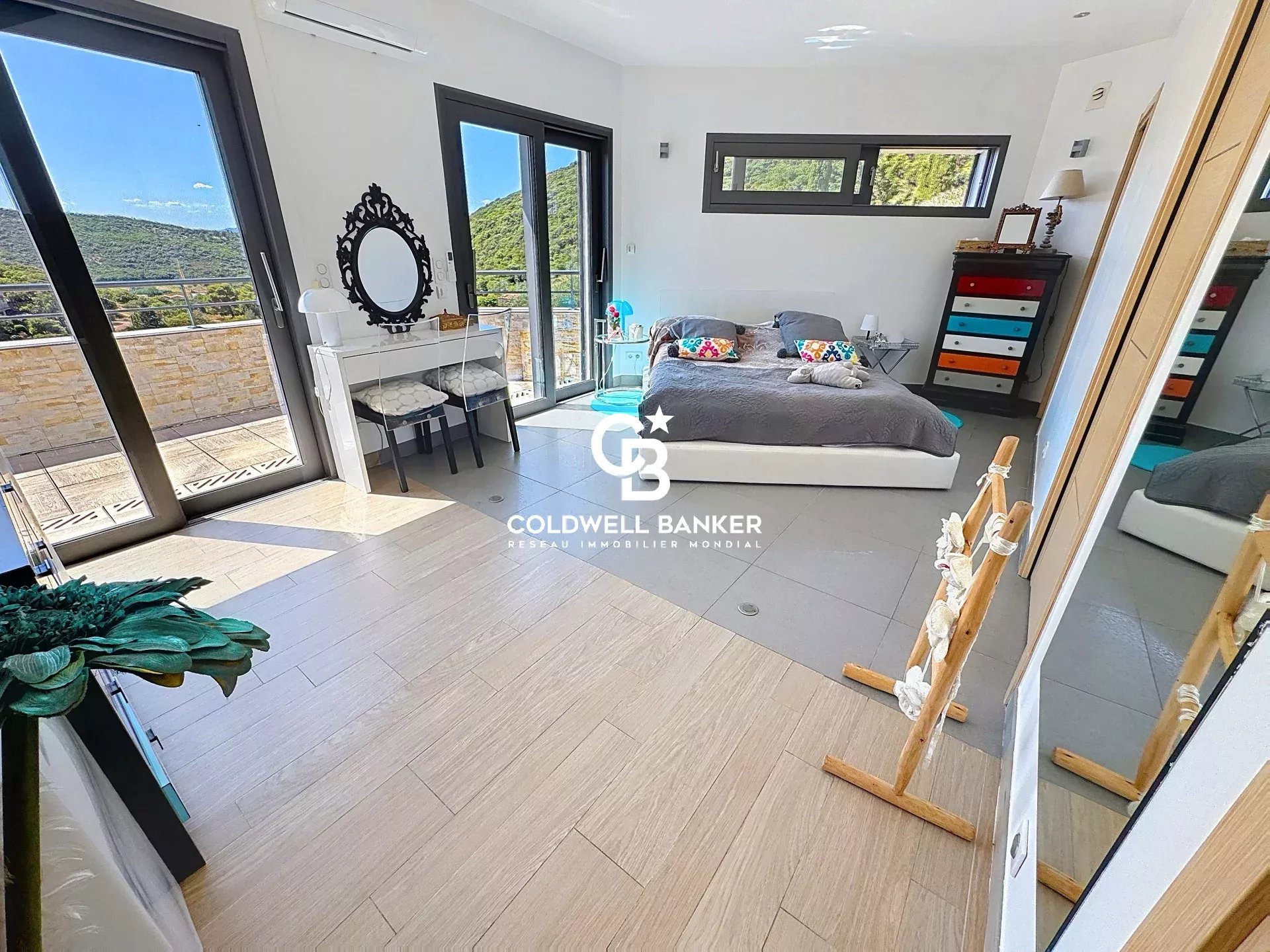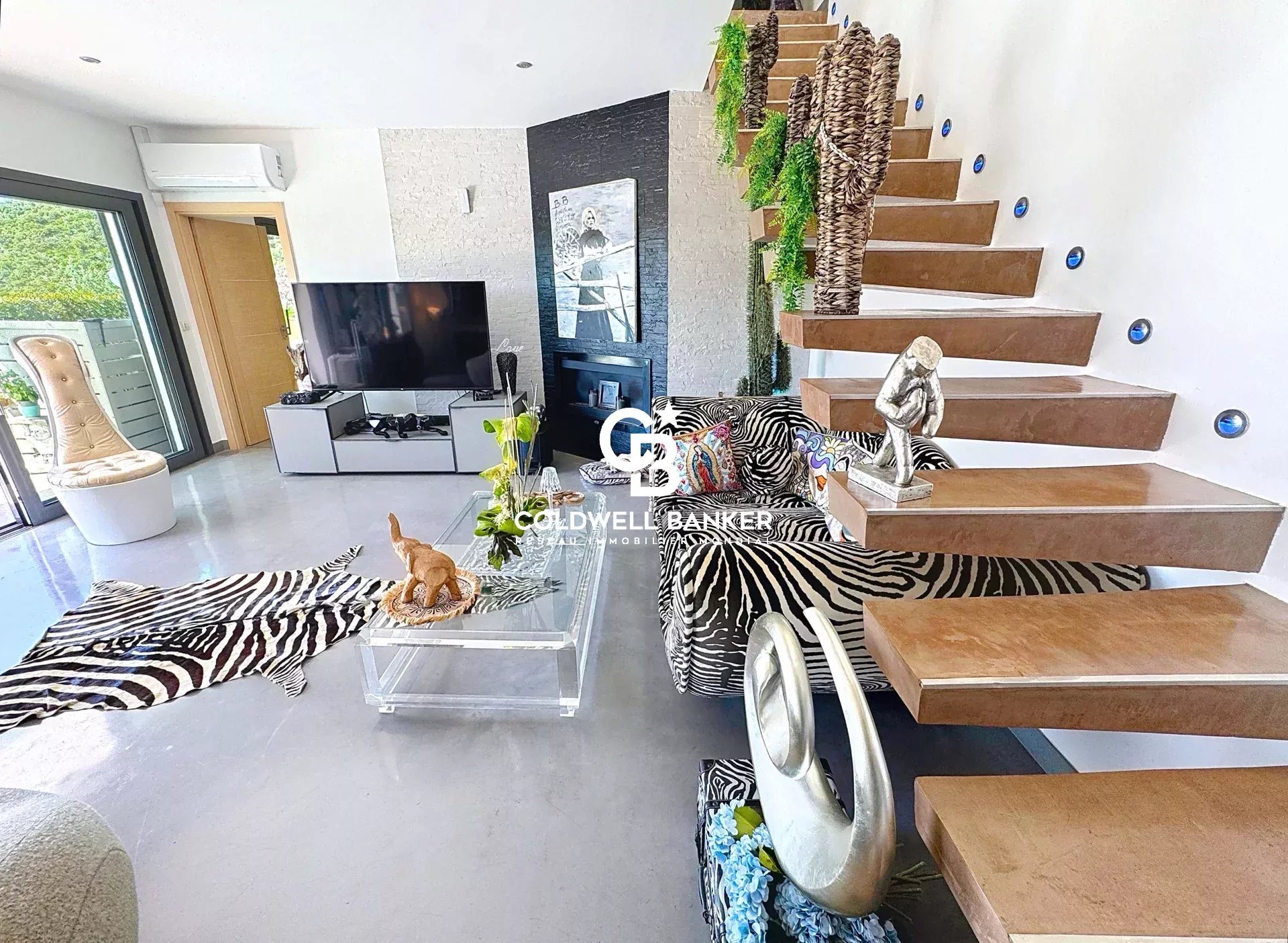 À quelques minutes des plages d’Agay, entre mer et roches rouges, cette propriété contemporaine d’exception s’élève en lisière du Massif de l’Esterel. Son architecture épouse avec finesse les codes intemporels du style “Art déco“ revisité, pour une réalisation élégante. Art de vivre raffiné et esthétisme Édifiée en 2011 sur un terrain paysager de 800 m², cette villa déploie 160 m² habitables (191 m² au total) au sein d’un environnement paisible et préservé. Lignes pures, volumes ouverts, lumière omniprésente Une pièce de vie d’environ 60 m² s’ouvre sur une terrasse et un espace détente extérieur. Le séjour, sublimé par un aménagement spacieux évoque une mise en scène chaleureuse. Cheminée élégante et escalier flottant, suspendu et massif complète le décor. La cuisine ouverte, raffinée allie design et convivialité : îlot central, mobilier sans poignées, équipements haut de gamme intégrée. Un lieu de partage aussi fonctionnel que sophistiqué. Espace nuit : sérénité & intimité : • Une suite parentale de plain-pied, avec dressing et salle de bains complète , offre un confort absolu. • À l’étage, deux belles chambres avec leurs salles d’eau privatives s’ouvrent sur une vaste terrasse agrémentée d’un jacuzzi et d’un salon de détente au panorama saisissant : Vue spectaculaire sur le massif de l’Esterel avec aperçu mer, la promesse d’un cadre de vie exceptionnel. Design intérieur : une signature affirmée : • Harmonies de béton brut, verre, bois clair, acier et pierre naturelle • Tons chauds, ponctués d’accents pop art et vintage • Objets déco soigneusement choisis, plantes XXL, touches street art subtilement intégrées Une composition élégante entre matières nobles et modernité, où chaque détail raconte une histoire. Extérieurs en continuité parfaite avec l’intérieur: Les lignes épurées de la façade dialoguent harmonieusement avec la nature environnante, dans une connexion constante à la lumière et à l’environnement. La villa invite à la détente avec un extérieur paysager structuré autour d’une grande terrasse de 200 m², une piscine neuve (5 x 8 m), solarium, lit baldaquin, canapés lounge... Prestations haut de gamme : • Puits canadien pour une climatisation naturelle et tempérée • Plancher chauffant, climatisation intégrée, triple vitrage anti-effraction • Domotique, aspiration centralisée, éclairage indirect, ventilation naturelle • Huisseries premium, performance énergétique élevée, panneaux photovoltaïques Un garage, des places de parking et possibilité d’aménager une quatrième chambre complètent l’offre Une villa d’exception entre mer, nature et design: À la croisée de l’architecture contemporaine et de l’esprit « Art déco » réinventé, cette propriété propose une lecture inspirée : durabilité, ergonomie, esthétisme, et intelligence de l’espace. Proximité des plages, des commodités et d’un environnement naturel classé, pour une invitation à vivre avec style et élégance, au cœur d’un site exceptionnel. Plaquette de présentation et descriptif détaillé sur demande contact: Williams AUREILLE +33 (0) 682 822 539 - williams.aureille@coldwellbanker.fr