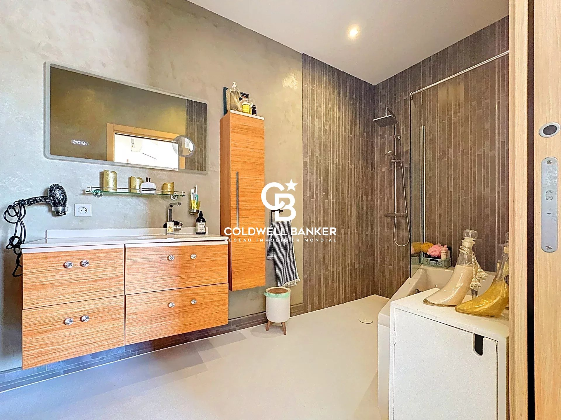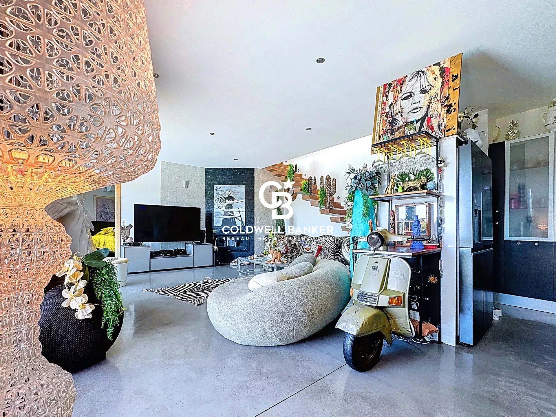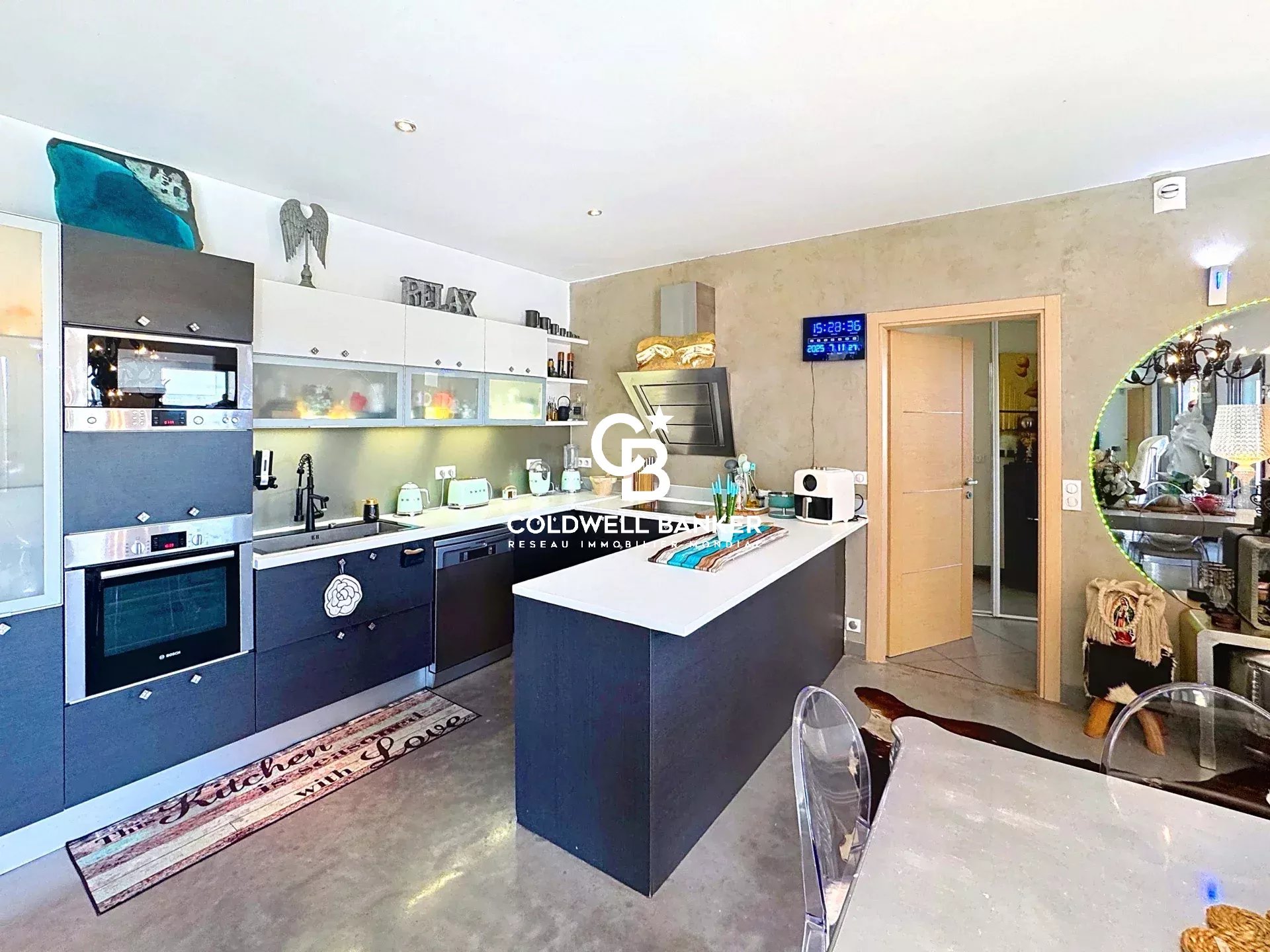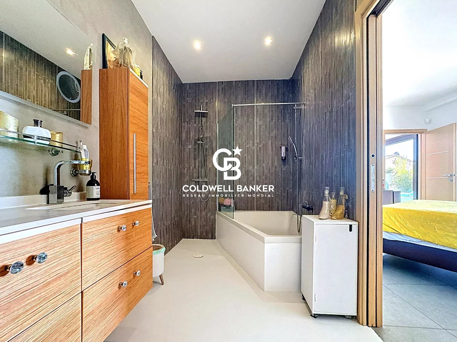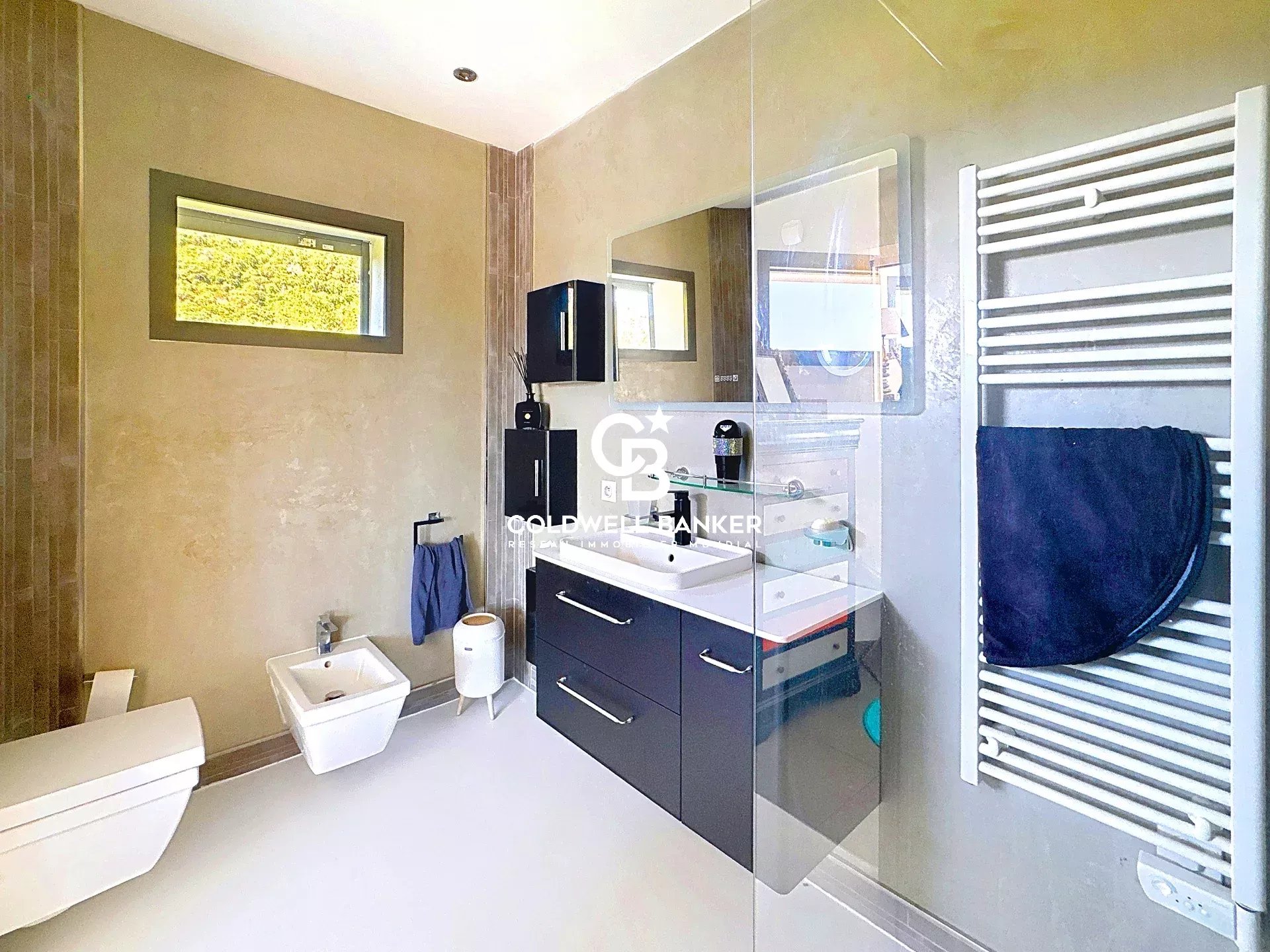 À quelques minutes des plages d’Agay, entre mer et roches rouges, cette propriété contemporaine d’exception s’élève en lisière du Massif de l’Esterel. Son architecture épouse avec finesse les codes intemporels du style “Art déco“ revisité, pour une réalisation élégante. Art de vivre raffiné et esthétisme Édifiée en 2011 sur un terrain paysager de 800 m², cette villa déploie 160 m² habitables (191 m² au total) au sein d’un environnement paisible et préservé. Lignes pures, volumes ouverts, lumière omniprésente Une pièce de vie d’environ 60 m² s’ouvre sur une terrasse et un espace détente extérieur. Le séjour, sublimé par un aménagement spacieux évoque une mise en scène chaleureuse. Cheminée élégante et escalier flottant, suspendu et massif complète le décor. La cuisine ouverte, raffinée allie design et convivialité : îlot central, mobilier sans poignées, équipements haut de gamme intégrée. Un lieu de partage aussi fonctionnel que sophistiqué. Espace nuit : sérénité & intimité : • Une suite parentale de plain-pied, avec dressing et salle de bains complète , offre un confort absolu. • À l’étage, deux belles chambres avec leurs salles d’eau privatives s’ouvrent sur une vaste terrasse agrémentée d’un jacuzzi et d’un salon de détente au panorama saisissant : Vue spectaculaire sur le massif de l’Esterel avec aperçu mer, la promesse d’un cadre de vie exceptionnel. Design intérieur : une signature affirmée : • Harmonies de béton brut, verre, bois clair, acier et pierre naturelle • Tons chauds, ponctués d’accents pop art et vintage • Objets déco soigneusement choisis, plantes XXL, touches street art subtilement intégrées Une composition élégante entre matières nobles et modernité, où chaque détail raconte une histoire. Extérieurs en continuité parfaite avec l’intérieur: Les lignes épurées de la façade dialoguent harmonieusement avec la nature environnante, dans une connexion constante à la lumière et à l’environnement. La villa invite à la détente avec un extérieur paysager structuré autour d’une grande terrasse de 200 m², une piscine neuve (5 x 8 m), solarium, lit baldaquin, canapés lounge... Prestations haut de gamme : • Puits canadien pour une climatisation naturelle et tempérée • Plancher chauffant, climatisation intégrée, triple vitrage anti-effraction • Domotique, aspiration centralisée, éclairage indirect, ventilation naturelle • Huisseries premium, performance énergétique élevée, panneaux photovoltaïques Un garage, des places de parking et possibilité d’aménager une quatrième chambre complètent l’offre Une villa d’exception entre mer, nature et design: À la croisée de l’architecture contemporaine et de l’esprit « Art déco » réinventé, cette propriété propose une lecture inspirée : durabilité, ergonomie, esthétisme, et intelligence de l’espace. Proximité des plages, des commodités et d’un environnement naturel classé, pour une invitation à vivre avec style et élégance, au cœur d’un site exceptionnel. Plaquette de présentation et descriptif détaillé sur demande contact: Williams AUREILLE +33 (0) 682 822 539 - williams.aureille@coldwellbanker.fr