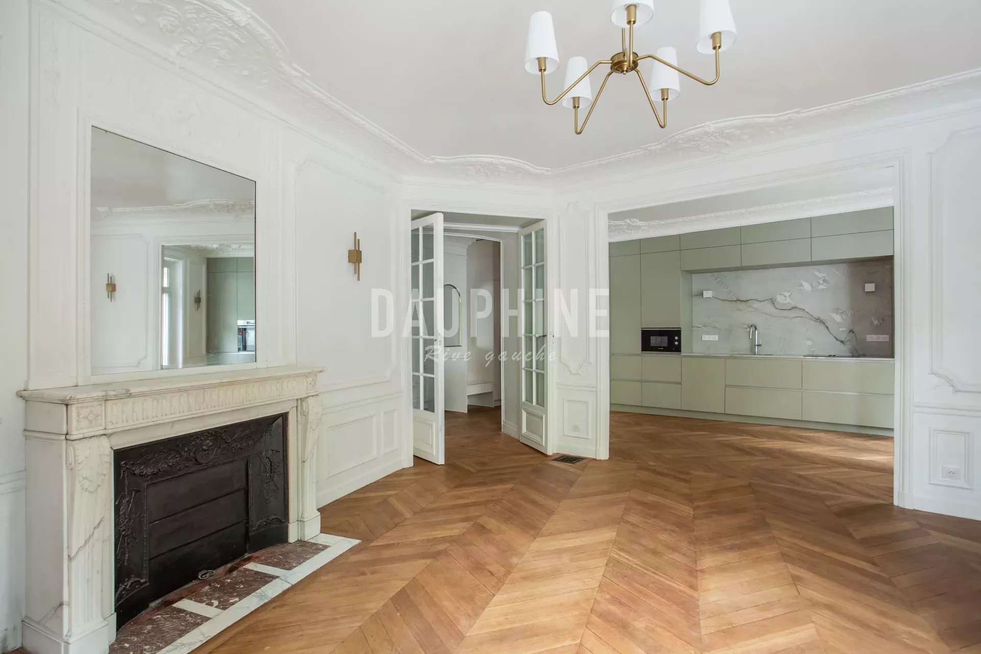 Nous vous proposons à la vente au sein d'un bel immeuble Haussamnnien, proche de la place de Breteuil, un magnifique appartement de 131m2 Carrez, totalement rénové avec des matériaux de qualité. Ce bien familial, situé en RDC surélevé d'angle, sur cour et rue, bénéficie d'un bon plan, d'une exposition Sud /Sud-Ouest, ainsi qu'une belle hauteur sous plafond. Il est composé d'une grande galerie, d'un salon, salle à manger avec cuisine dînatoire entièrement aménagée et équipée, de quatre chambres, d'une salle de bain avec toilettes, d'une salle d'eau et d'un deuxième WC. Lumineux, il a conservé le charme de l'ancien (parquet, moulures, cheminées). Une cave complète ce bien ainsi qu'une pièce supplémentaire de 7,51m2 en dernier étage de copropriété avec vue dégagée, accessible par ascenseur, disposant d'un point d'eau et d'une douche. Gardien à demeure. Métros : Ségur, Sèvres Lecourbe/Cambronne, Duroc.
