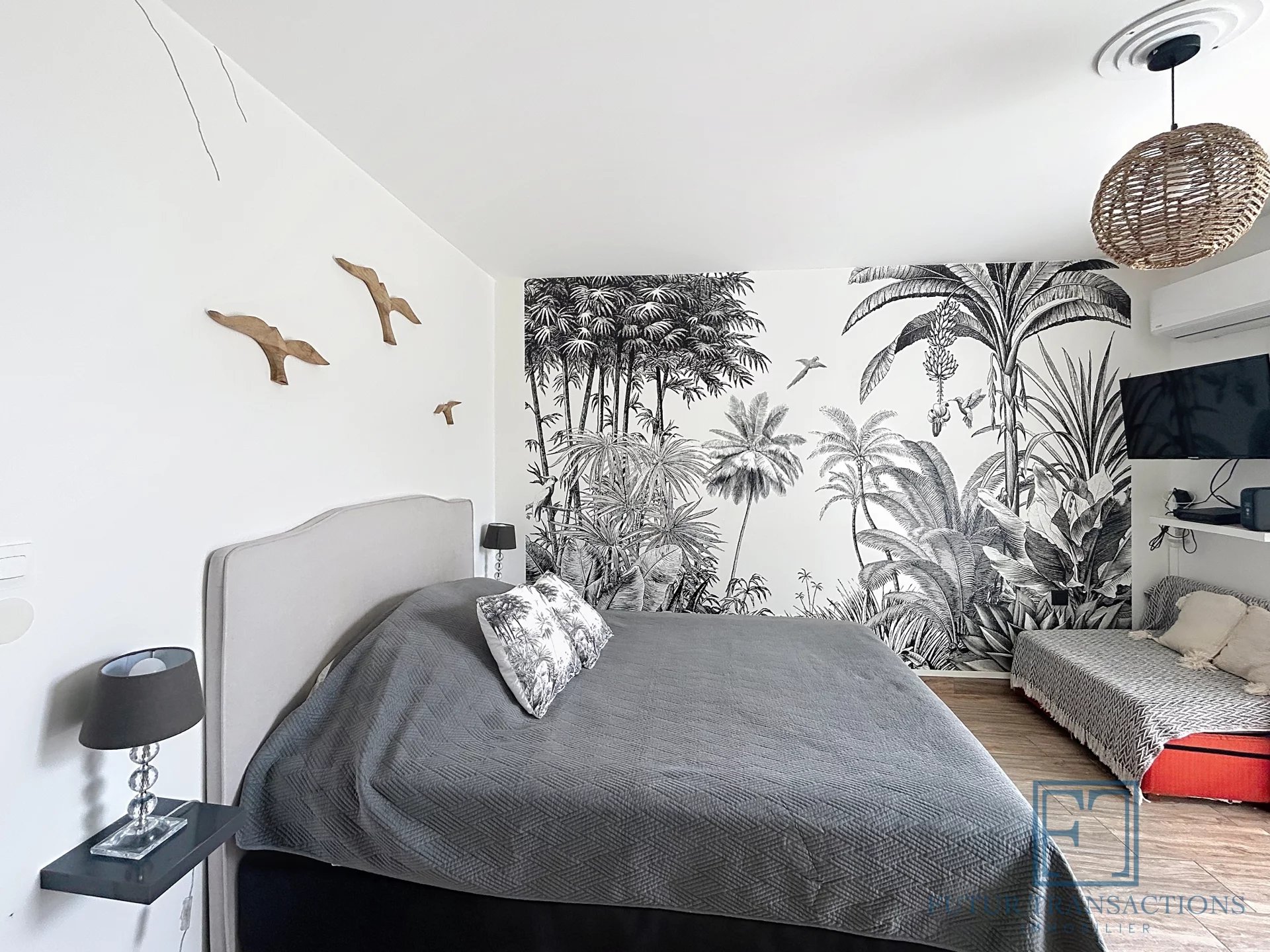Vous profiterez d’une vaste pièce de vie climatisée avec kitchenette intégrée, un coin nuit confortable, un espace bureau/salon TV, ainsi qu’une salle d’eau moderne avec douche, toilettes et rangements astucieux. Vendu entièrement meublé et équipé, il est prêt à vivre ou à louer immédiatement – une solution clé en main.