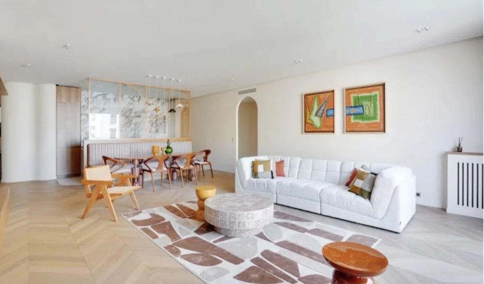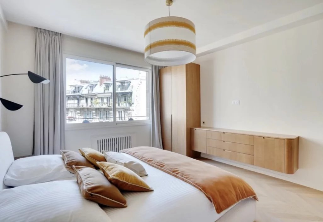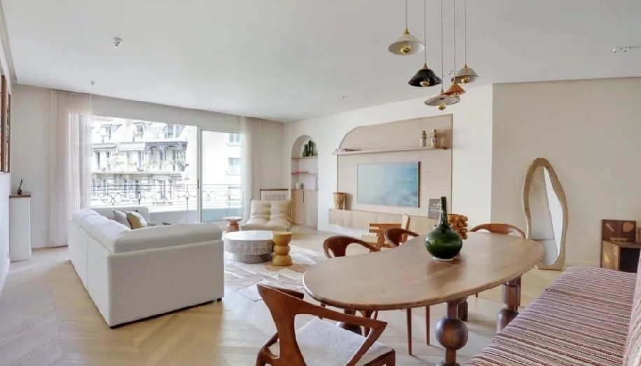 Paris 16-Dans un élégant immeuble en pierre de taille des années 50, un somptueux appartement refait à neuf avec des matériaux haut de gamme, alliant raffinement et confort moderne.