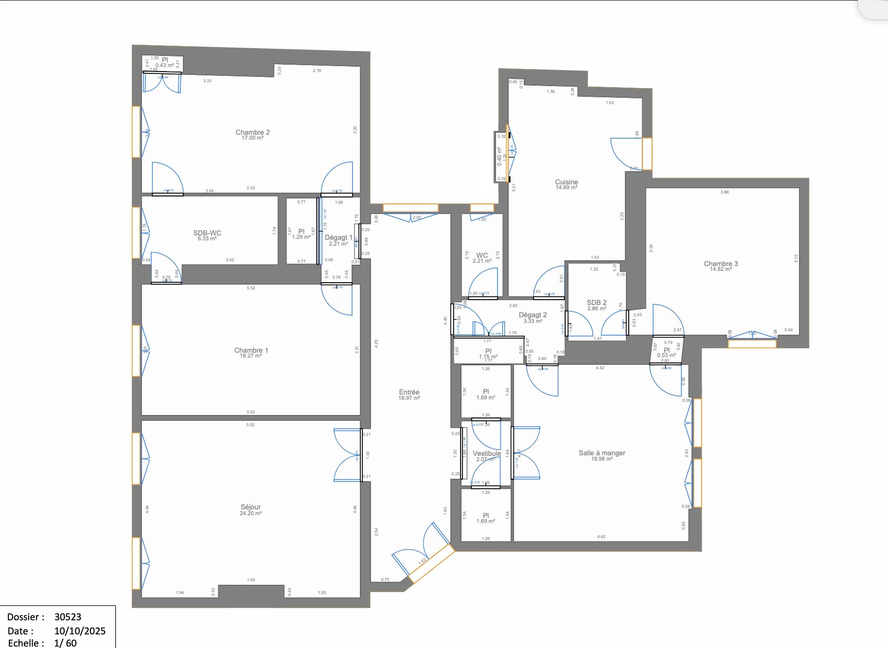 Il se compose d'une galerie d'entrée, d'un salon avec une vue dégagée, une salle à manger, une cuisine dînatoire séparée, de 3 chambres, 2 salles de bains ( 3 eme possible) , 2 toilettes.