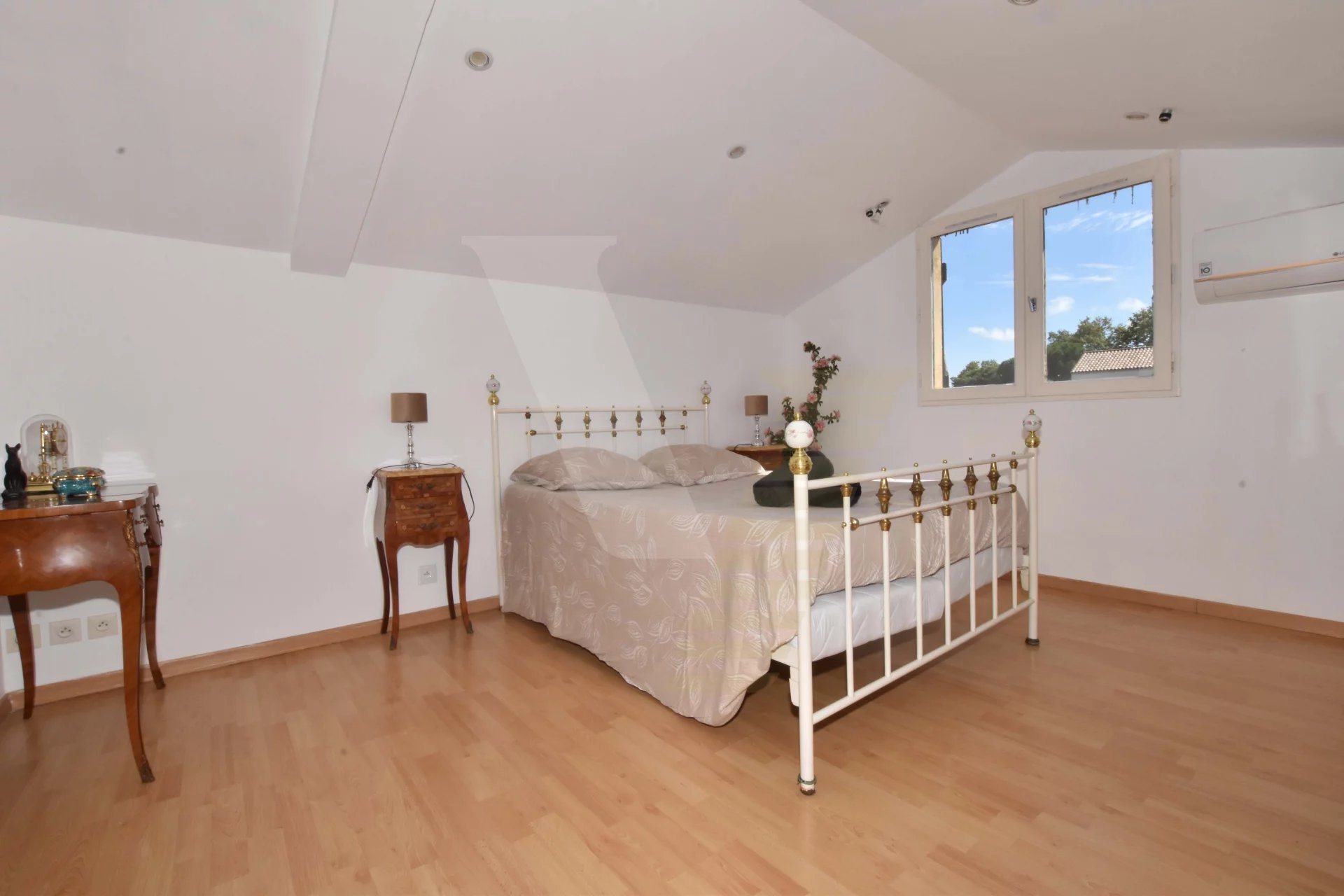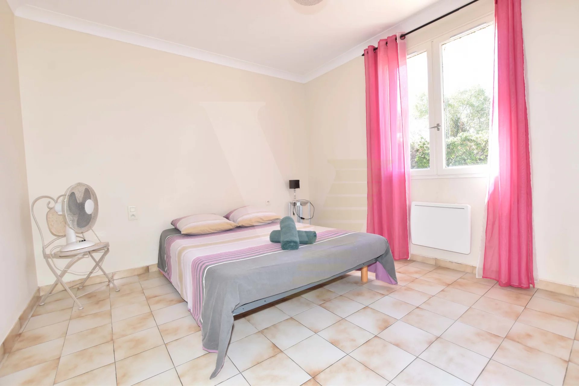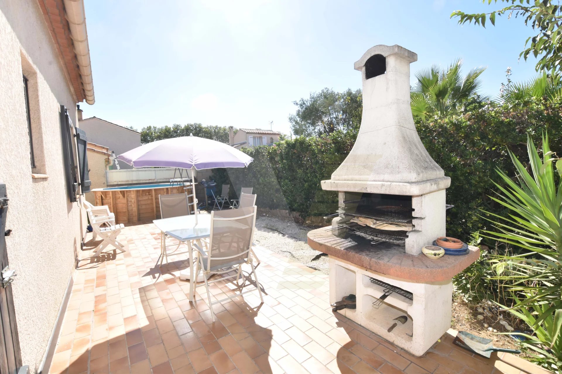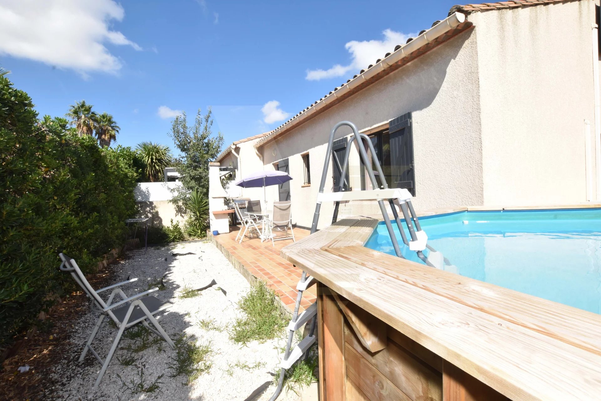 A louer, à Villeneuve les Béziers, maison 3 faces meublée d'environ 96 m2, grand jardin avec une piscine hors sol. Elle est composé d’une entrée desservant espace salon/ séjour, d’une cuisine équipée, une salle d’eau, un WC et une chambre. A l’étage vous découvrirez, deux chambre, une salle d’eau et WC. Le bien dispose d’un garage fermé, avec possibilité de stationner également devant le garage.