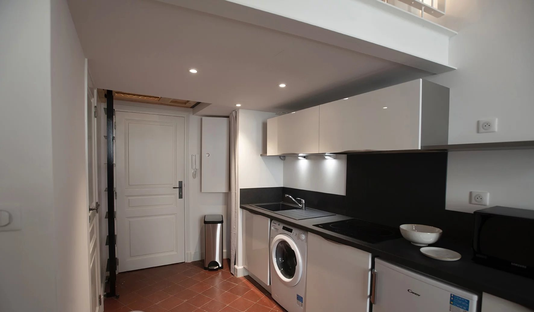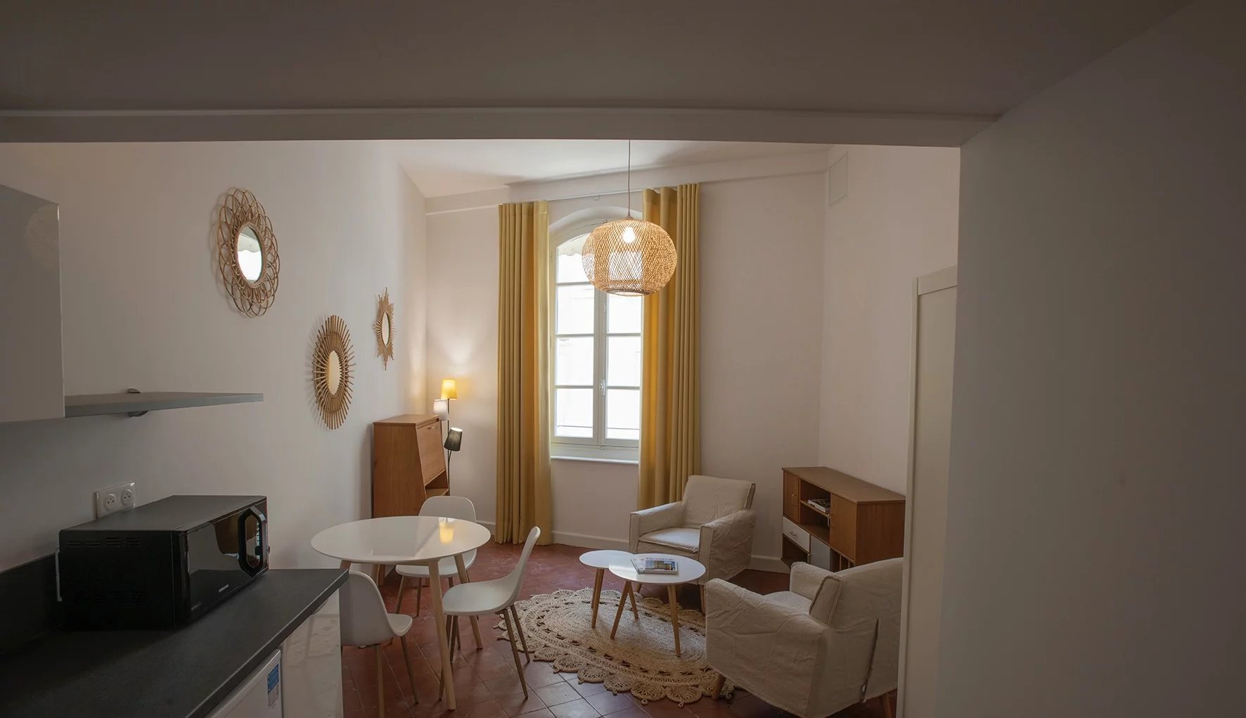 A louer, Arles, beau studio de 26 m2 rénové et climatisé au 1er étage d'un immeuble. Il vous séduira par sa décoration faite avec gout et soin, ce logement est lumineux et fonctionnel. Une cuisine équipée et aménagée donne sur un séjour, une salle d'eau avec wc et en mezzanine un espace nuit. Idéalement situé rue Voltaire proche de la gare et des commodités du centre ville.