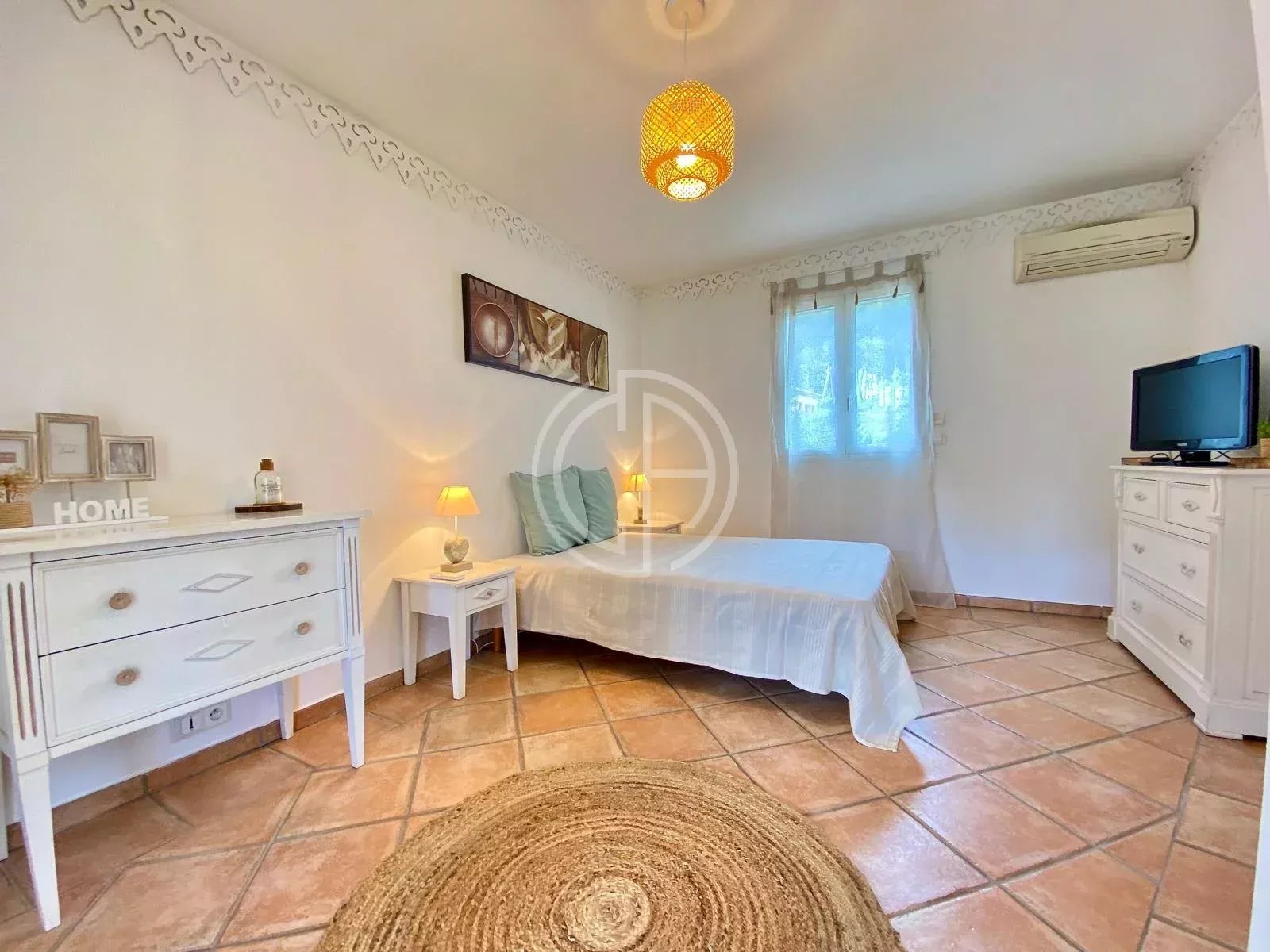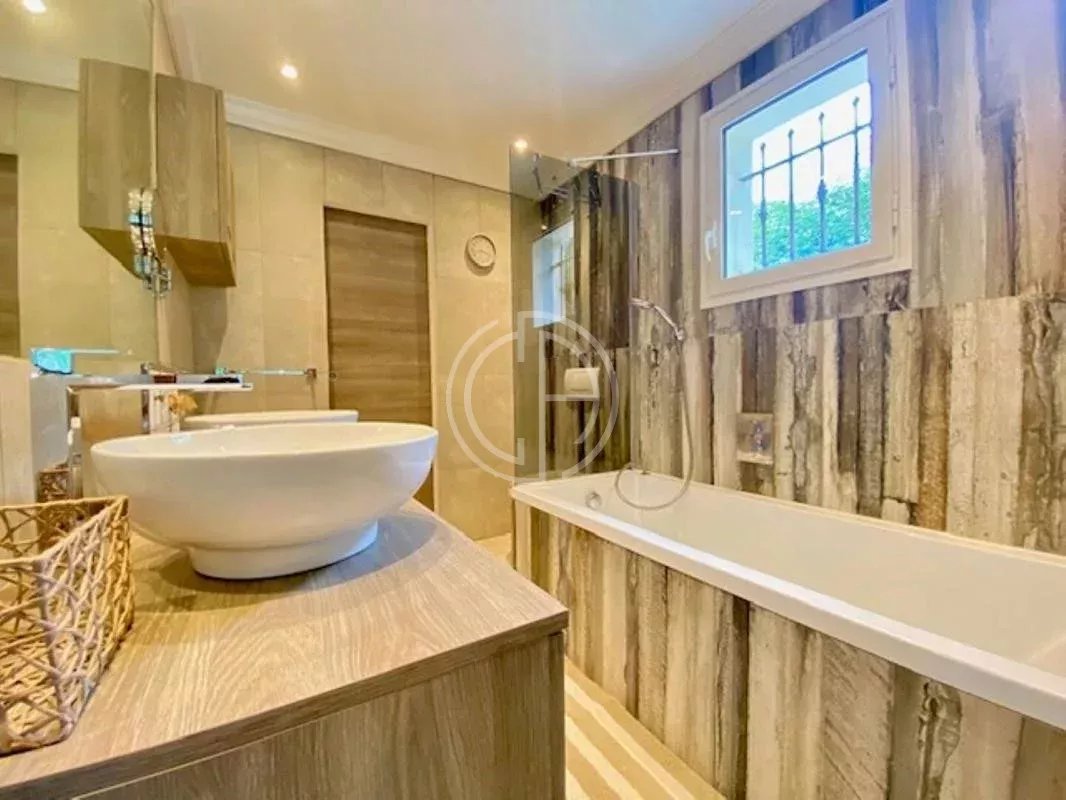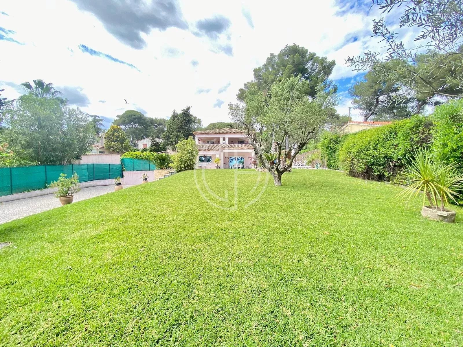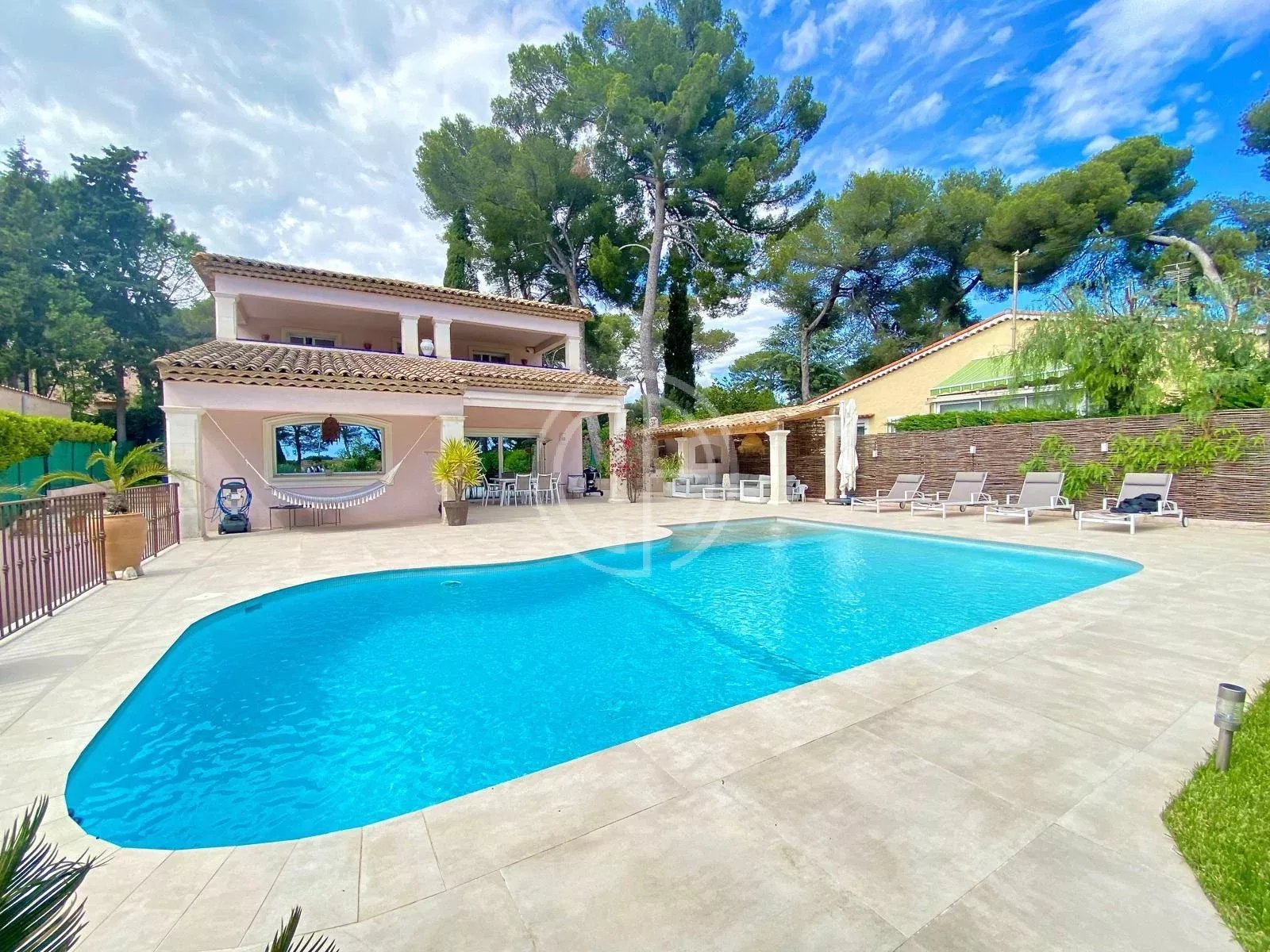 LE CANNET - Au coeur d'une pinède, au calme, belle villa provençale en parfait état. Plein Sud, Sise sur un terrain plat de 1100m2, elle se compose de plain pied d'un séjour/salle à manger de 44 m² ouvrant par de grandes baies vitrées sur une spacieuse terrasse, d'une cuisine équipée, et toilette invités. Pour la partie nuit: une chambre de Maître avec placards et une salle de bains complète, grand dressing (pouvant être transformé en chambre), salle d'eau. A l'étage, deux chambres avec placard, salle de douche, toilette, toutes deux ouvrent sur une terrasse d'environ 30 m². Cette villa offre également une piscine au sel chauffée, et son pool-house avec barbecue. Un grand garage en sous-sol de 135 m² et nombreux stationnements.` Pompe à chaleur (2024), cumulus thermostatique, baies à glandage dans toutes les pièces, arrosage automatique... Facile à vivre à pieds des commerces. Les informations sur les risques auxquels ce bien est exposé sont disponibles sur le site www.georisques.gouv.fr