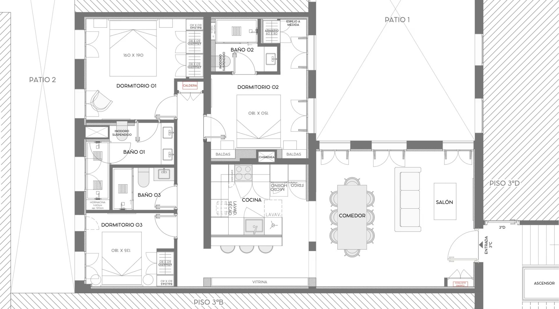 Located on the third floor of a classic 1900 building, this interior apartment spans a cadastral area of 111 m² and offers versatile space with 3 bedrooms and 3 bathrooms. The property is ready to be renovated to taste and includes accessible features, an elevator, natural gas heating, ducted air conditioning, and a concierge service.