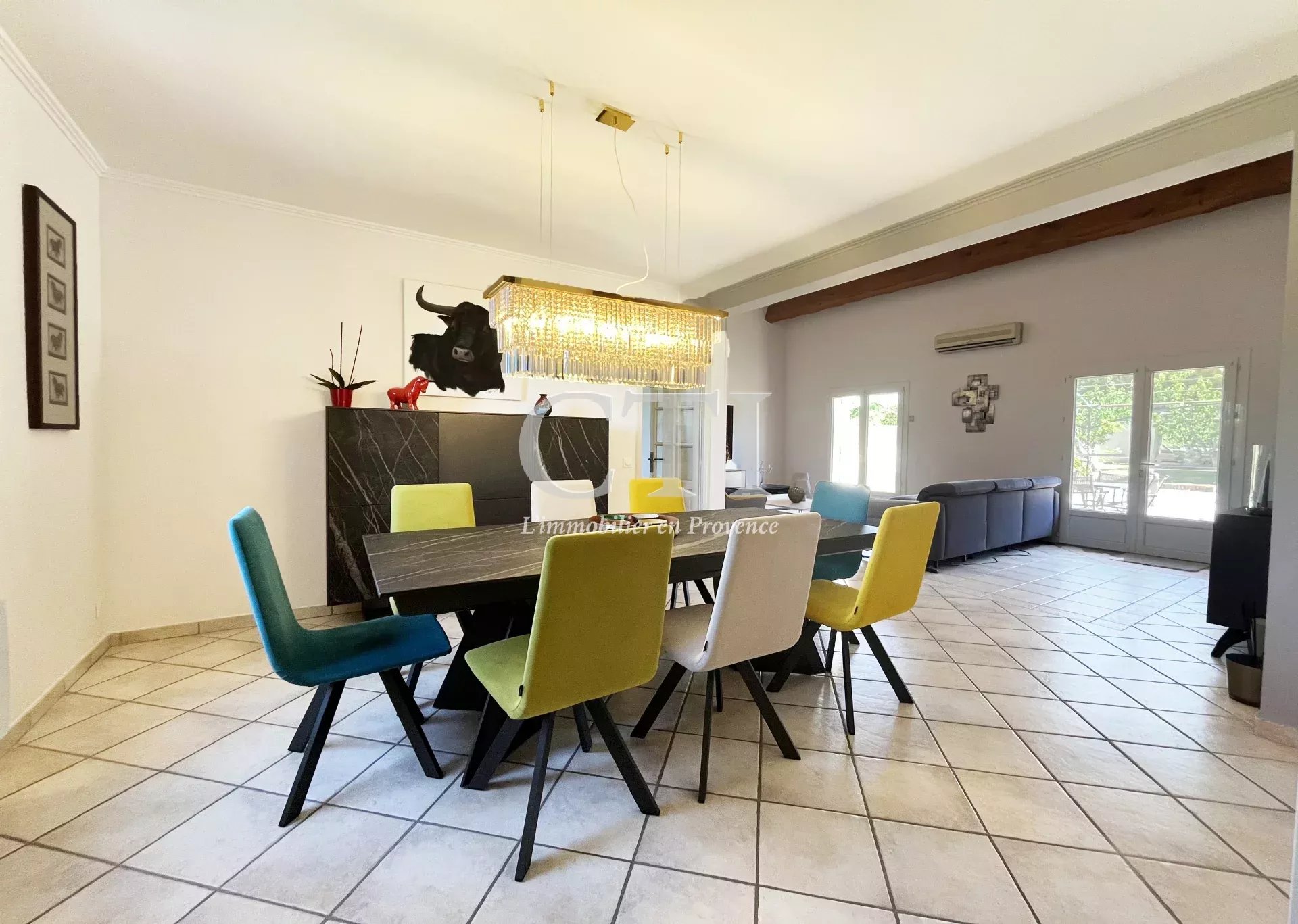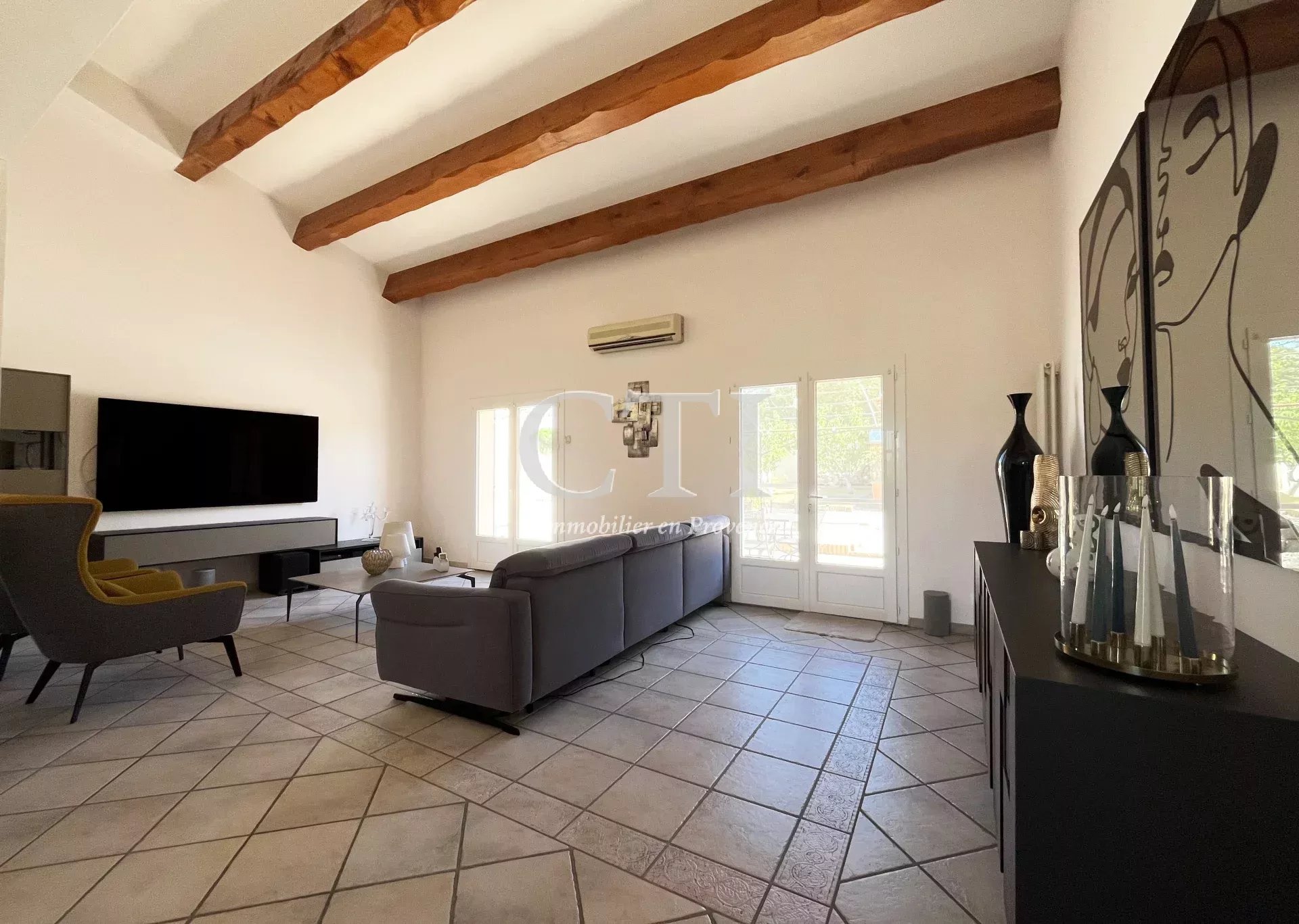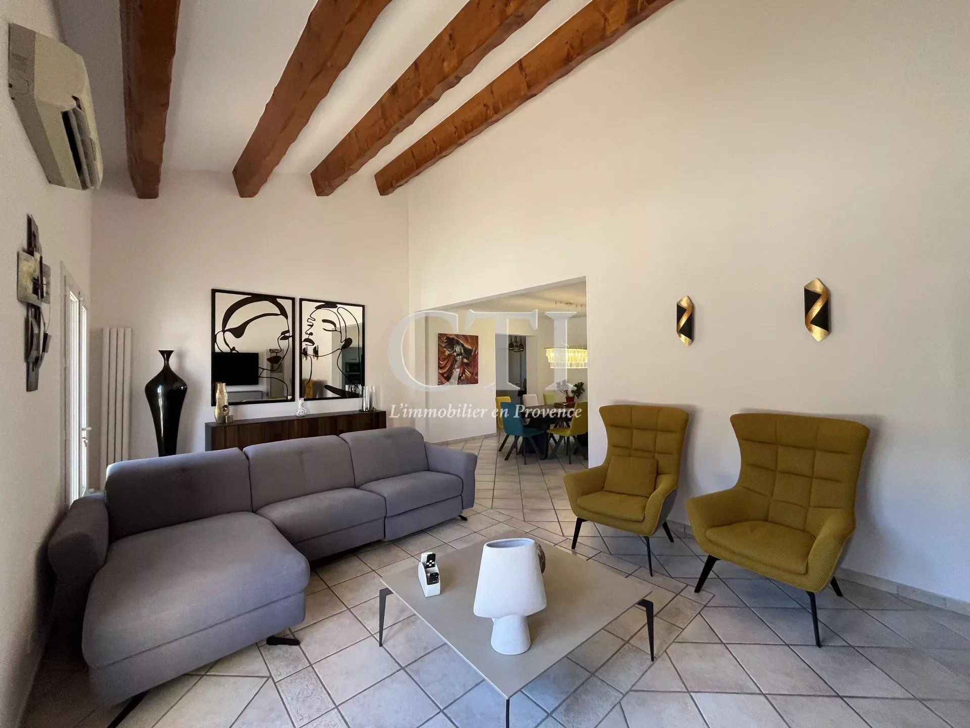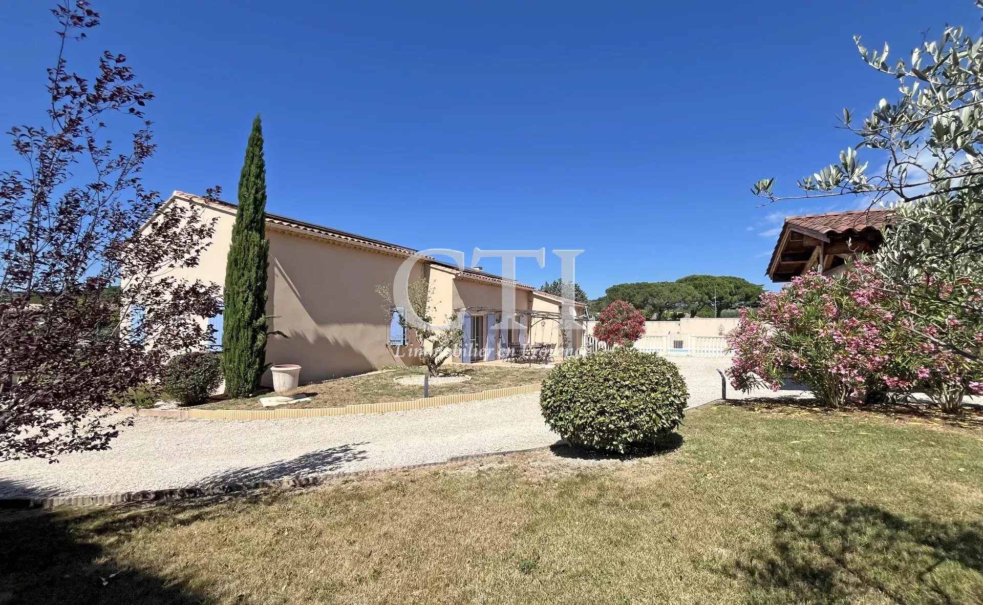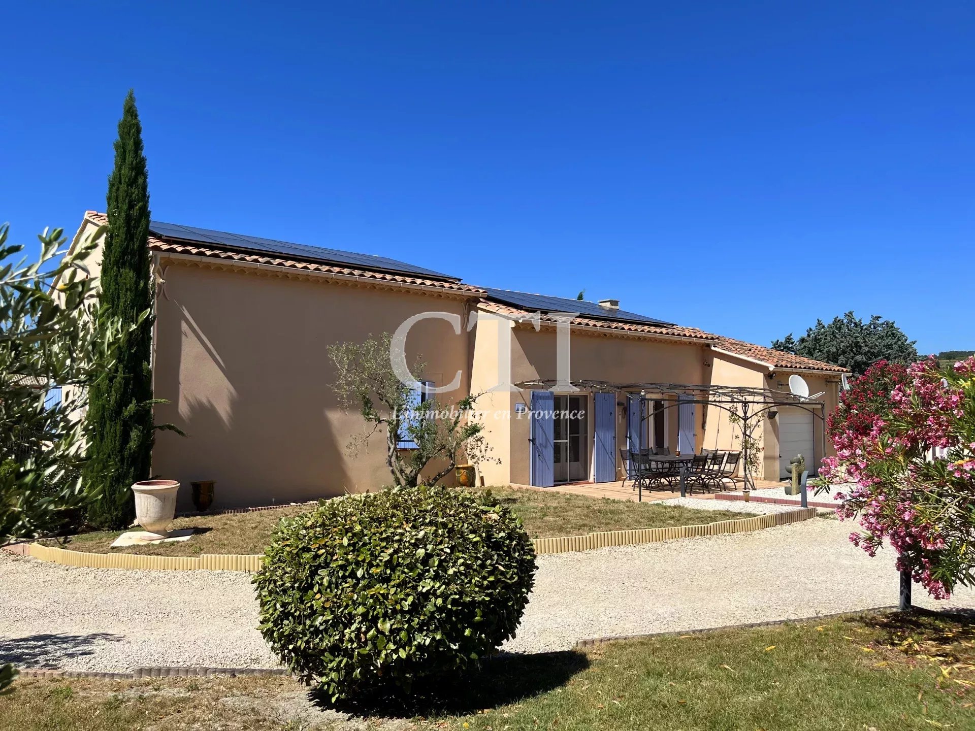 Superbe villa provençale de plain-pied, offrant une surface habitable de 120 m² aux prestations soignées. Vous serez séduits par sa grande pièce de vie de 43 m², baignée de lumière grâce à son plafond cathédrale, et ouvrant sur une agréable terrasse orientée plein Sud.
