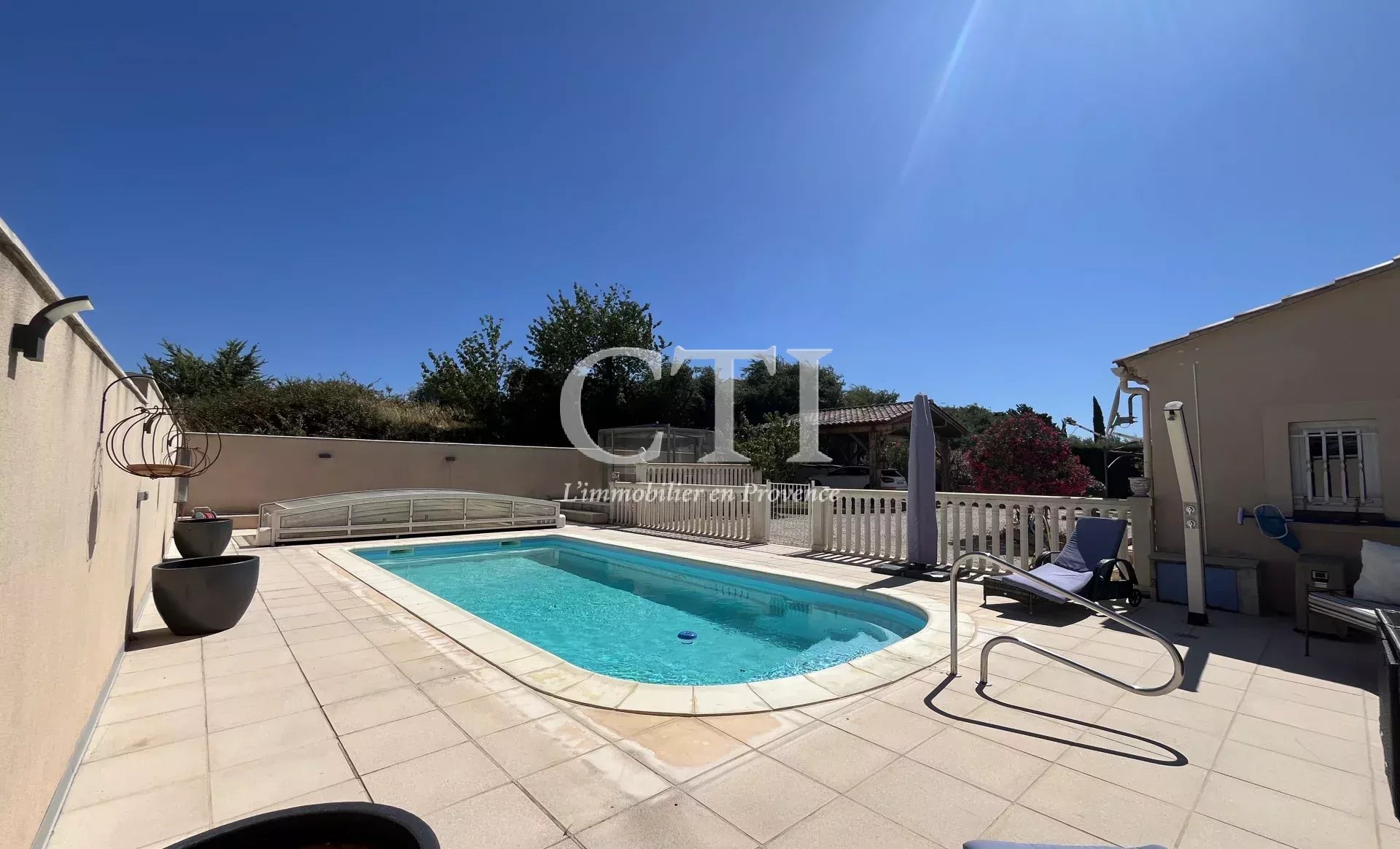 Le jardin de 1 503 m², véritable havre de paix, a été aménagé avec goût autour de massifs de plantes méditerranéennes, créant une ambiance bucolique et apaisante. La piscine sécurisée (8 x 4 m), entourée de belles plages, invite à la détente sous le soleil de Provence. Une cuisine d’été ainsi qu’une salle d’eau extérieure viennent parfaire ce cadre de vie idéal pour les beaux jours.