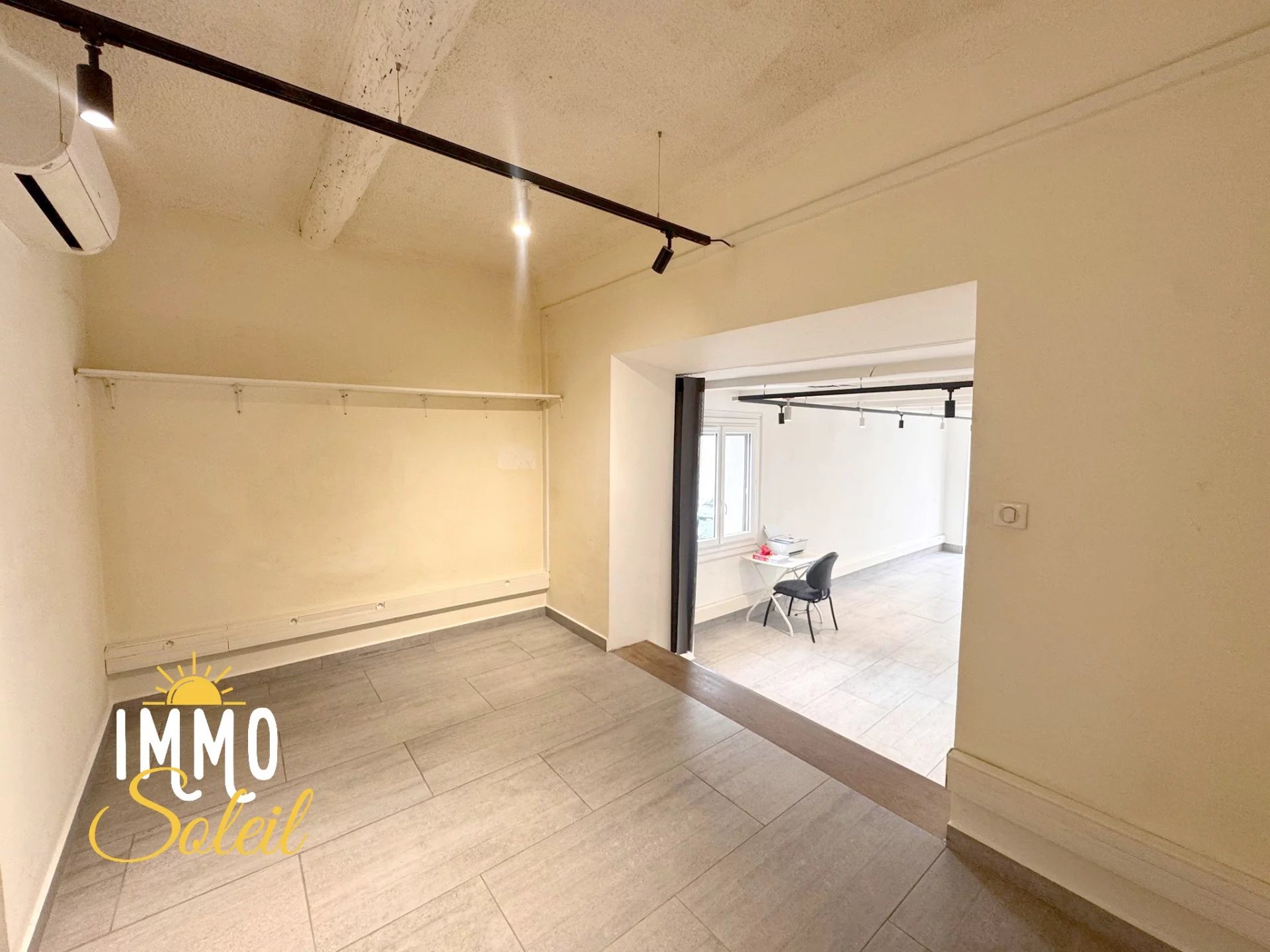 EN EXCLUSIVITÉ Idéalement situé au cœur du centre ville Local commercial disponible début octobre. Celui-ci comprend une pièce de surface de vente, un toilette et un bureau totalisant 45 m² de surface. Vitrine donnant sur rue très passante - large trottoir - Parking public à proximité Prestations neuves. Activité ou commerce de bouche avec ou sans fabrication sur place interdit. Conditions financières : Loyer mensuel : 1095 € Charges mensuelles : 60 € (hors consommation d'eau) Dépôt de garantie : 3000 € Pas de porte : 21 000 € Honoraires Agence part locataire : 1600 € ttc
