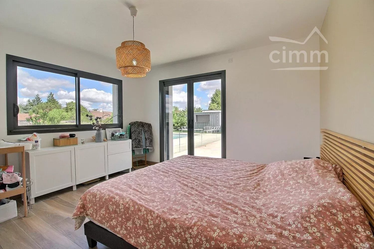 Toujours de plain-pied une autre grande chambre de presque 25m² avec de belles ouvertures, vue piscine, avec une salle d'eau et un WC, puis une autre chambre, une buanderie très fonctionnelle, un WC indépendant et un local technique.