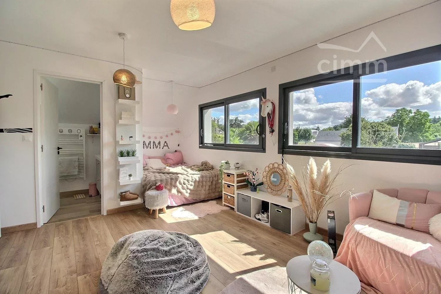 A l'étage, un palier dessert 2 belles chambres avec chacune sa salle d'eau. Un WC indépendant.