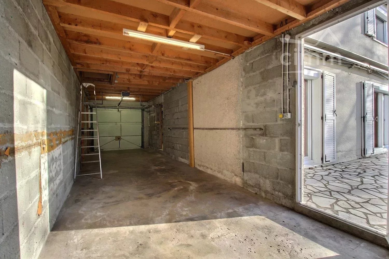 Vous trouverez également un WC indépendant, puis un premier garage d'environ 13m² avec coin buanderie, ainsi qu'un deuxième garage d'environ 30m² avec porte motorisée et mezzanine, afin d'optimiser le rangement.