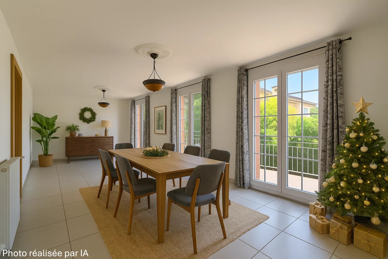 Dès l’entrée, un hall chaleureux avec boiseries en chêne vous guide vers un vaste salon-séjour traversant, baigné de lumière, avec cheminée, créant une atmosphère douce et conviviale. Il s’ouvre sur un grand balcon offrant une vue dégagée sur le jardin clos et arboré — parfait pour se détendre en toute tranquillité.