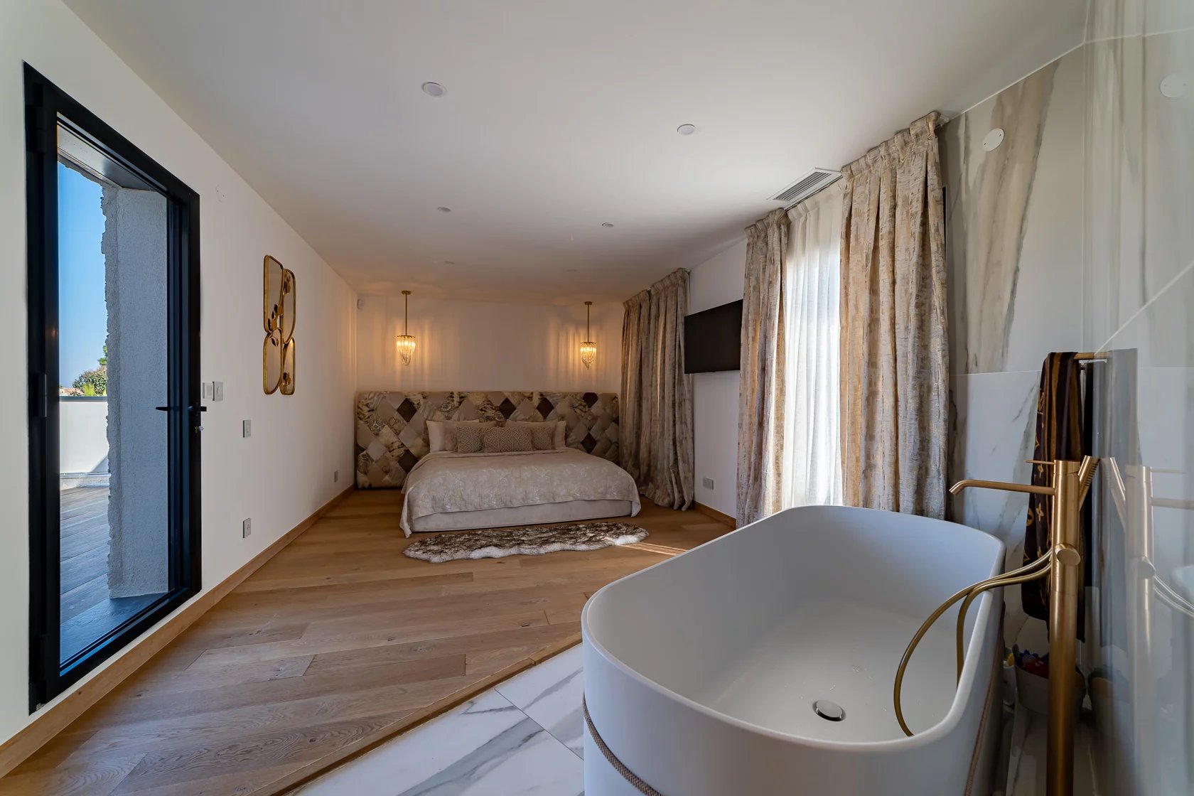 À l’étage, la villa propose 4 chambres, dont une suite parentale élégante avec salle d’eau et dressing, ainsi que 2 salles de bains supplémentaires.