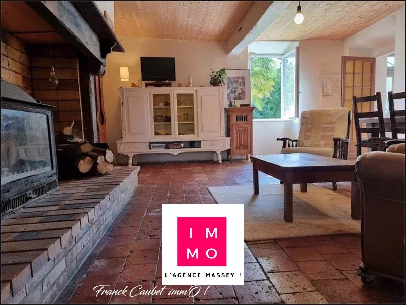 L'espace de vie est composé d'un grand salon en tomettes traditionnelles , poutres apparentes et une bibliothèque encastrée. Cet espace est éclairé par une fenêtre double vitrage plein Sud simple vantail ouverte sur jardin .