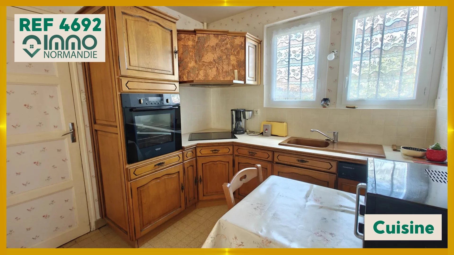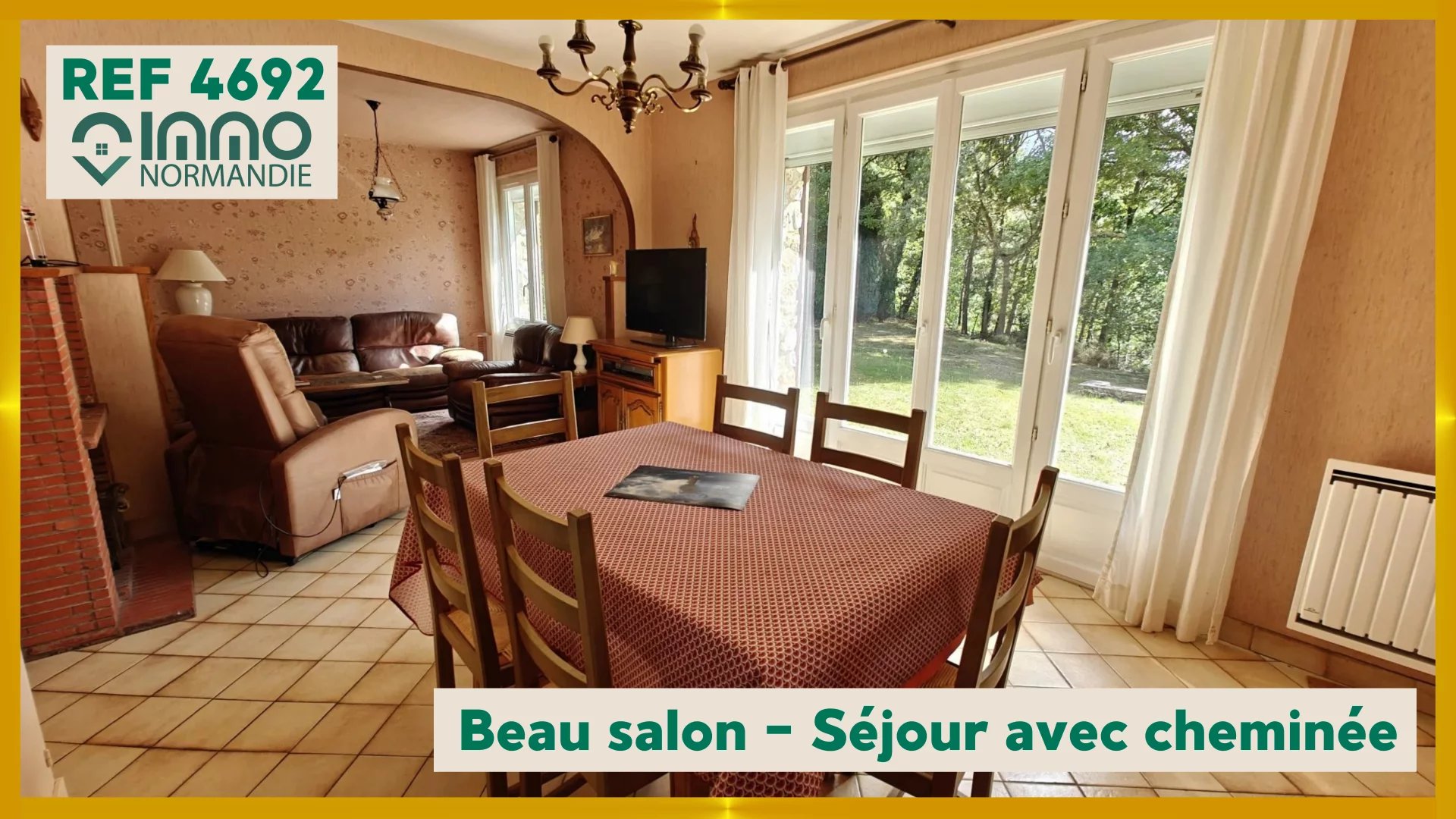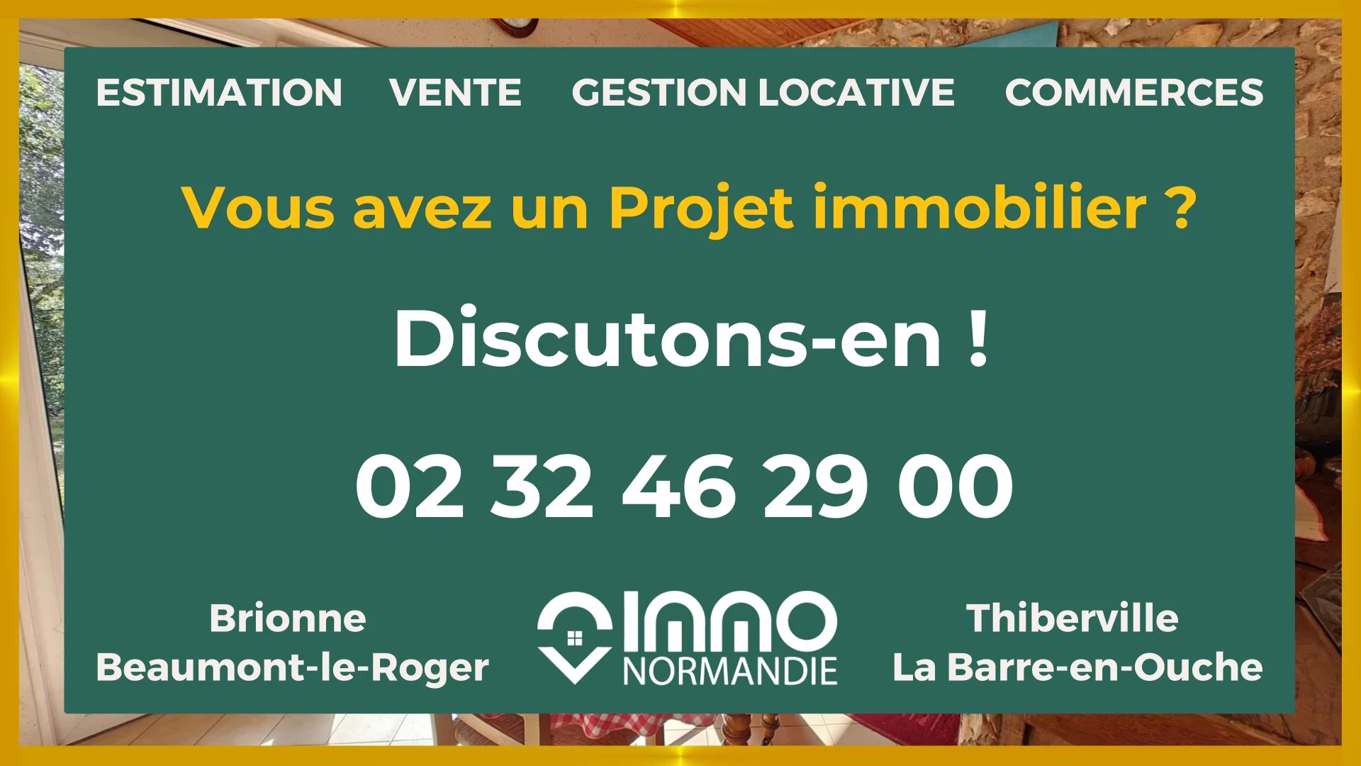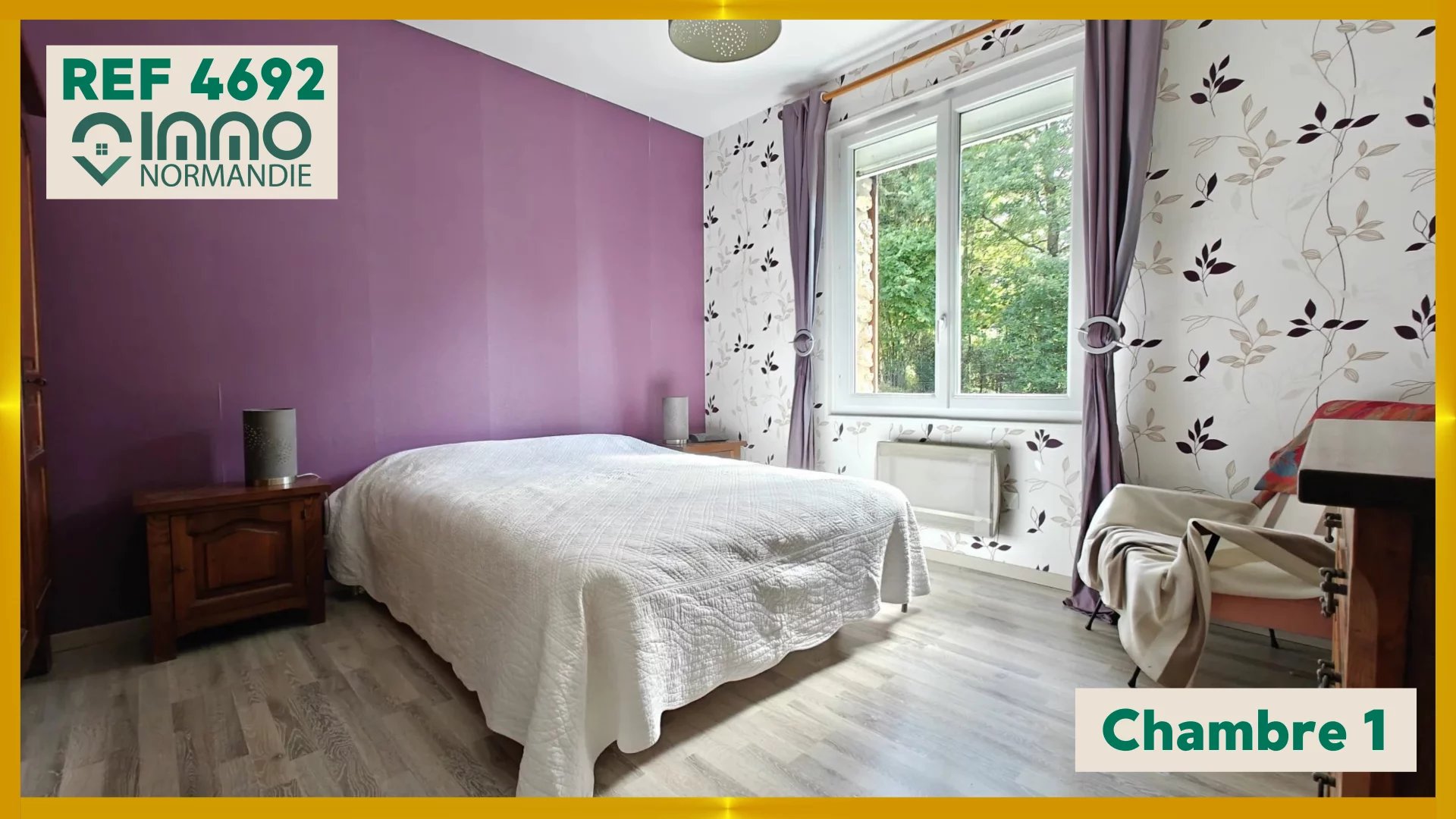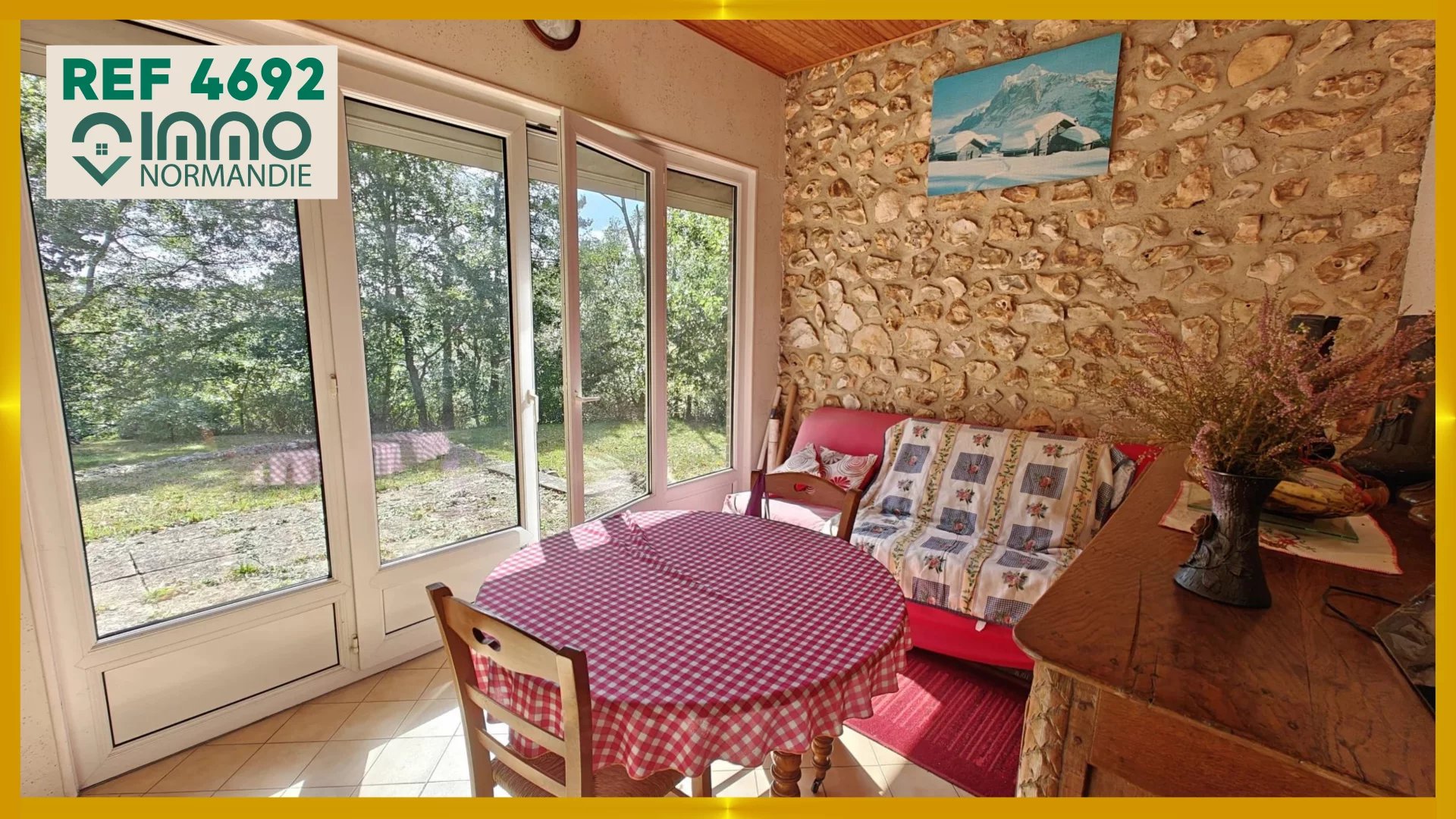 Maison de plain-pied proche du centre ville de Brionne à pied. venez découvrir une entrée offrant un beau salon/séjour avec cheminée, une véranda dans son prolongement. Une cuisine, 2 chambres, salle de douche, bureau et WC indépendant. Espace buanderie, cave, cellier et garage. Terrain de 1.600m² au bord de la foret. PVC double vitrage, volets roulants électriques, tout à l'égout, chauffage électrique.