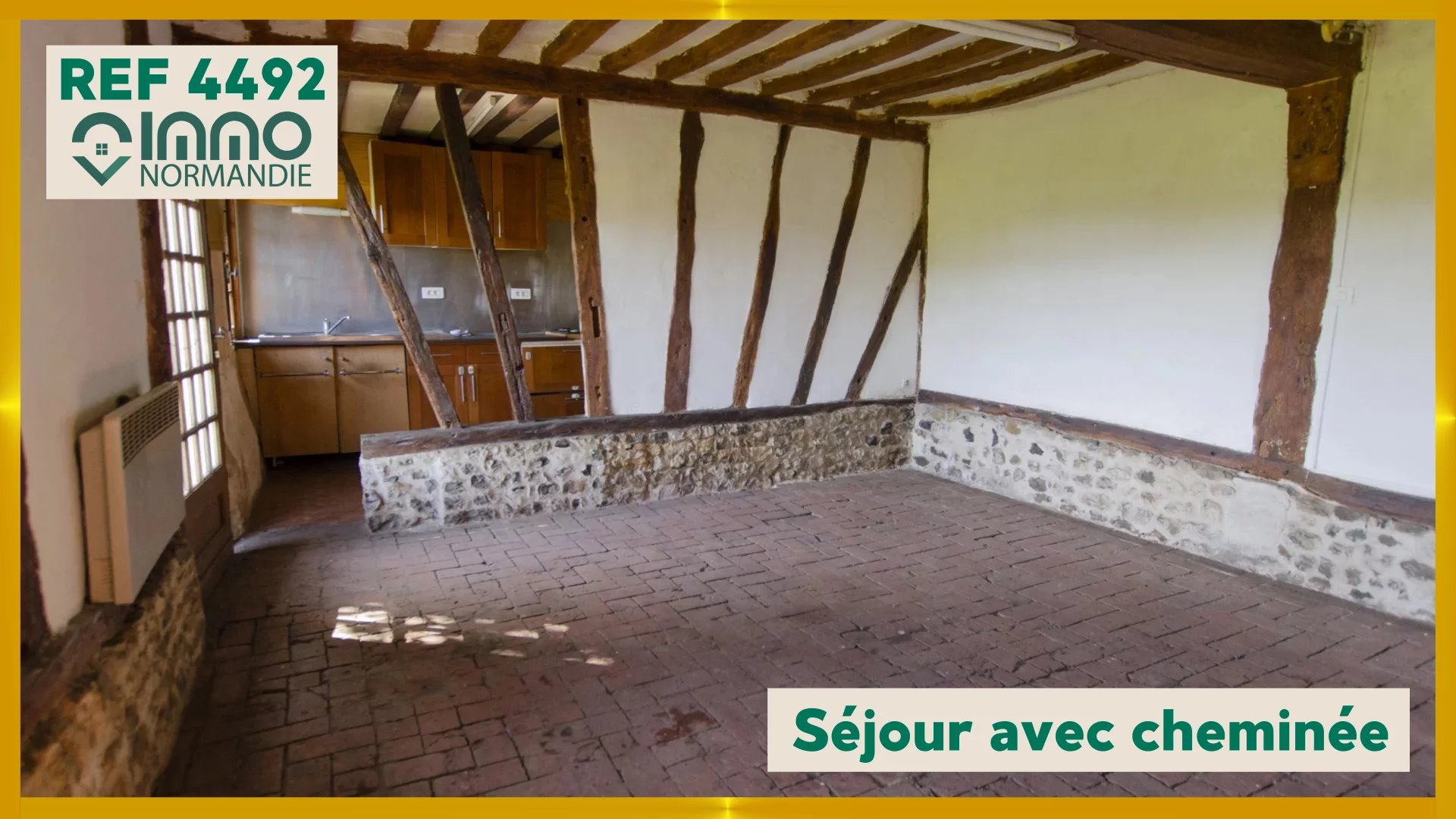 Chaumière Normande mitoyenne d'un côté avec belle vue sur la Valley de la Risle à Livet sur Authou. Au rez de chaussée : coin cuisine ouverte sur salle de séjour avec cheminée, salon, salle de bains, WC. A l'étage : bureau, deux chambres. Appentis Abri de jardin.
