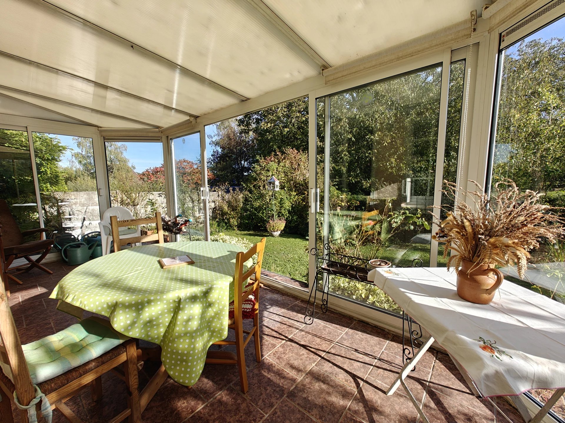 Maison proche du centre de Brionne et de ses commodités à environ 10min à pied. Venez découvrir le charme d'un cadre de campagne à la ville. Au rez-de-chaussée : entrée, salon/séjour avec cheminée donnant sur une belle véranda avec vue, une cuisine aménagée et équipée, un salle de douche d'appoint et WC. A l'étage, palier qui va desservir 3 chambres, une salle de bains. Sous-sol complet à usage de buanderie, chaufferie et garage. Chauffage par pompe à chaleur et fioul, PVC double vitrage, tout à l'égout. Terrain de 550m².