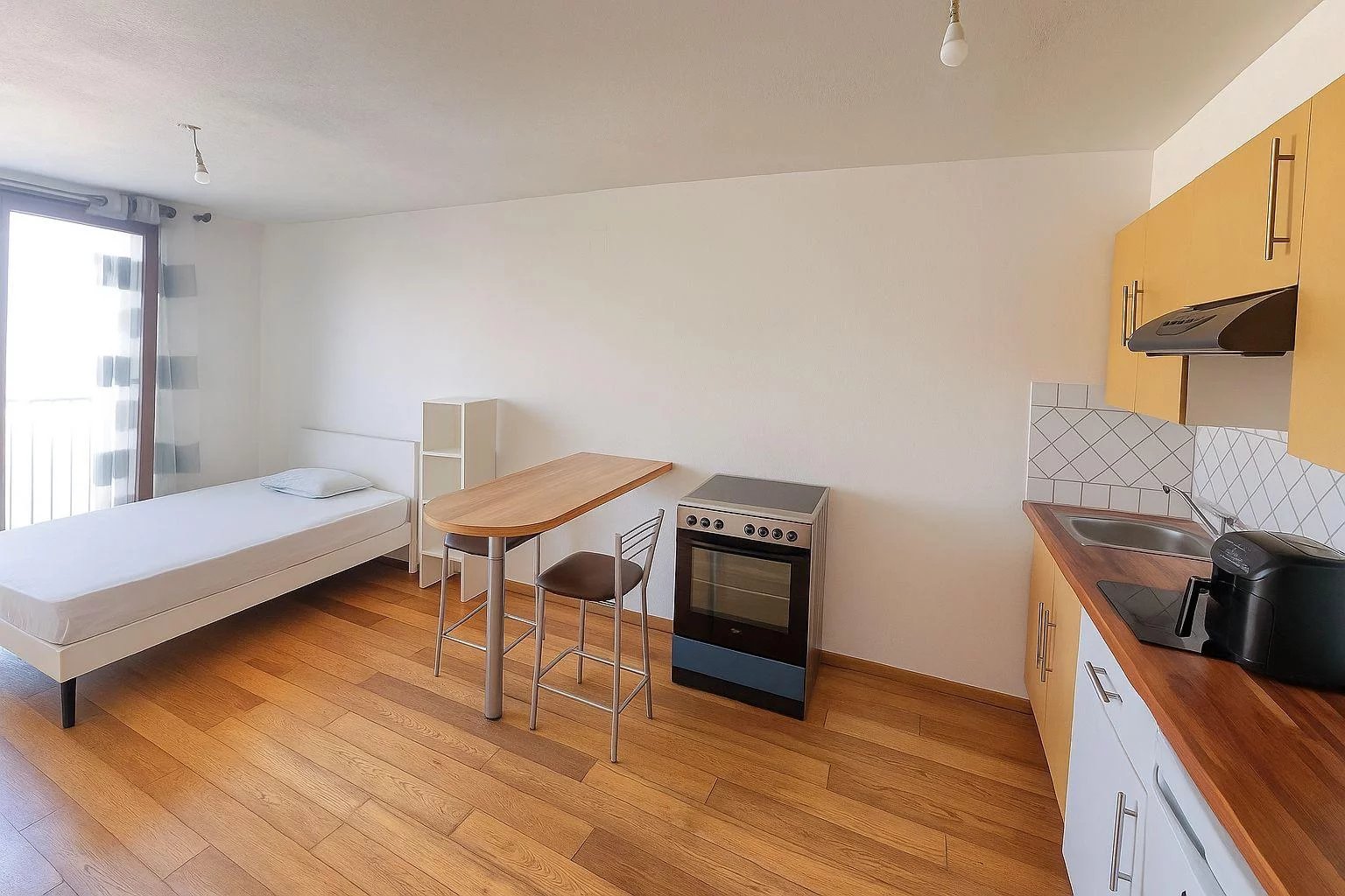 Studio de 30 m² avec balcon, lumineux et bien agencé, est situé dans un immeuble des années 60 au 2ème étage avec ascenseur. L’appartement se compose d’une pièce principale spacieuse, intégrant un coin nuit, une cuisine ouverte entièrement équipée (plaques de cuisson, hotte, four, réfrigérateur, rangements), ainsi qu’une salle d’eau moderne. Le logement dispose d’un beau parquet au sol, d’un mobilier fonctionnel, et d’une grande baie vitrée offrant une belle luminosité tout au long de la journée. LOCATAIRE EN PLACE depuis Décembre 2022 avec un loyer 541,65 € Hors Charges