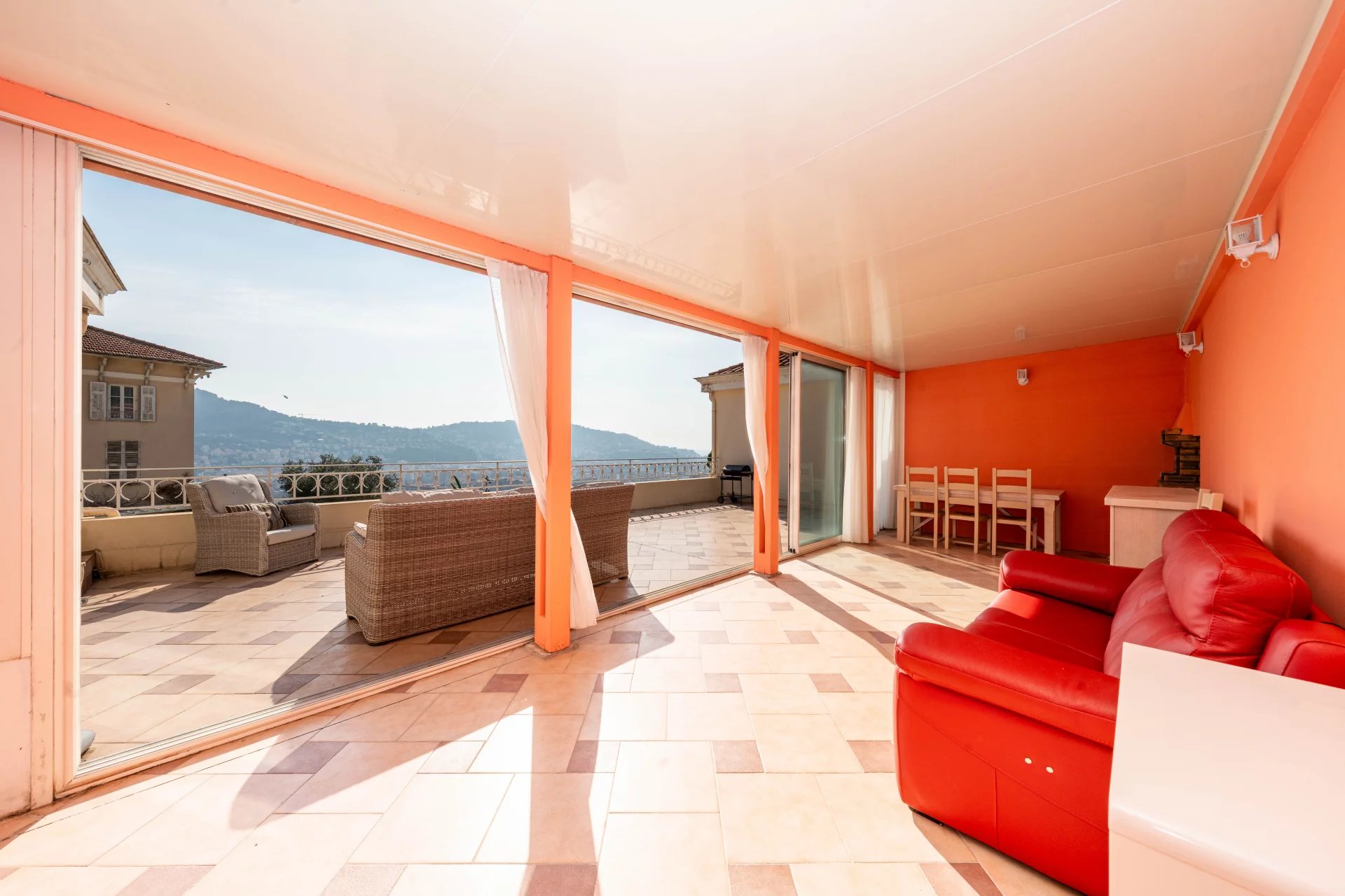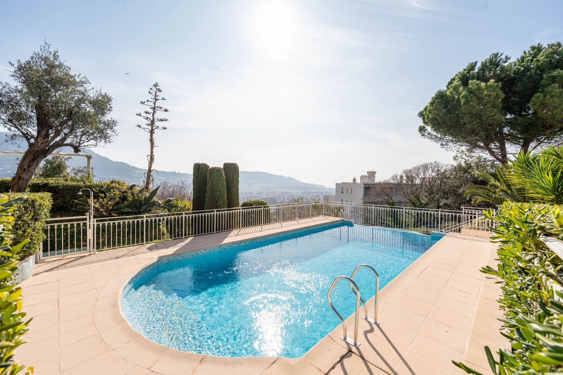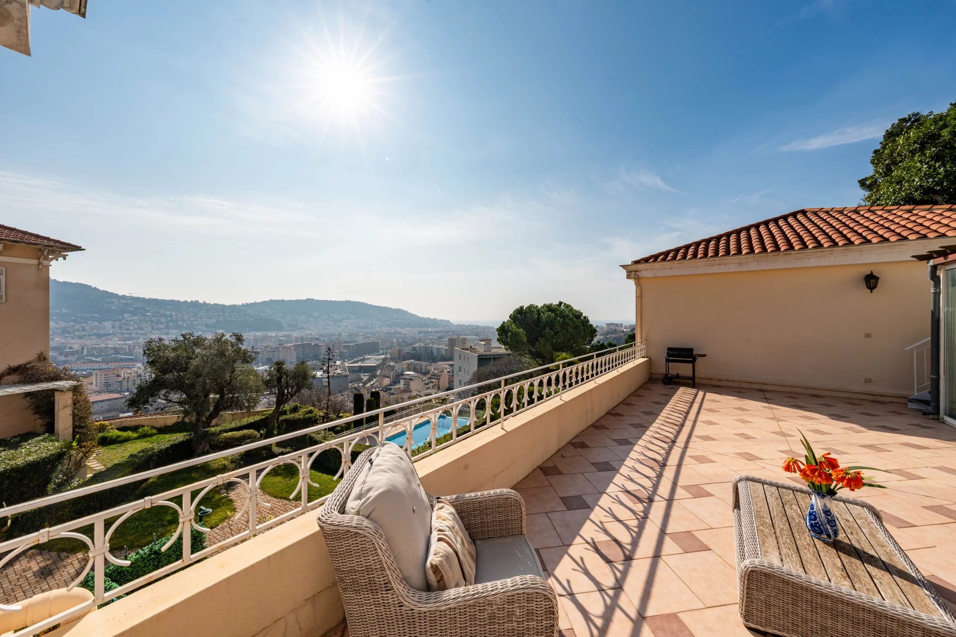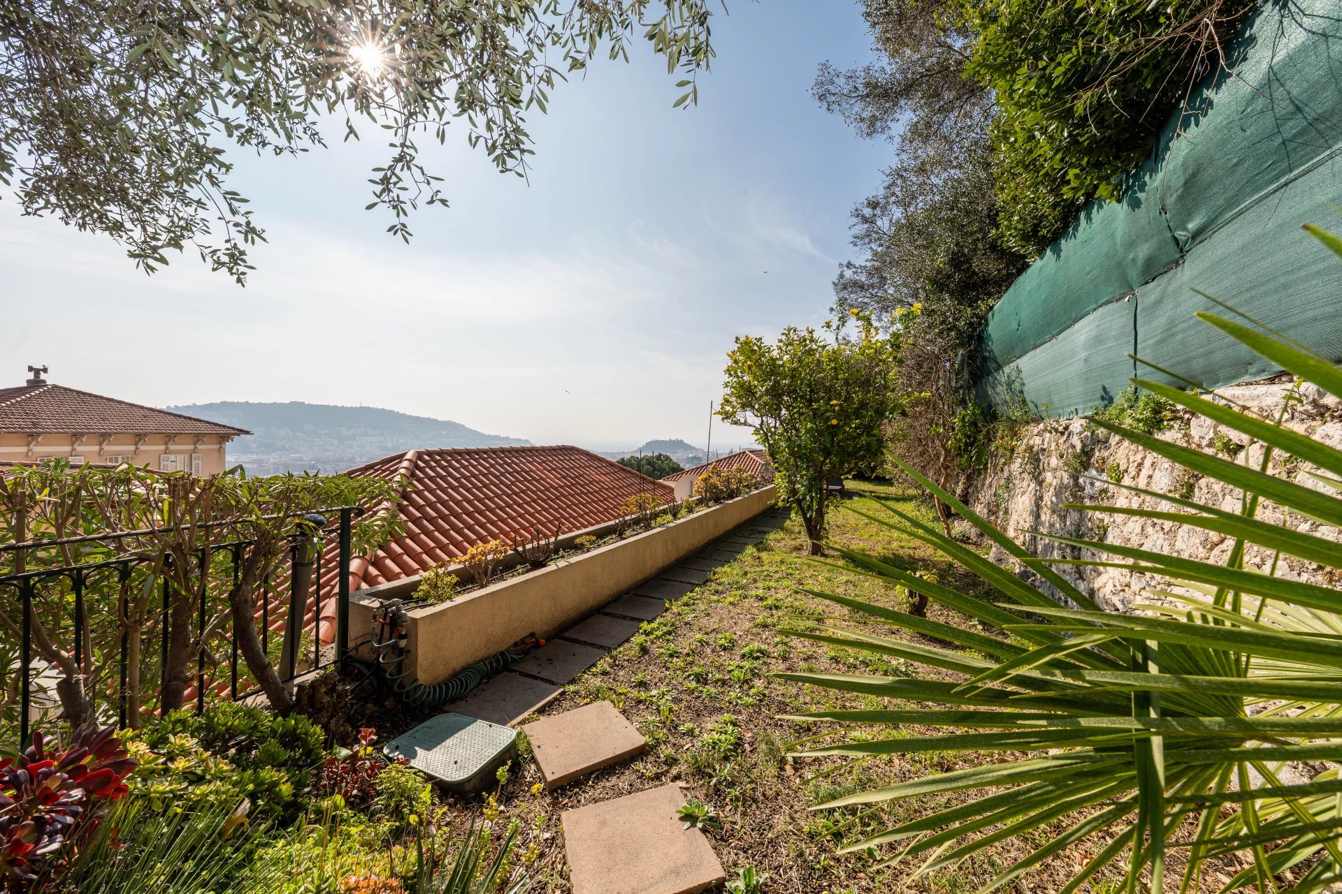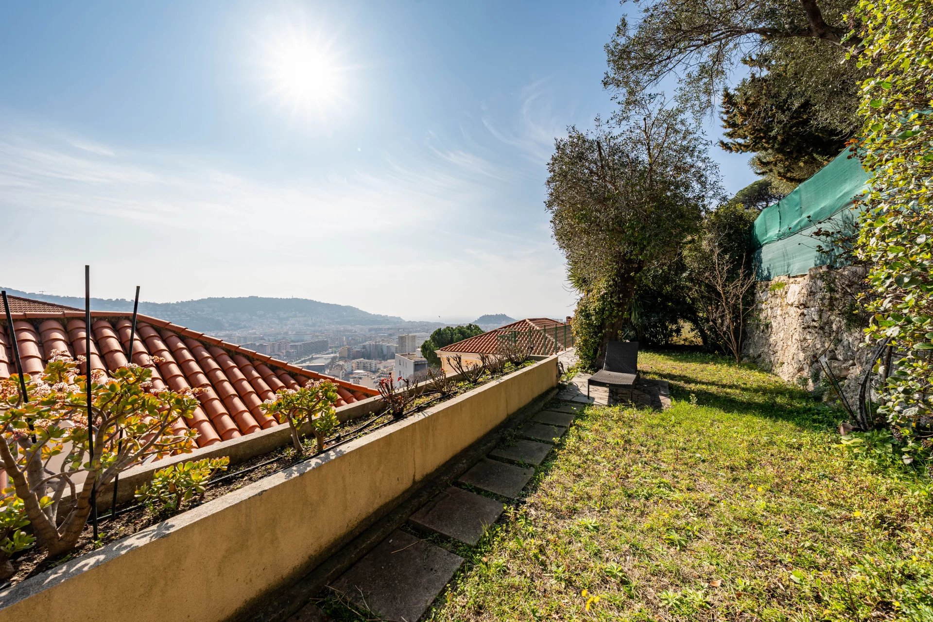 RARE! Appartement "Villa sur le toit" de 130 m2² avec un grand jardin de 180 m2 et ses arbres fruitiers, une terrasse de 46 m², une véranda de 29 m2, au dernier étage d'une belle résidence sécurisée de standing de 1994, parfaitement entretenue, avec piscine. Vue mer et colline du Château, exposition sud-est. Cet appartement se situe dans l'un des secteurs les plus résidentiels de Cimiez, tout proche des jardins du Monastère de Cimiez. Il se compose d’un grand hall d’entrée avec coin bureau, un séjour lumineux s’ouvrant sur une grande terrasse avec accès au jardin, une cuisine équipée donnant sur une véranda, deux chambres, dont une avec patio privatif et accès jardin, une troisième petite chambre/bureau, une mezzanine de 12 m2, une salle de bain, une salle de douche avec wc, un wc séparé, un dressing. Appartement en excellent état avec climatisation dans toutes les pièces, marbre et parquet au sol. L’appartement pourrait être vendu meublé. Vous apprécierez son environnement calme et verdoyant. Un grand garage fermé en sous-sol ainsi qu'une cave accompagnent ce bien. Charges annuelles: 7.200 euros (comprenant eau froide, chauffage, entretien espaces verts et piscine, ascenseur…) Nombre de lots: 114 Les informations sur les risques auxquels ce bien est exposé sont disponibles sur le site Géorisques.