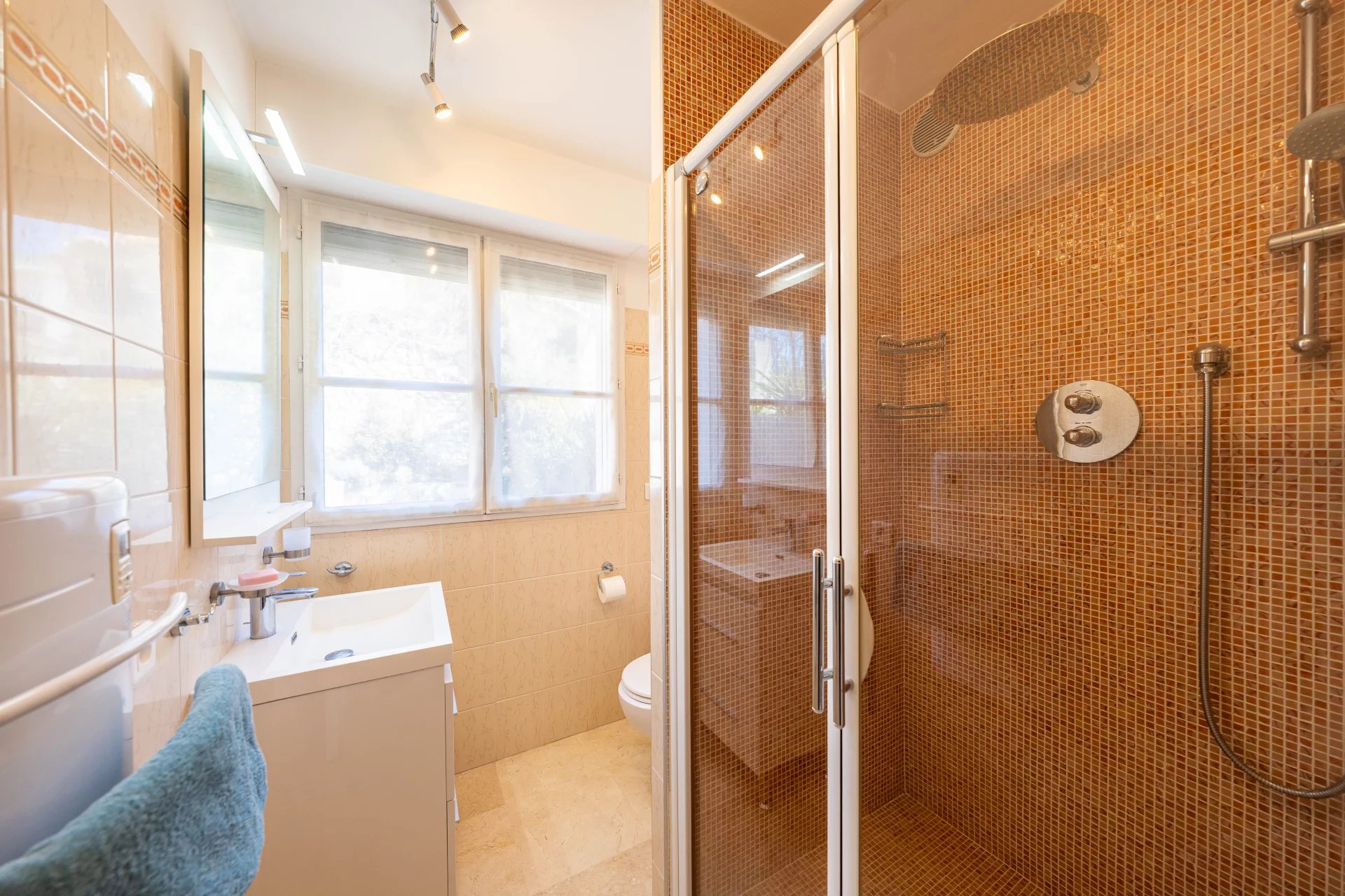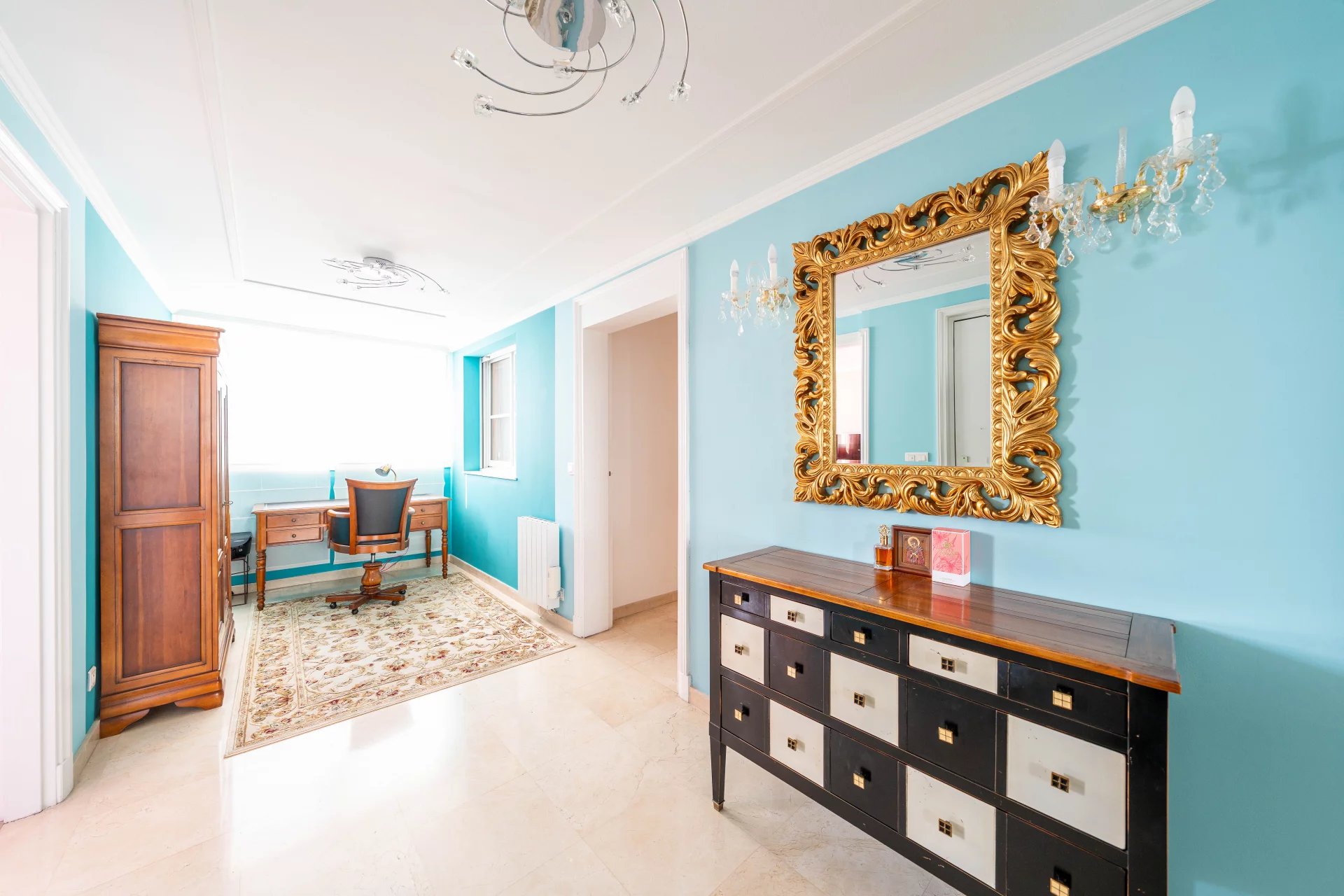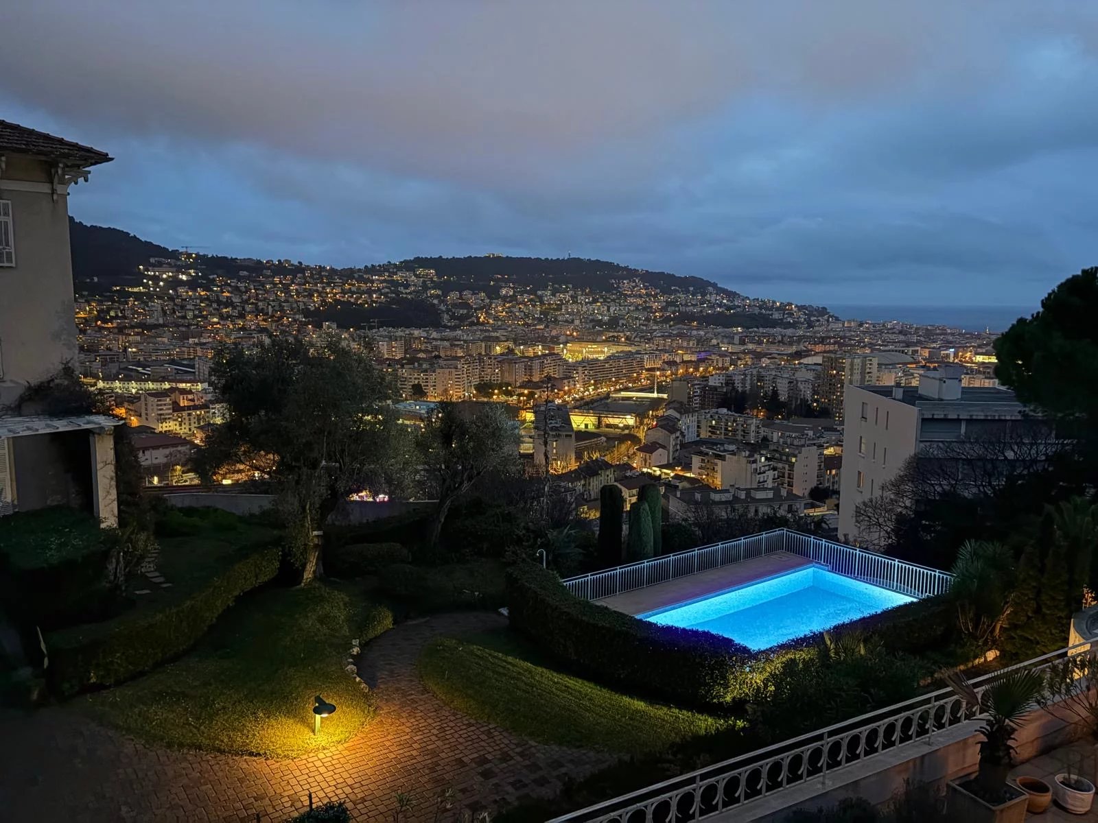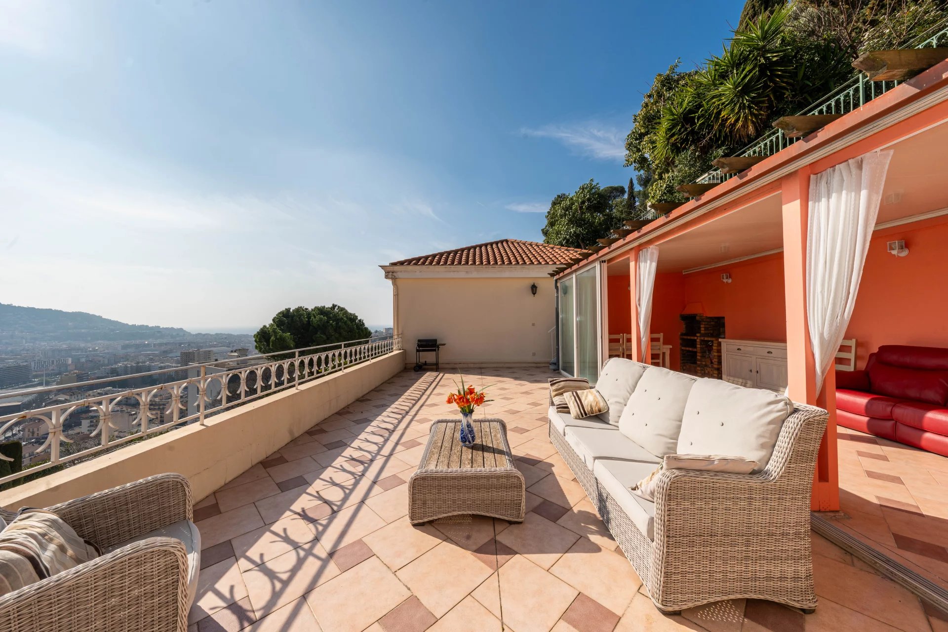 RARE! Appartement "Villa sur le toit" de 130 m2² avec un grand jardin de 180 m2 et ses arbres fruitiers, une terrasse de 46 m², une véranda de 29 m2, au dernier étage d'une belle résidence sécurisée de standing de 1994, parfaitement entretenue, avec piscine. Vue mer et colline du Château, exposition sud-est. Cet appartement se situe dans l'un des secteurs les plus résidentiels de Cimiez, tout proche des jardins du Monastère de Cimiez. Il se compose d’un grand hall d’entrée avec coin bureau, un séjour lumineux s’ouvrant sur une grande terrasse avec accès au jardin, une cuisine équipée donnant sur une véranda, deux chambres, dont une avec patio privatif et accès jardin, une troisième petite chambre/bureau, une mezzanine de 12 m2, une salle de bain, une salle de douche avec wc, un wc séparé, un dressing. Appartement en excellent état avec climatisation dans toutes les pièces, marbre et parquet au sol. L’appartement pourrait être vendu meublé. Vous apprécierez son environnement calme et verdoyant. Un grand garage fermé en sous-sol ainsi qu'une cave accompagnent ce bien. Charges annuelles: 7.200 euros (comprenant eau froide, chauffage, entretien espaces verts et piscine, ascenseur…) Nombre de lots: 114 Les informations sur les risques auxquels ce bien est exposé sont disponibles sur le site Géorisques.